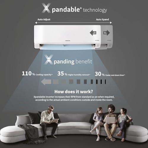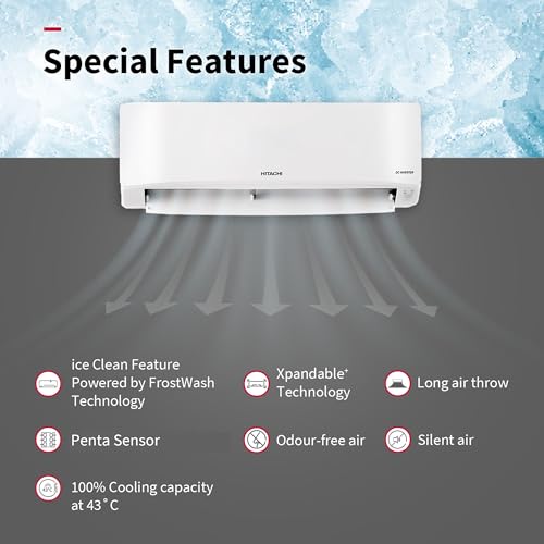 Hitachi 2 Ton Class 3 Star, 4-Way Swing, ice Clean, Xpandable+, Inverter Split AC (100% Copper, Dust Filter, 3400SXL RAS.G322PCBISS, White)
