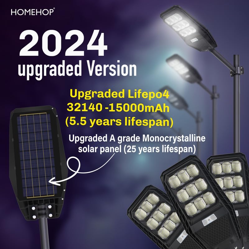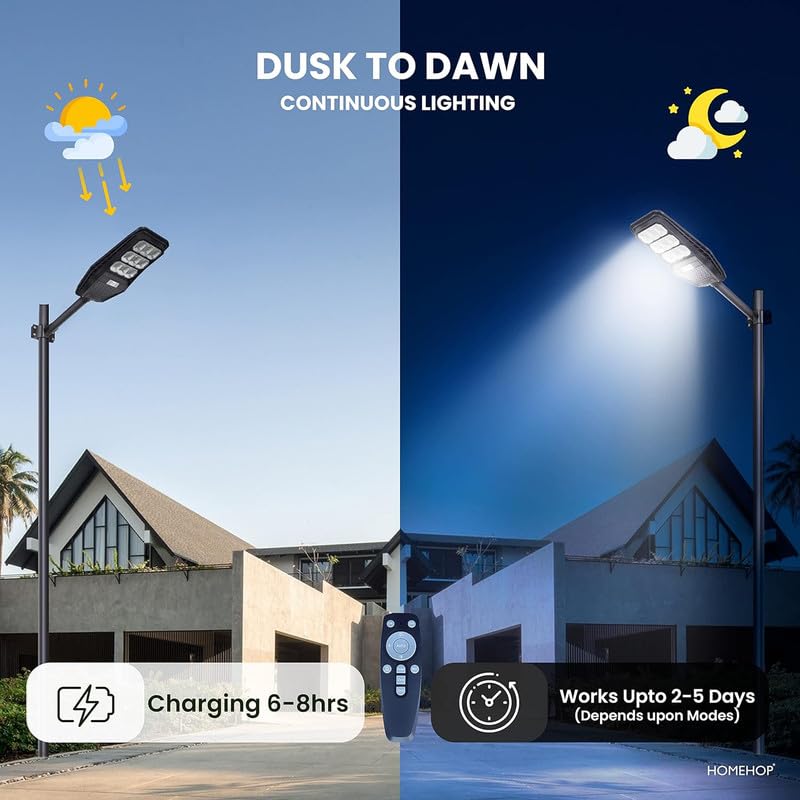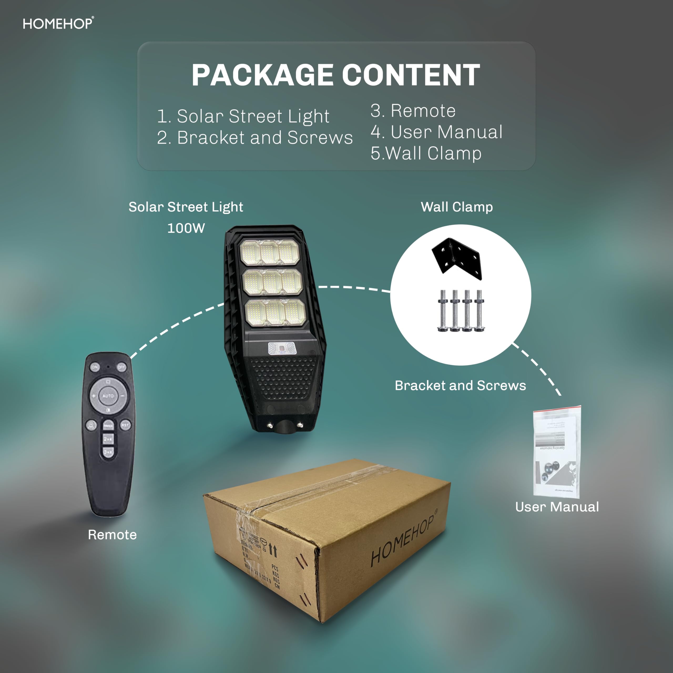 Homehop 100W Solar Street Light Outdoor with Motion Sensor, Security, Automatic,Wireless, Wall Lamp for Outdoor, Home & Garden with Remote Control (ABS, Cool White),