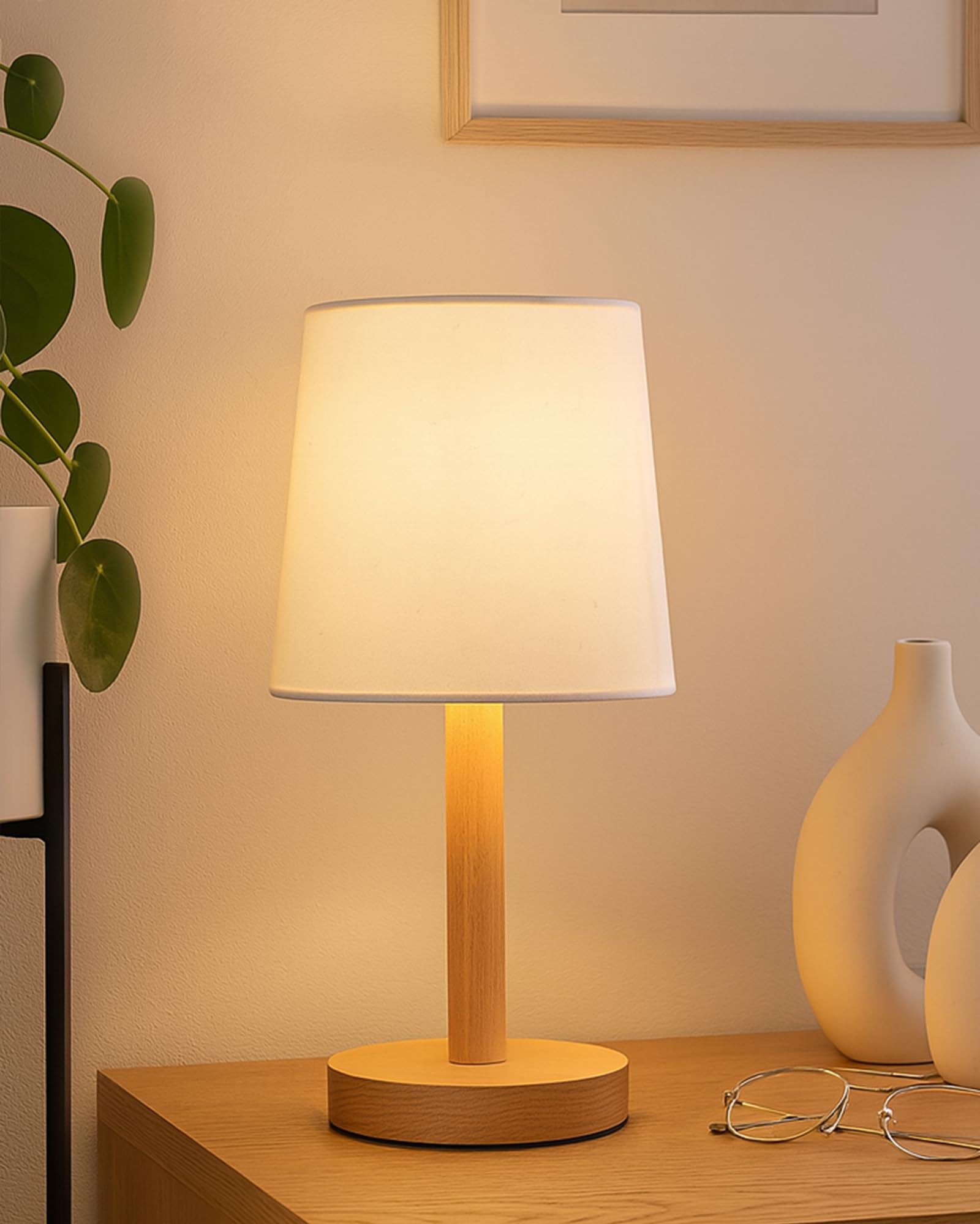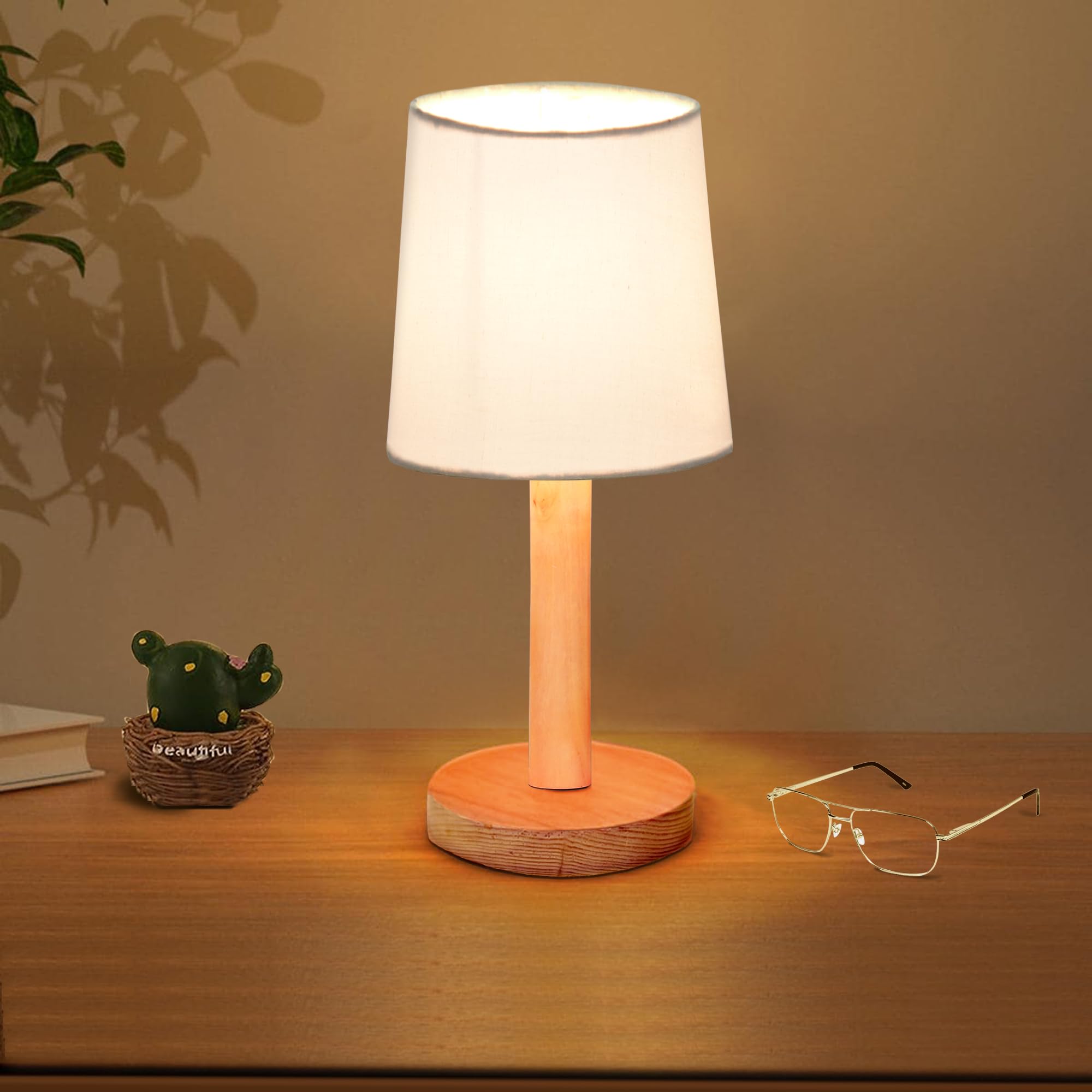 Homesake Pinewood Table Lamps for Nightstand, Fabric Linen Lampshade Desk Lamp, Morden Minimalist Bedside Lamps, Bedroom Nightstand Lamp Living Room, Kids Room Green (White, Incandescent)