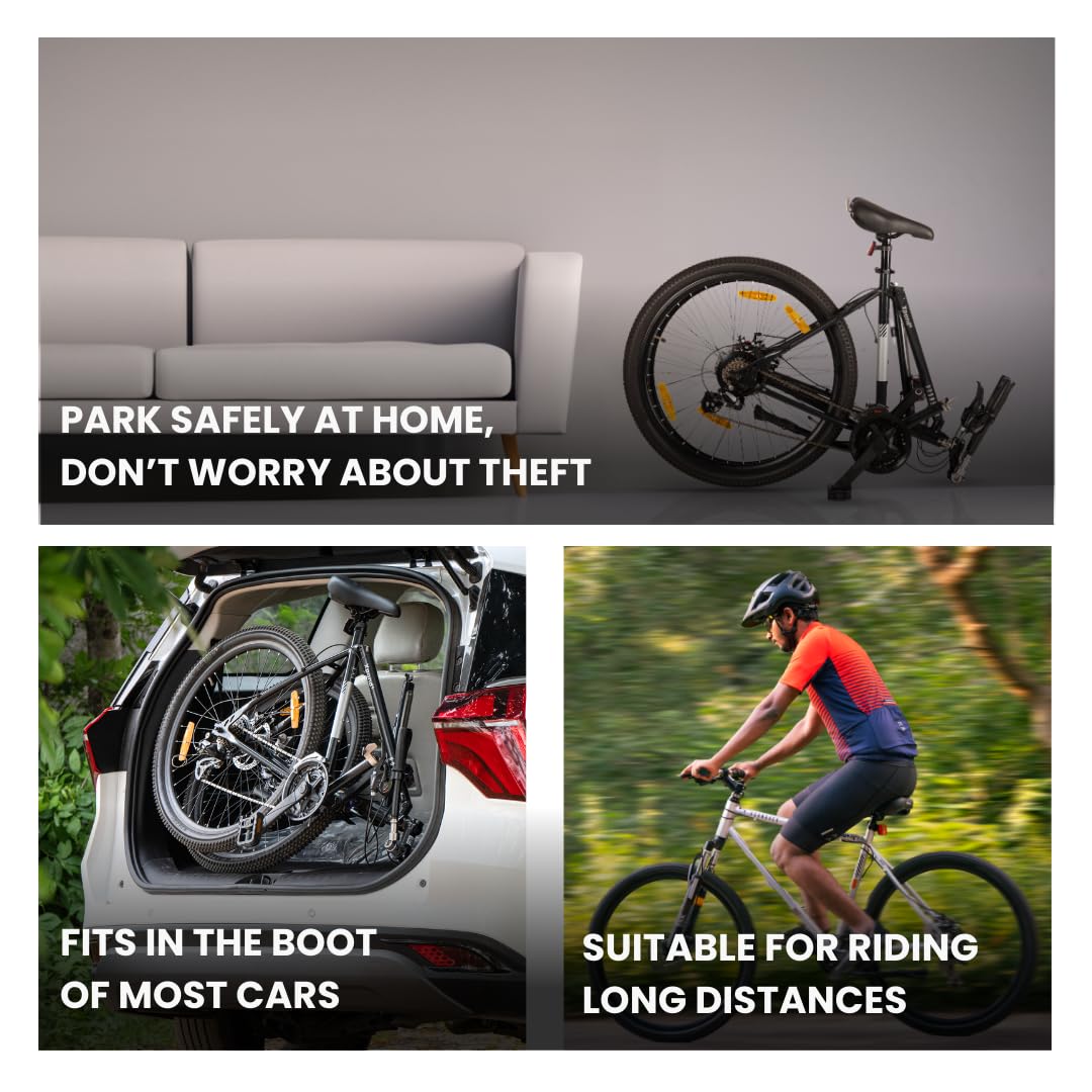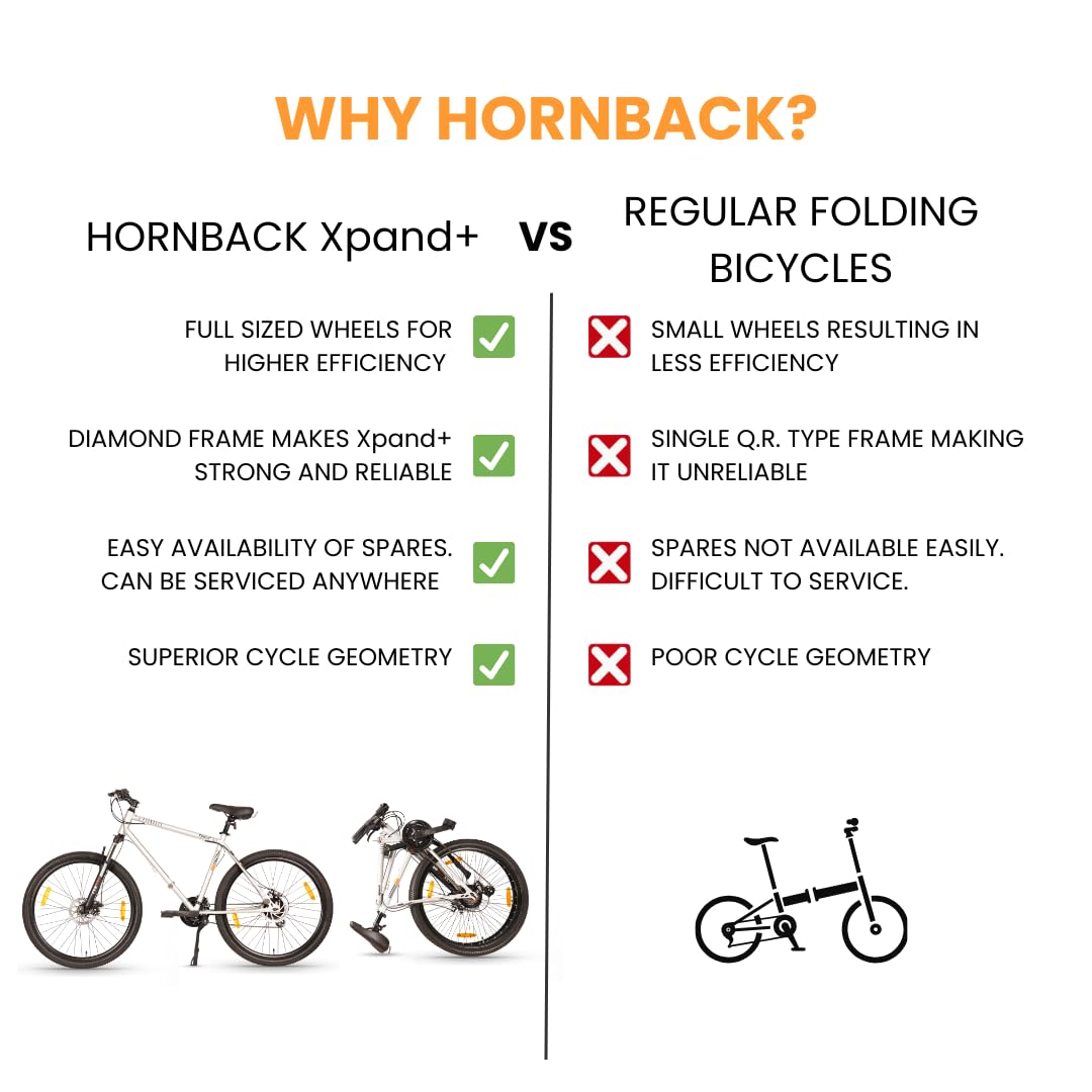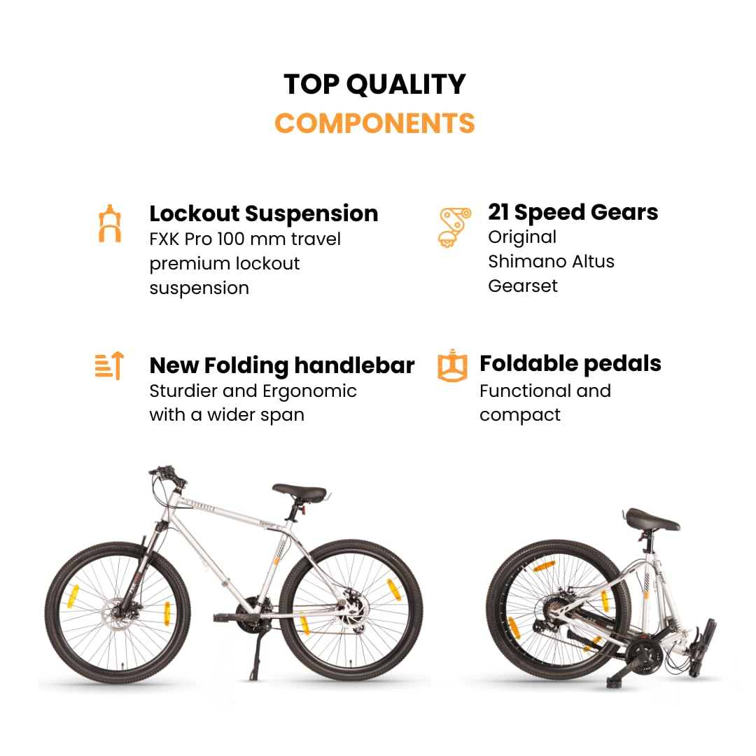 HORNBACK Xpand+ Foldable Mountain Cycle | 27.5 Inch | Shimano 21-Speed Gear Bicycle for Adults & Teens | FSK Pro Suspension 100mm | Fully Assembled | Ideal for Men & Women Age 13+ | Lightning Sliver