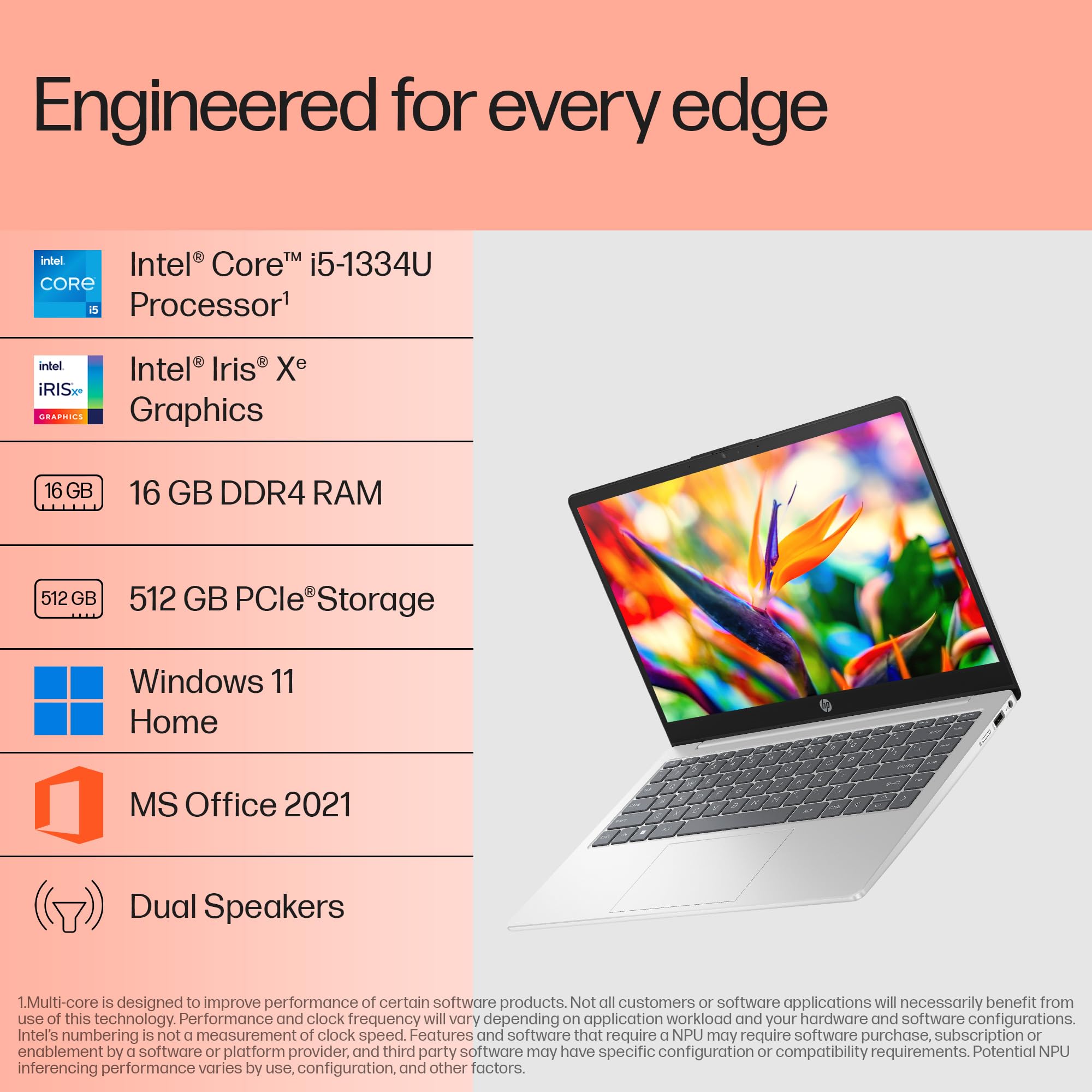 HP 14, 13th Gen Intel Core i5-1334U Laptop (16GB DDR4,512GB SSD) Anti-Glare, Micro-Edge, 14/35.6cm, FHD, Win11, M365 Basic(1yr),Office Home24, Silver,1.4kg, FHD Camera w/Privacy Shutter,ep0340TU