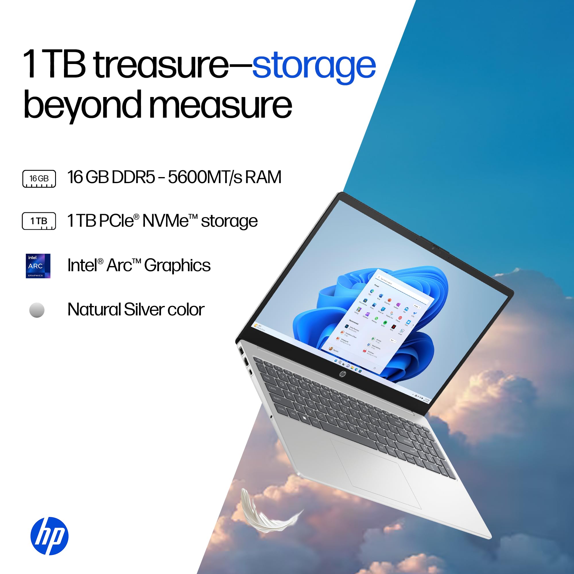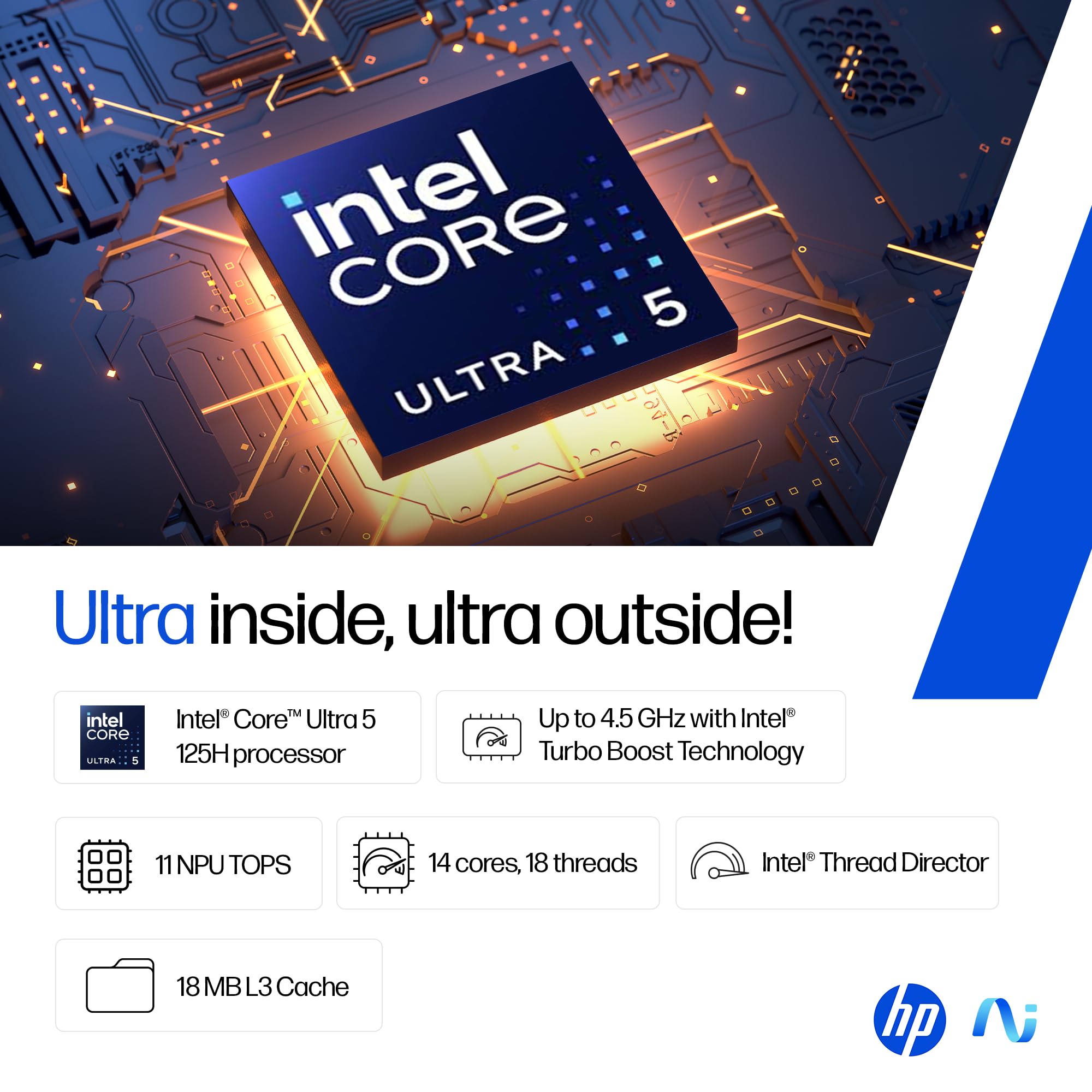 HP Ultra 5 125H AI Powered Laptop With 16GB DDR5 1TB SSD FHD IPS 15.6in Windows 11 M365 Basic Intel Arc Graphics Silver