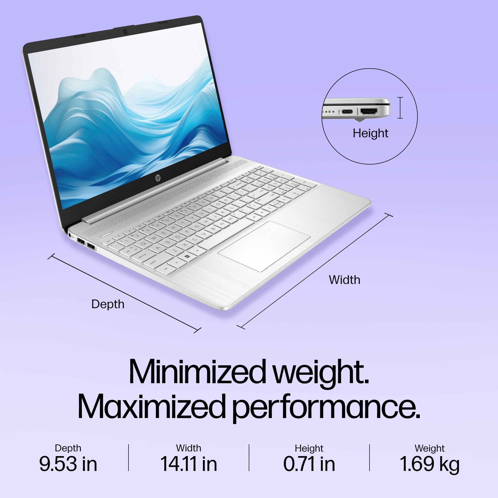 HP 15s,12th Gen Intel Core i3-1215U, 8GB DDR4, 256GB SSD, Anti-Glare, Micro-Edge, 15.6-inch(39.6cm) FHD Laptop, Intel UHD Graphics, Full-Size KB (Win 11, Office 21, Silver, 1.69kg) fy5010tu