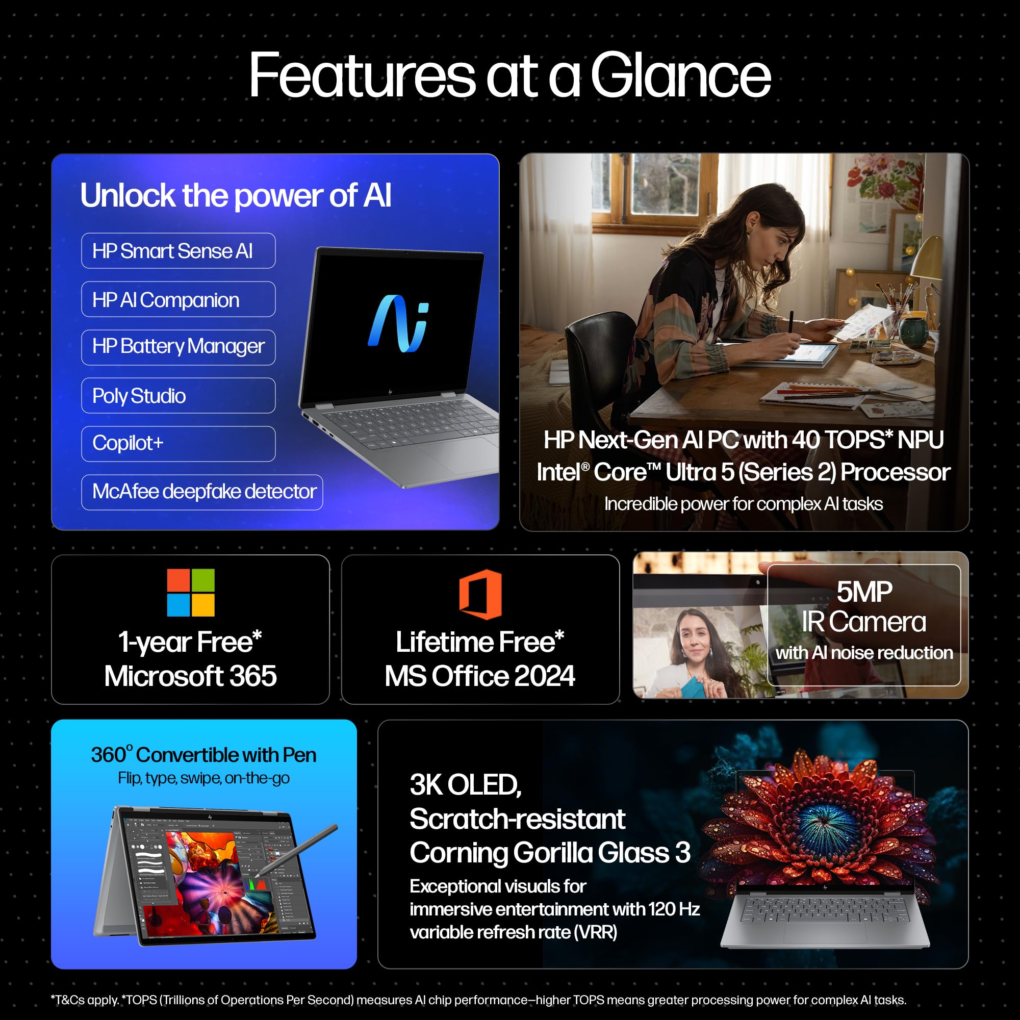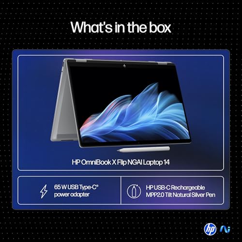 HP OmniBook X Flip OLED (Previously Envy), Intel Core Ultra 5 226V, 40 Tops, (16GB LPDDR5X, 512GB SSD) 3K, 14''/35.6cm, Touch, Win11, Office24, Silver,1.38kg, fm0058TU, 5MP Camera, Next Gen AI Laptop