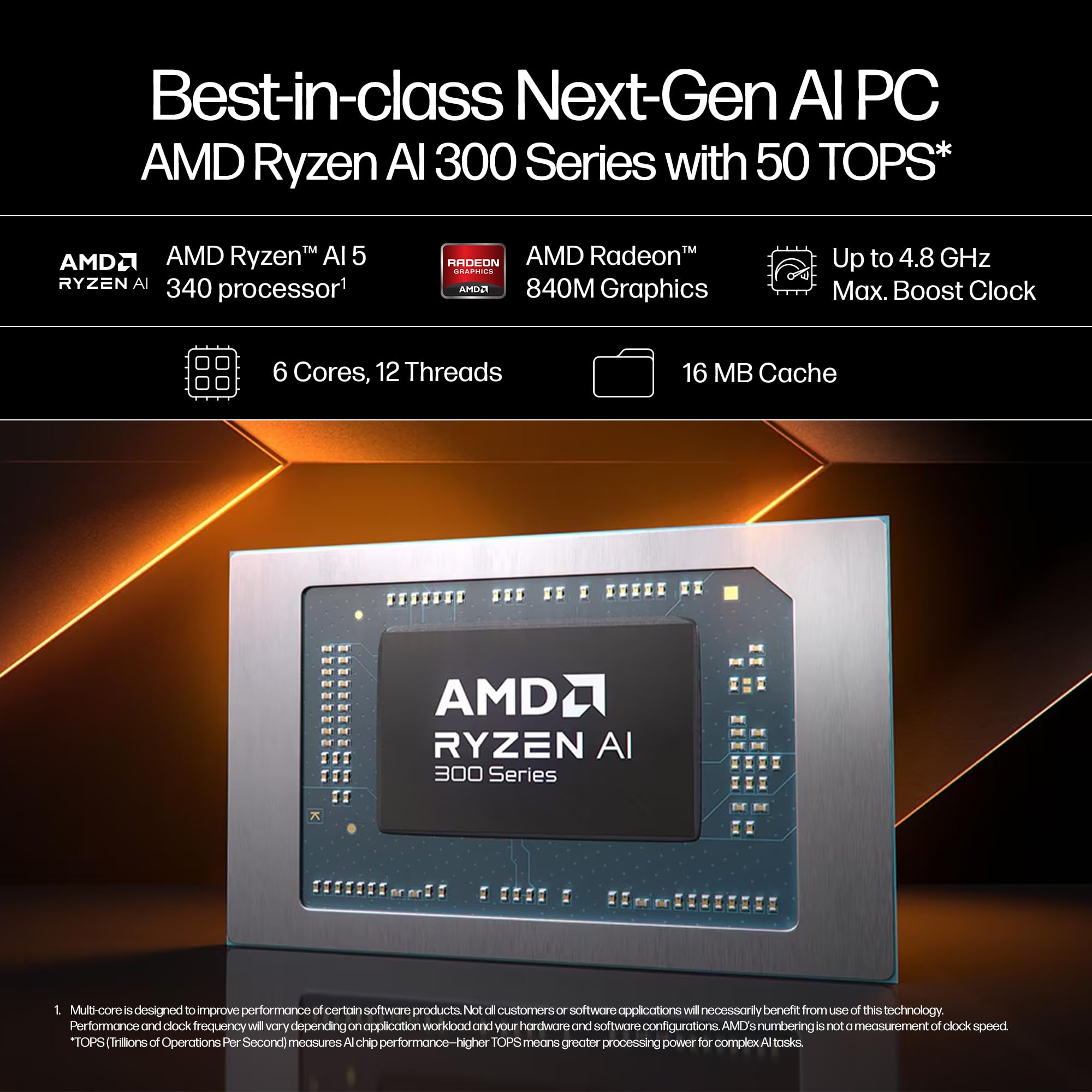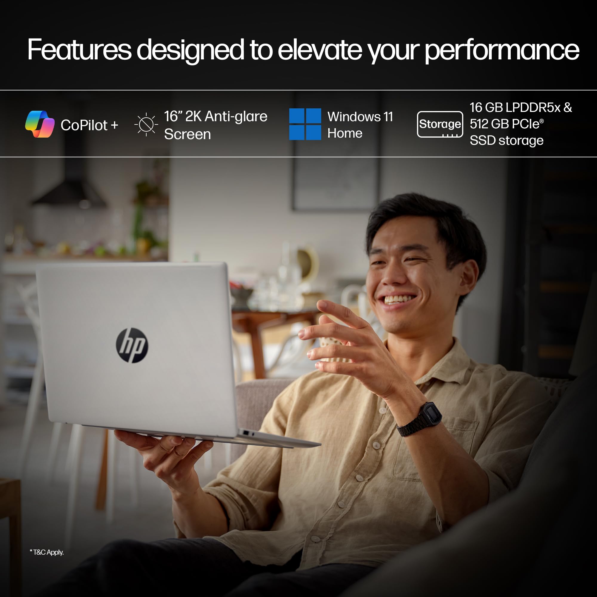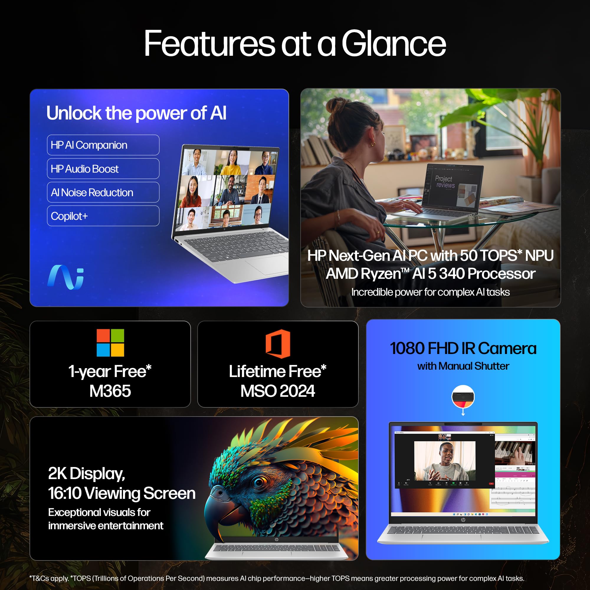 HP Smartchoice OmniBook 5 (Previously Pavilion) 50 Tops, AMD Ryzen AI 5 340 (16GB LPDDR5X, 512GB SSD) WUXGA 2K, 16''/40.6cm, Win11, Office24, Silver, 1.79kg, ag1037au, Next Gen AI Copilot+ Laptop