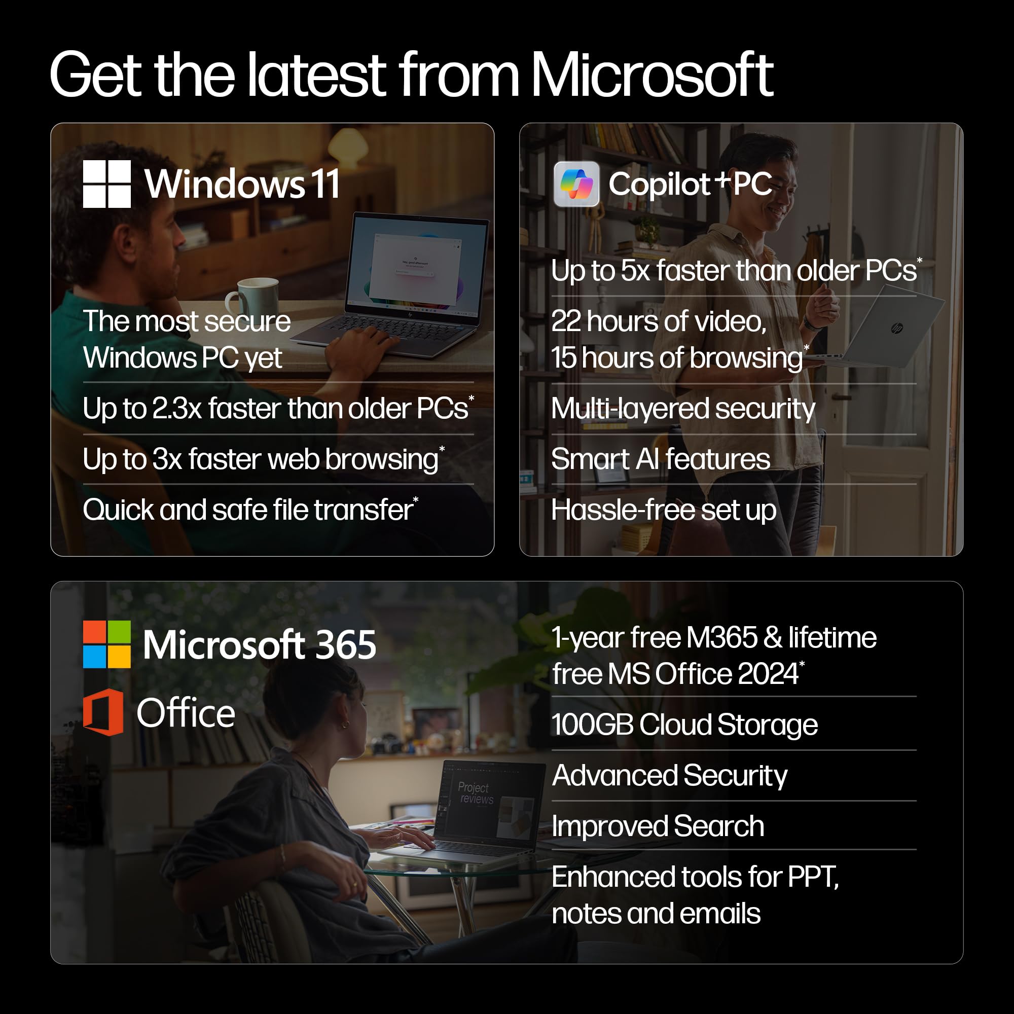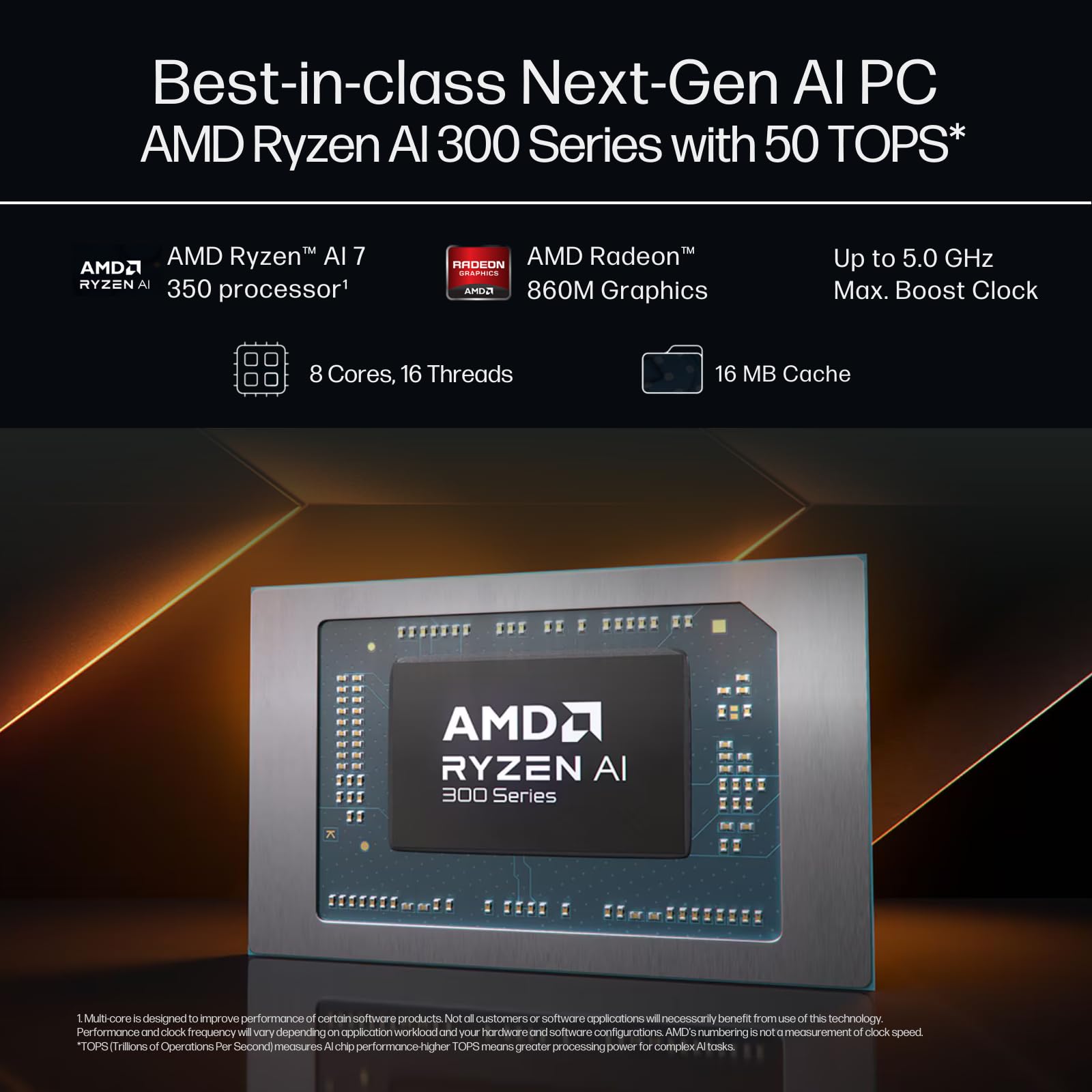 HP Smartchoice OmniBook 5 (Previously Pavilion) 50 TOPS, AMD Ryzen AI 7 350 (16GB LPDDR5X, 512GB SSD) WUXGA 2K, Touch, 16''/40.6cm, Win11,Office24, Silver, 1.8kg, ag1048au, Next-Gen AI Copilot+ Laptop