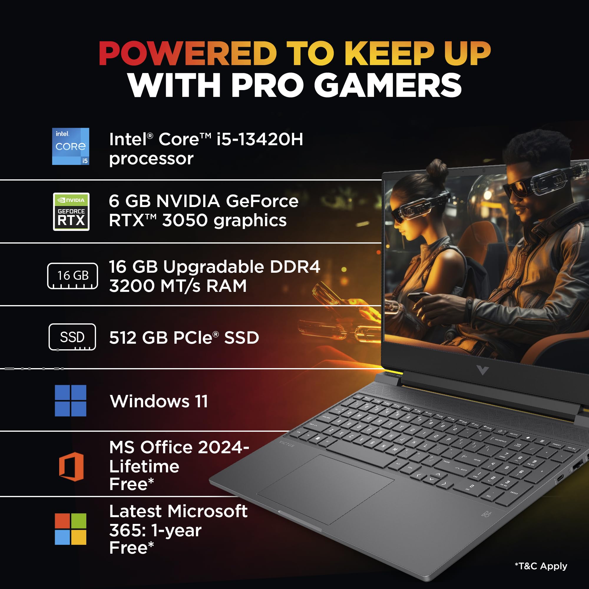 HP Victus, 13th Gen Intel Core i5-13420H, 6GB RTX 3050, 16GB DDR4(Upgradeable) 512GB SSD, FHD, 144Hz, 300 nits, IPS, 15.6''/39.6cm, Win11, M365* Office24, Mica Silver, 2.3kg, fa2700TX, Gaming Laptop