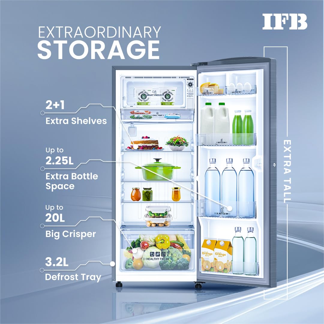 IFB 197L 5 Star Direct Cool Single Door Refrigerator (2024 Model, IFBDC-2235DBSE, Brush Grey, Advanced Inverter Compressor, Extraordinary Storage with Humidity Controller)