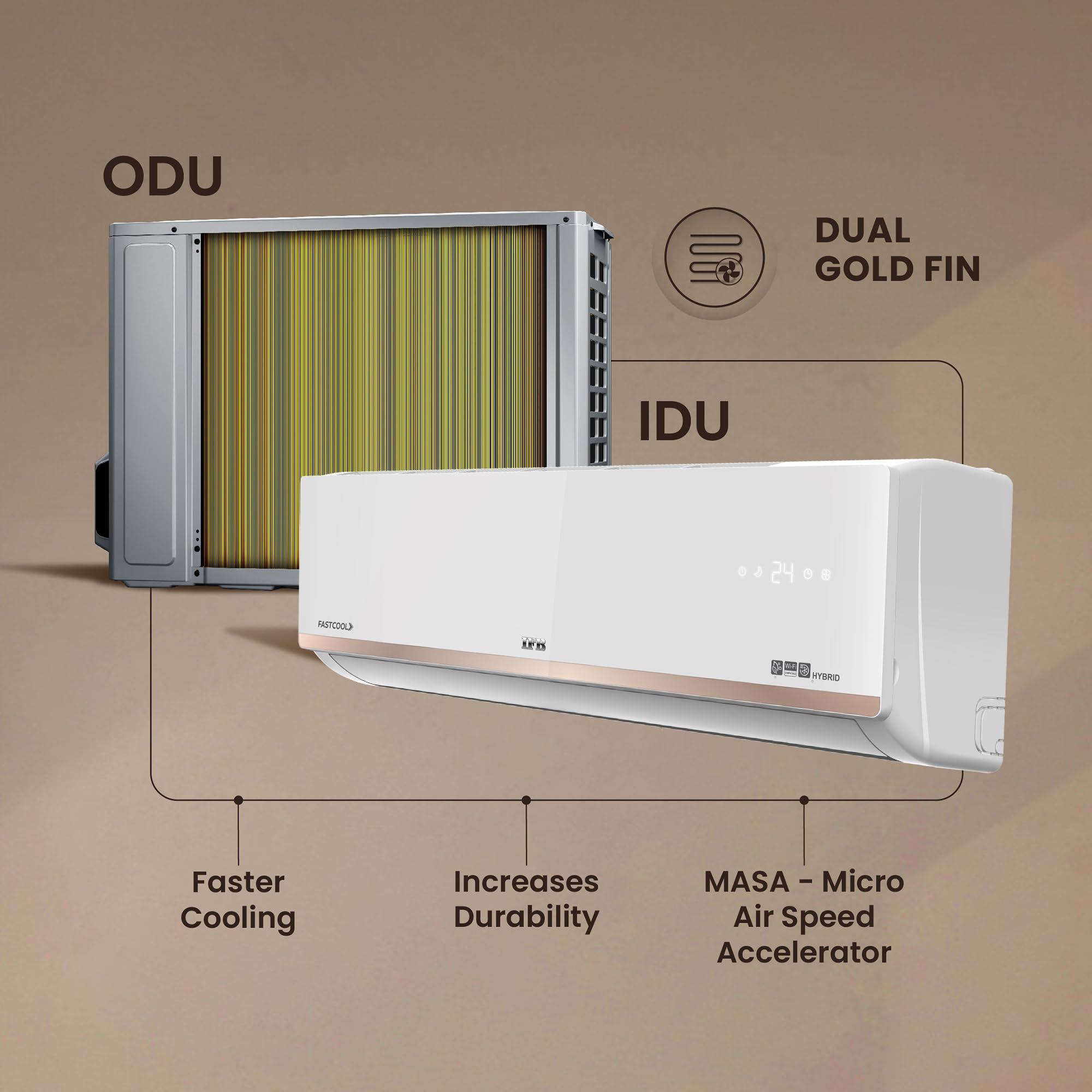 Brand: IFBColor: Ivory WhiteFeatures: IFB Premium Split AC with Hybrid Cooling Technology: Achieves faster cooling by 30% in 4-way airflow... Read more