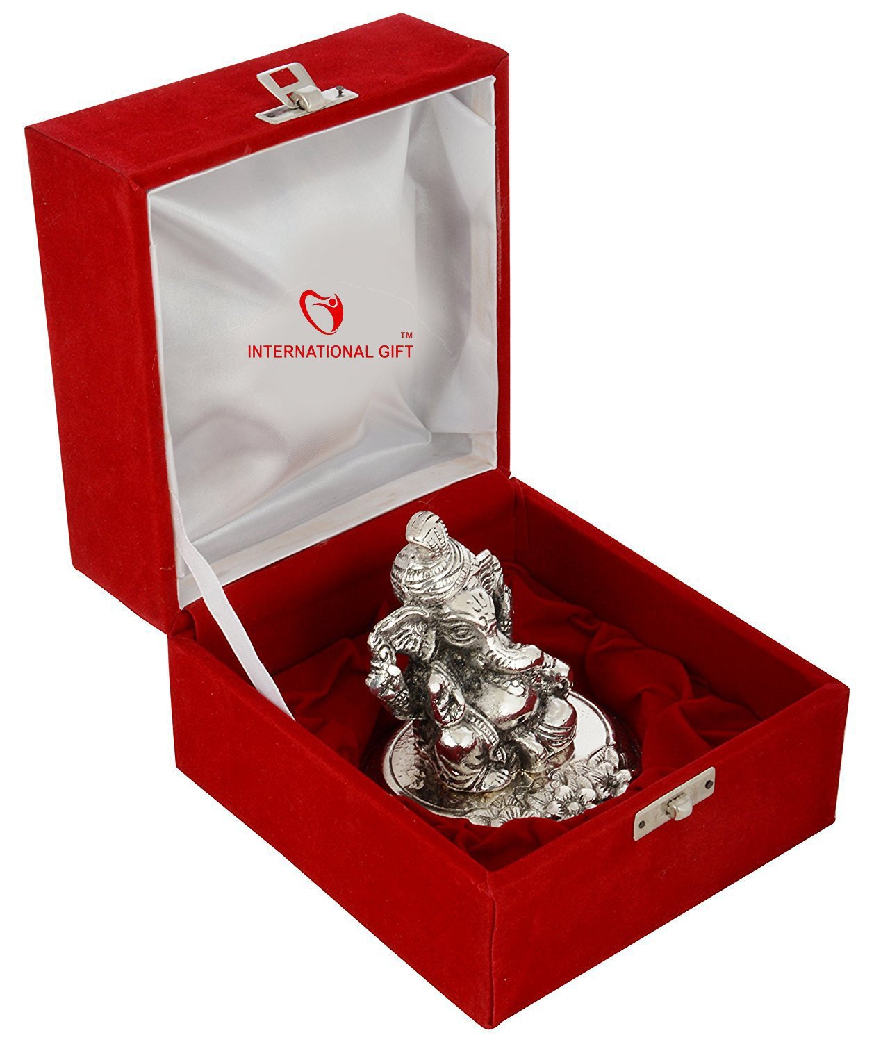 INTERNATIONAL GIFT® Silver Plated Pagdi Ganesh God Idol Statue Oxidized Finish with Beautiful Velvet Box Packing and with Carry Bag (10H x 8W x 8L Centimeters)