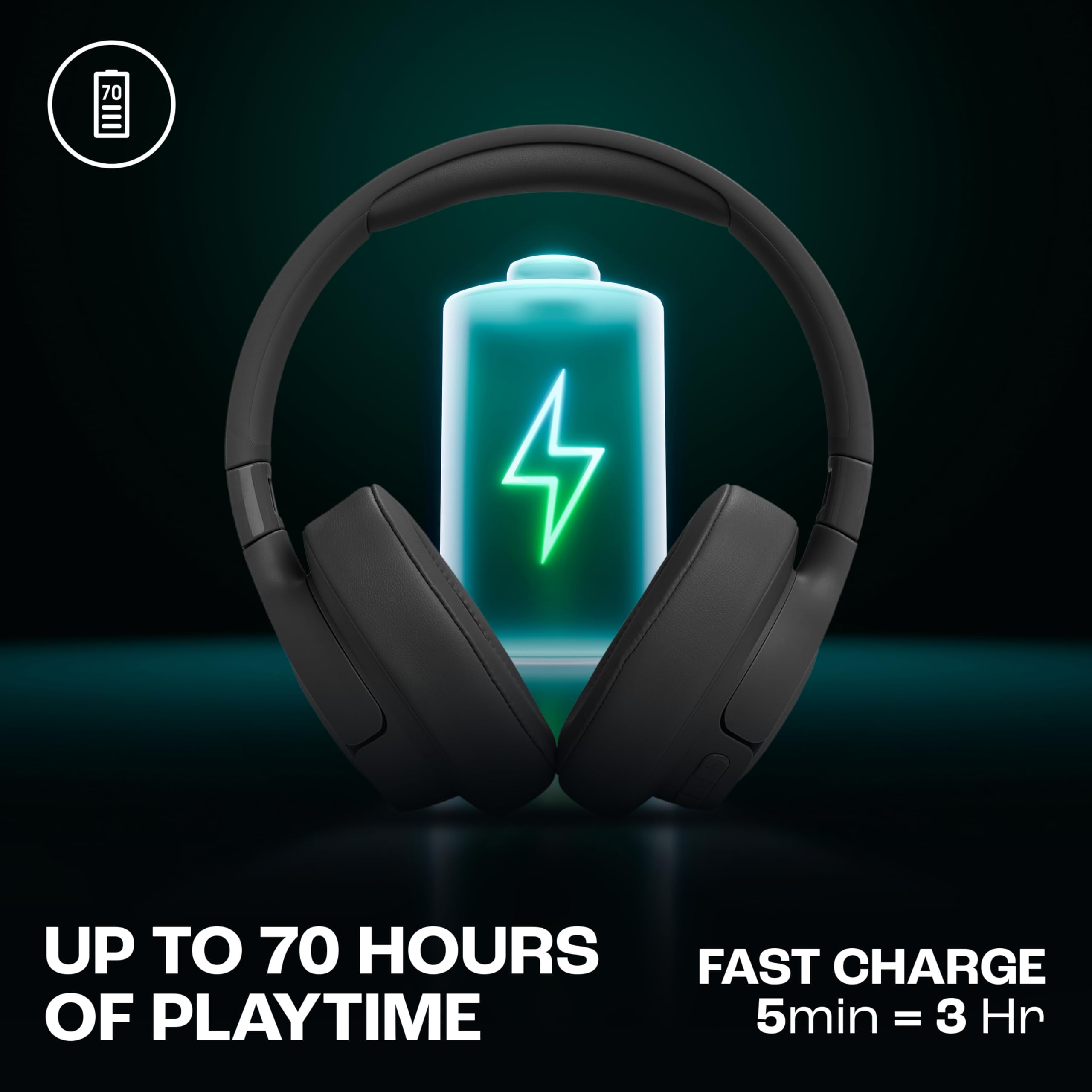JBL Tune 770NC Wireless Over Ear ANC Headphones with Mic, Upto 70 Hrs Battery, Speed Charge : 5 min Charge Gives up to 3H of Playback, Google Fast Pair, Dual Pairing, BT 5.3 (Black)