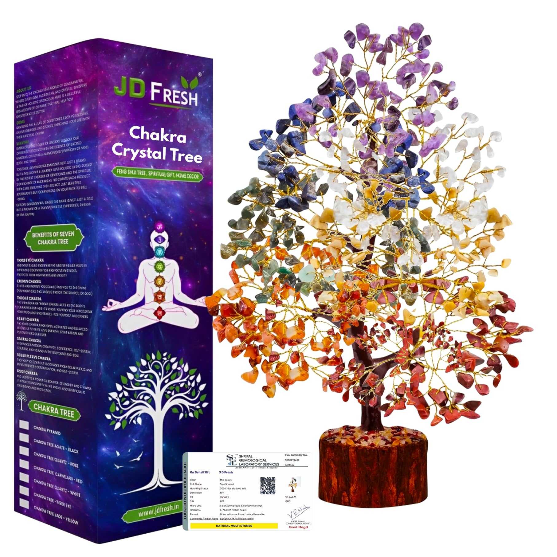 JD FRESH 300 Beads Crystal Tree/7 Chakra Crystal Tree/Showpiece Good Luck and Positive Energy/Showpiece for Living Room/Natural Healing Gemstones Money Tree/Lucky Tree for Good Luck (Multicolor)