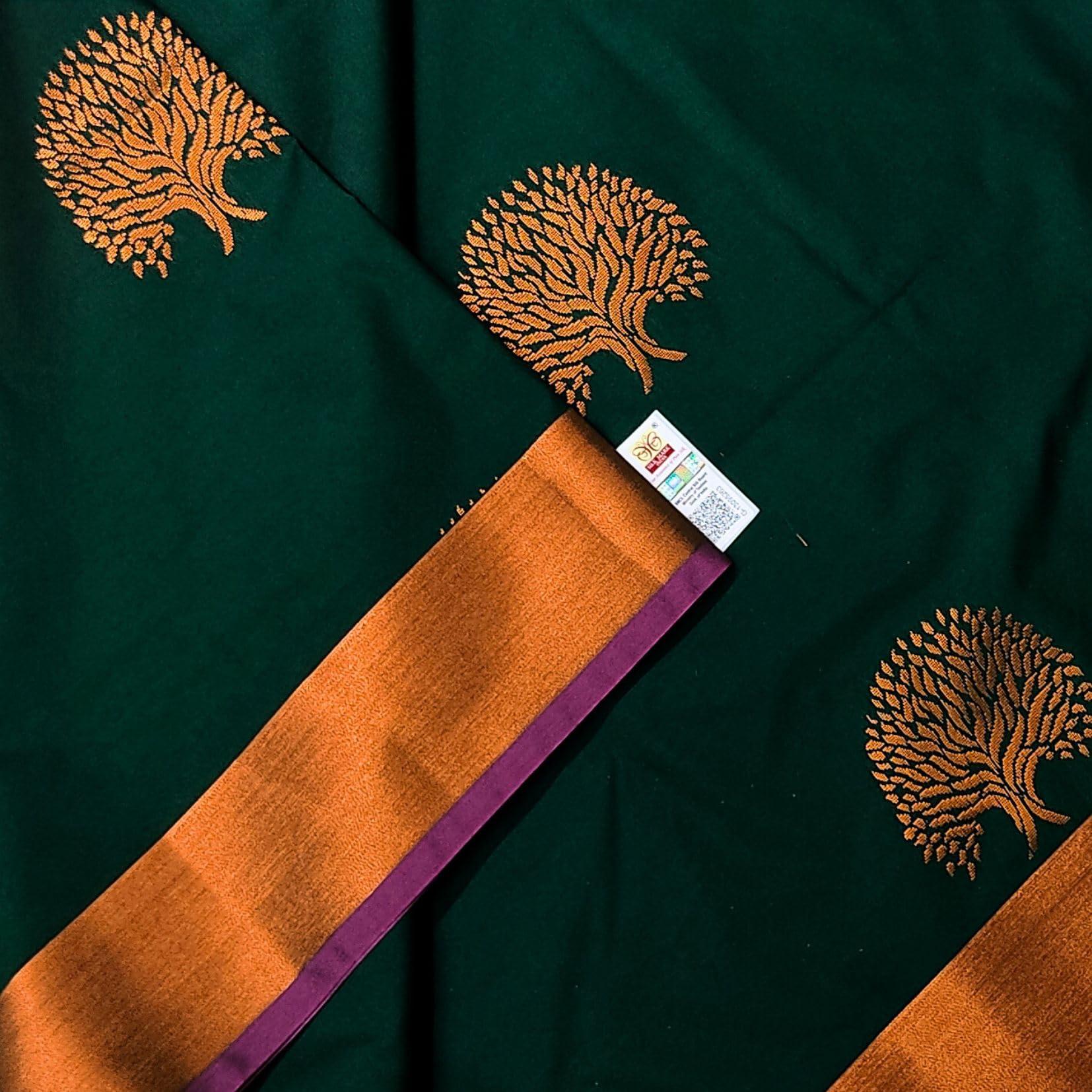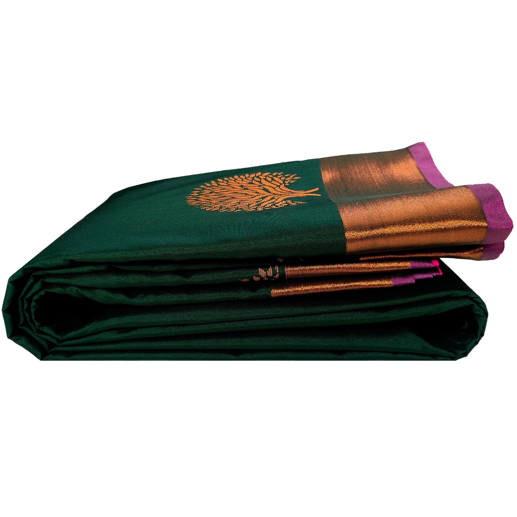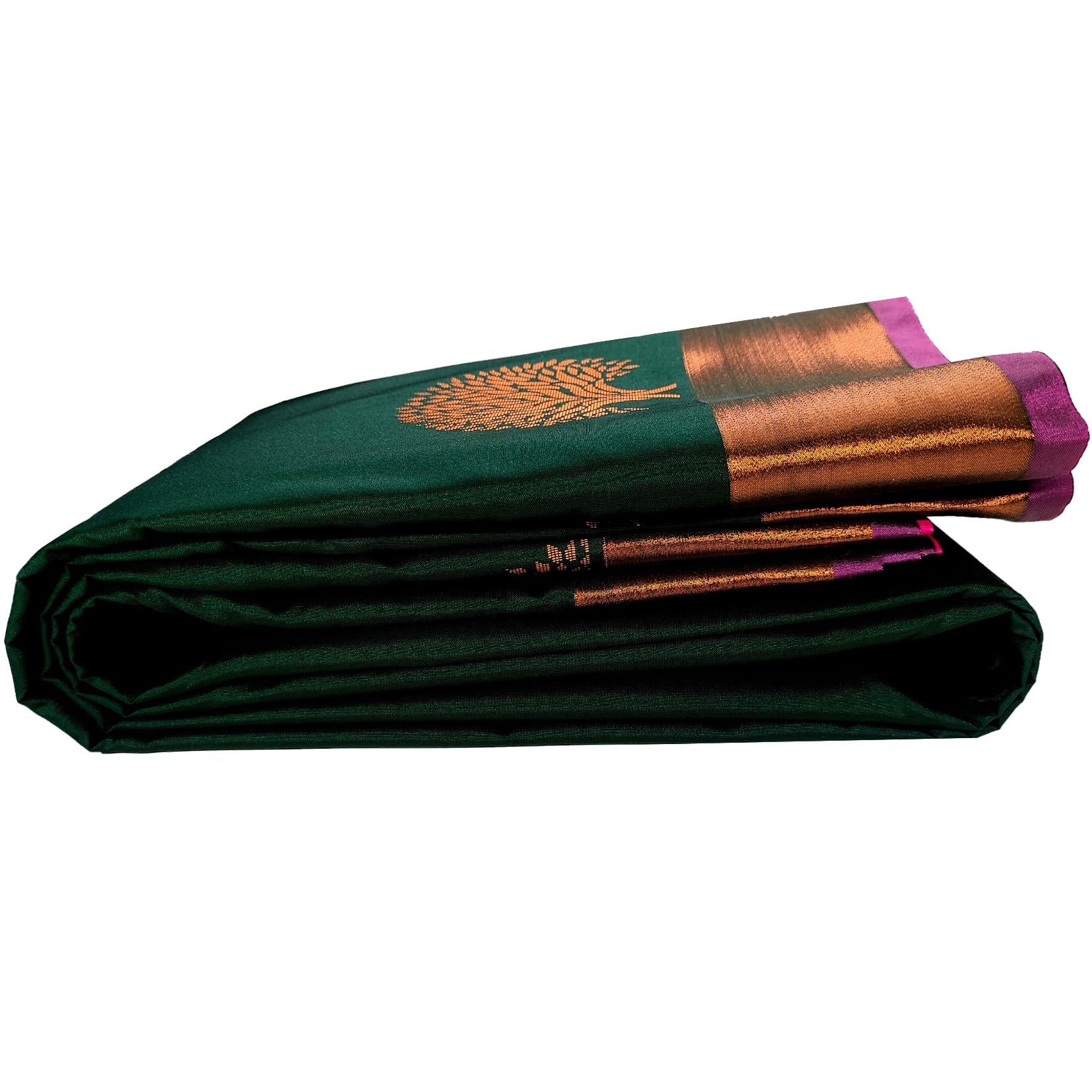 Kanchipuram Pure Silk Saree Original Golden Zari Intricate Jacquard Weaves Traditional Rich Border & Contrast Zari Rich Pallu(Green)-Silk Mark