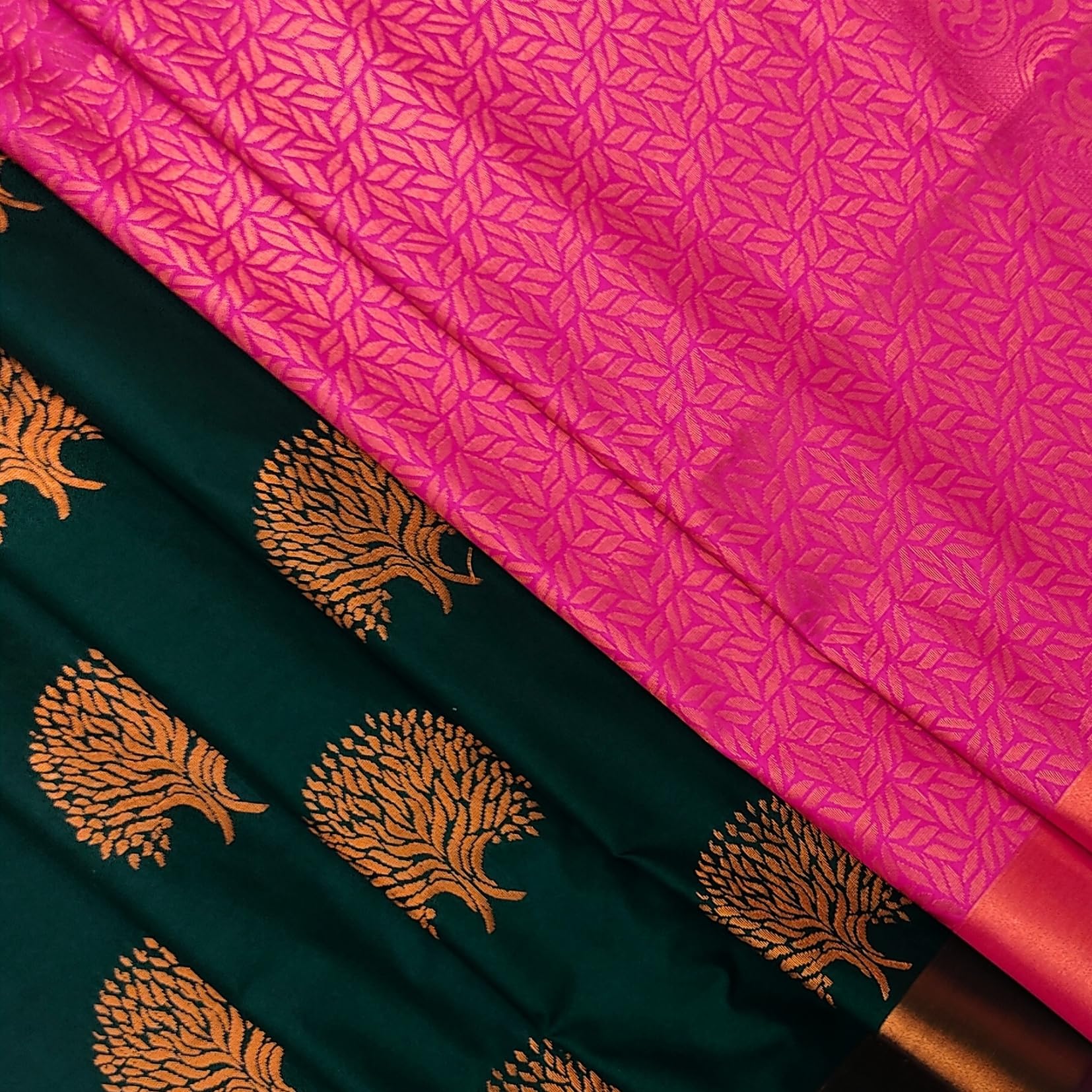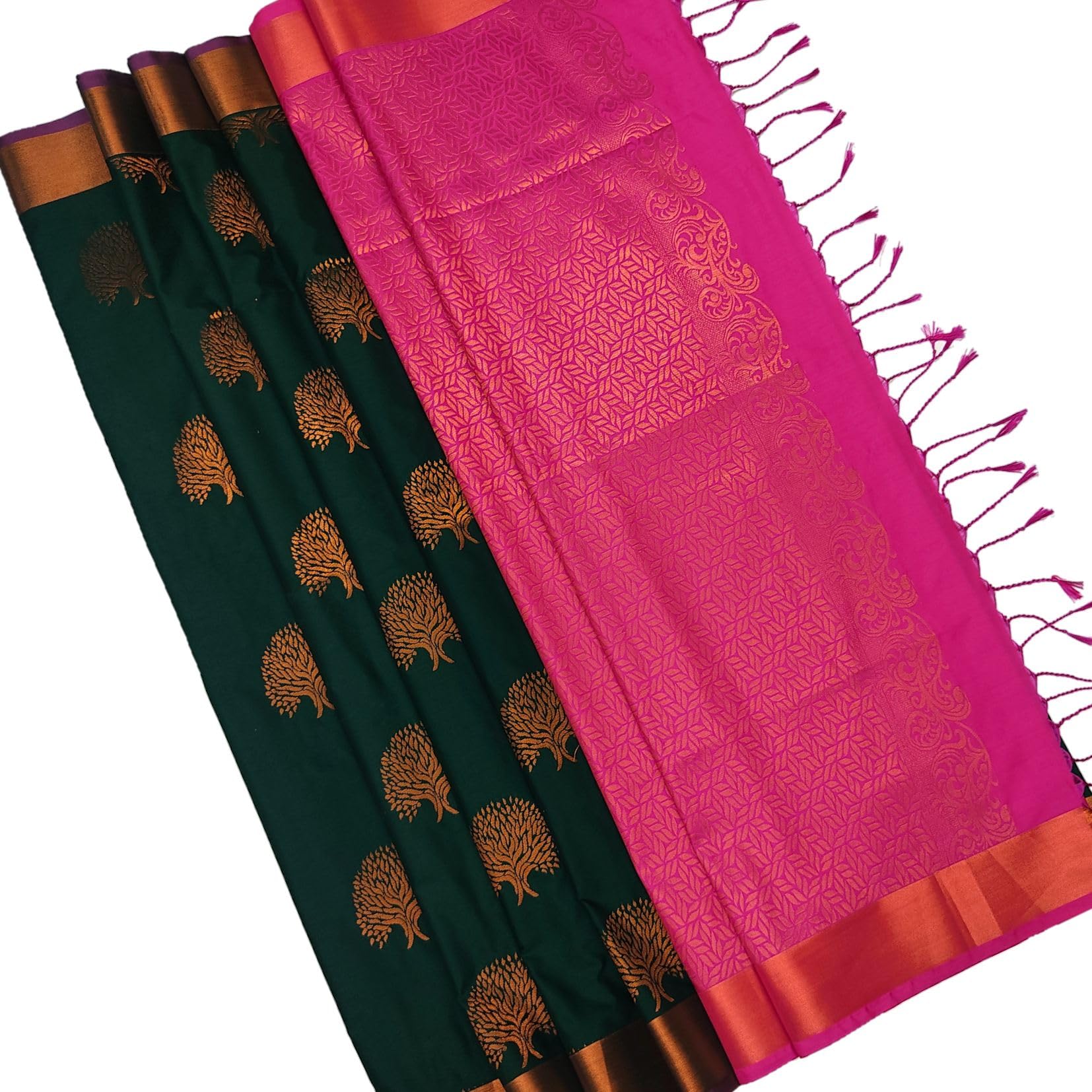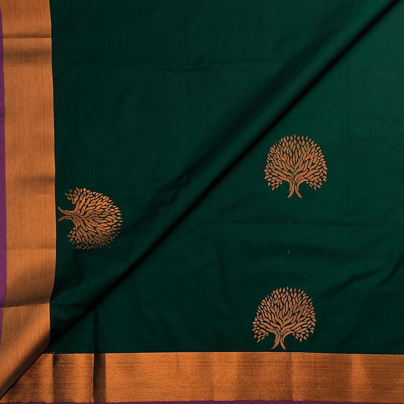 Kanchipuram Pure Silk Saree Original Golden Zari Intricate Jacquard Weaves Traditional Rich Border & Contrast Zari Rich Pallu(Green)-Silk Mark