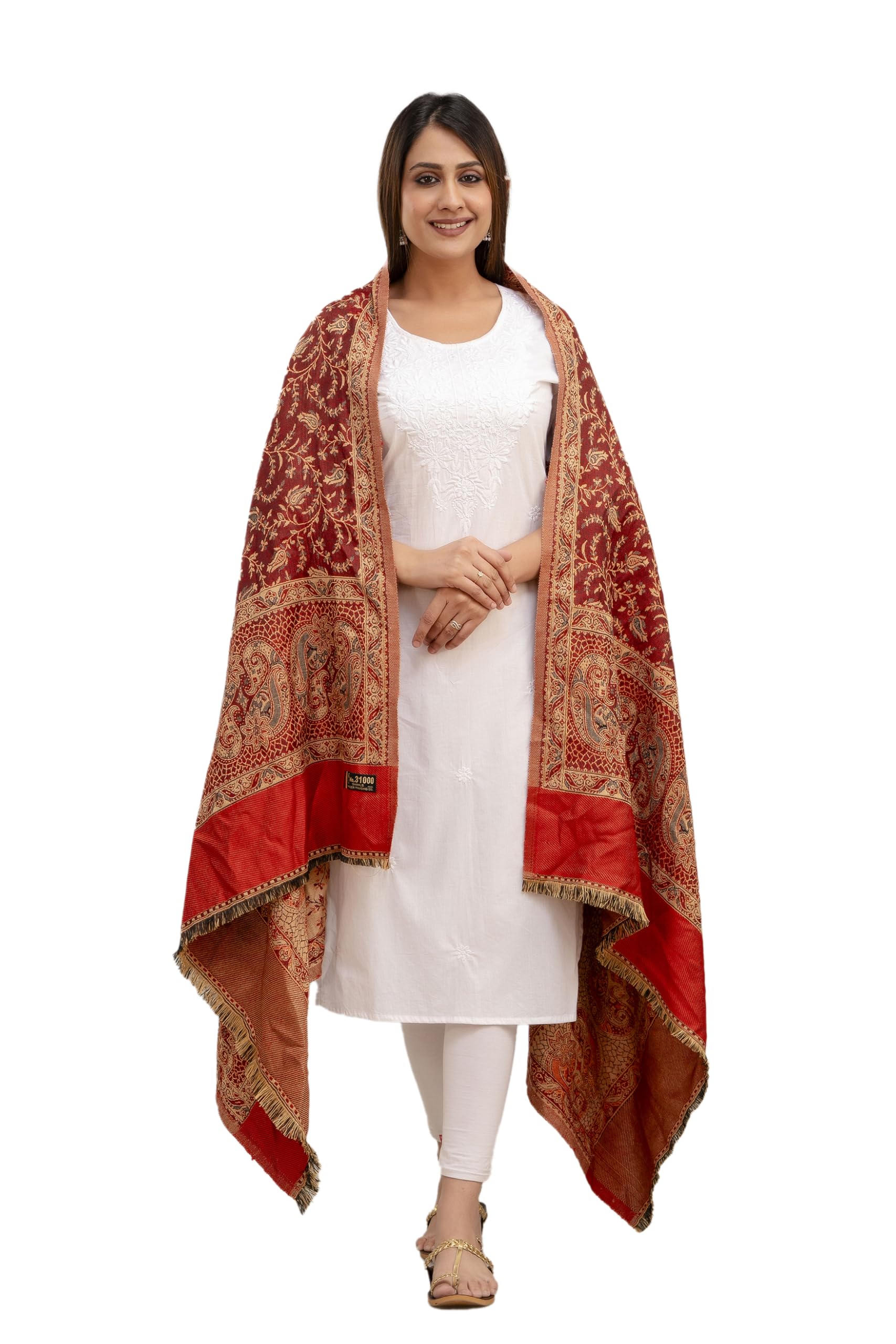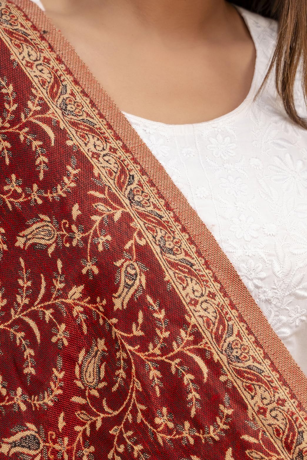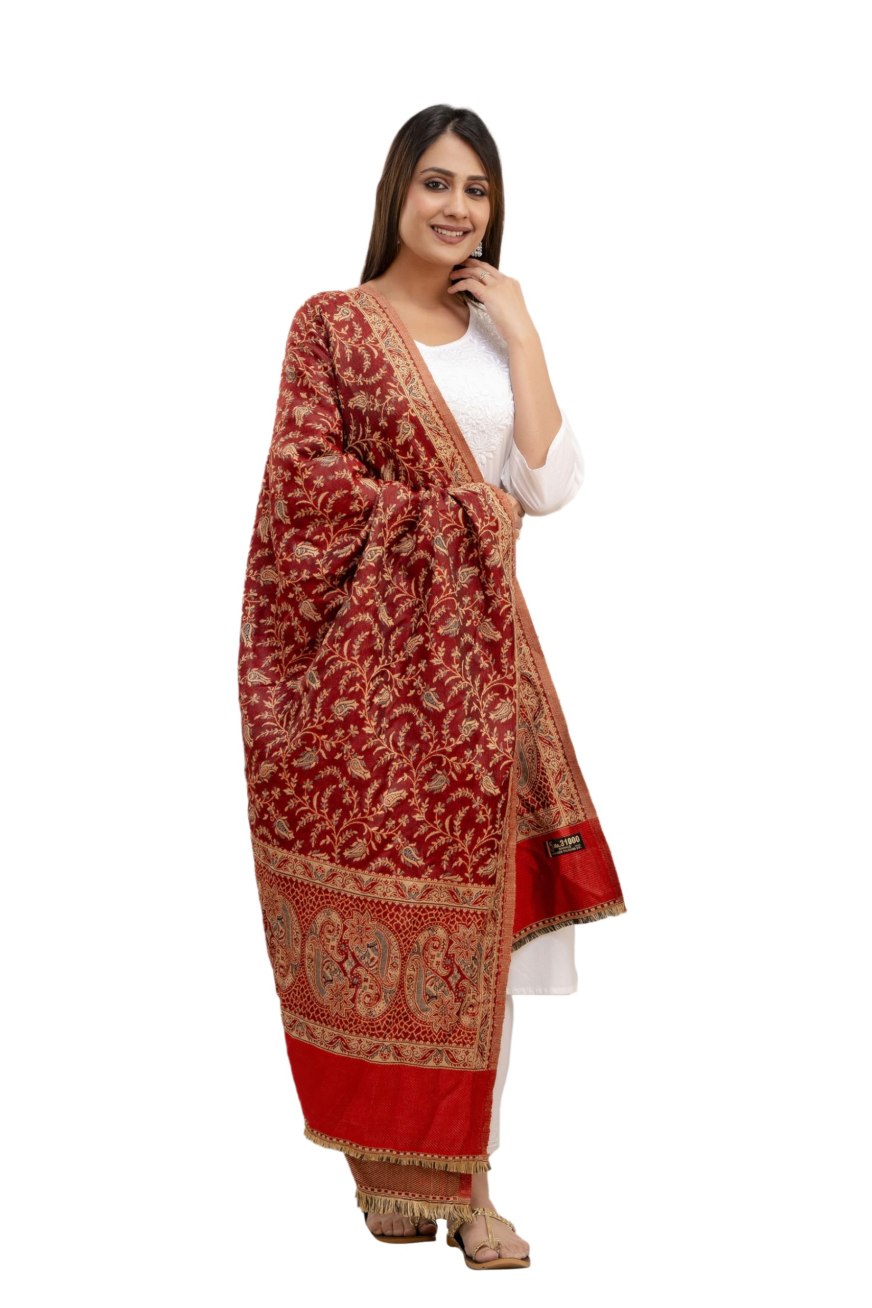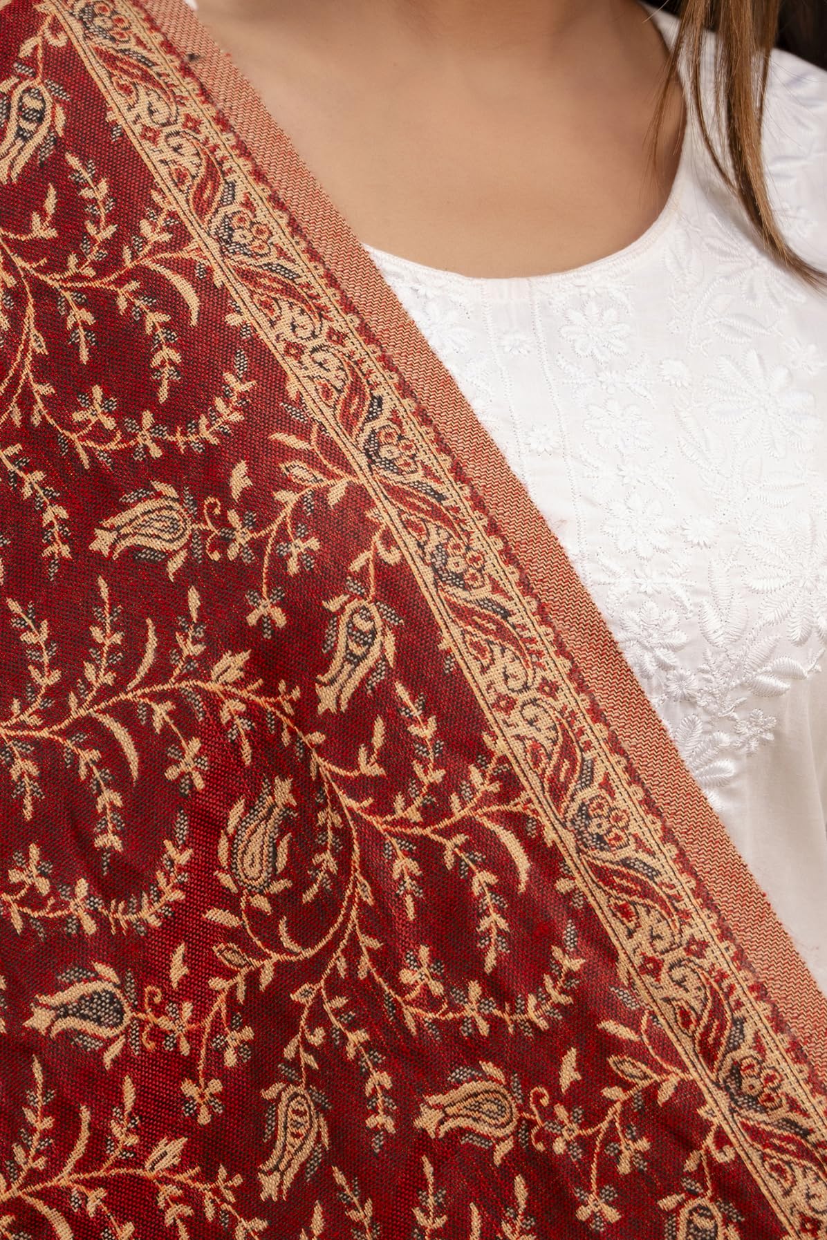 KEATY Kashmiri Kani Wool Shawl for Women | Ethnic Shawl/Stole for Women | Women's Pashmina Wool Kani Weave Shawls Winters (Pack Of 1) (MAROON)