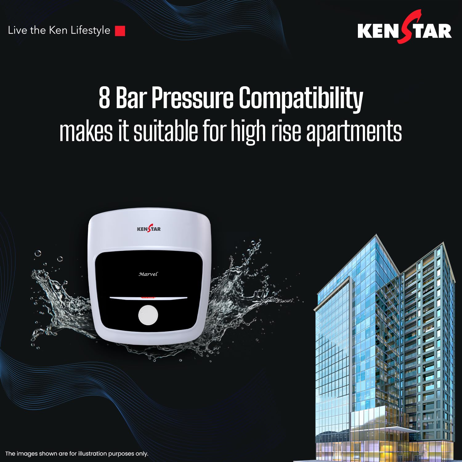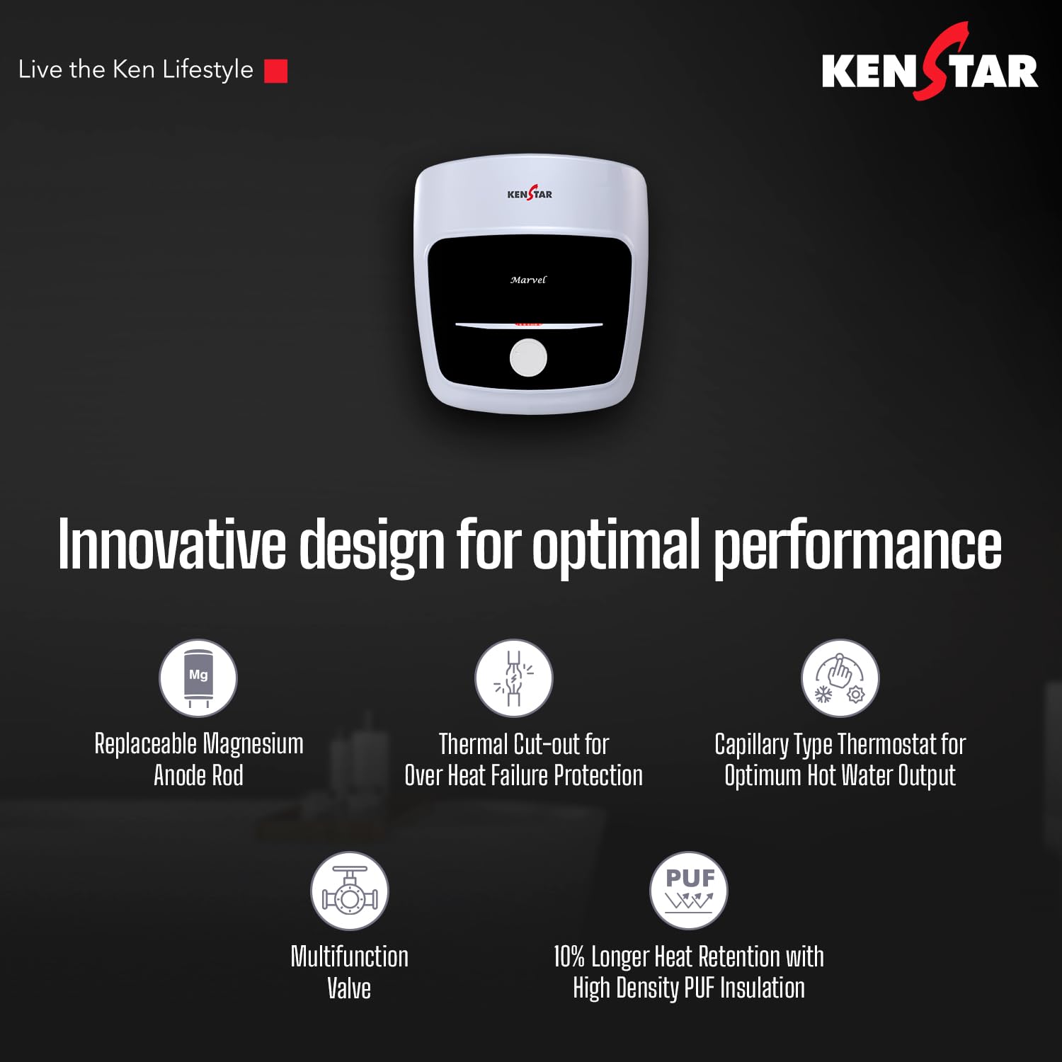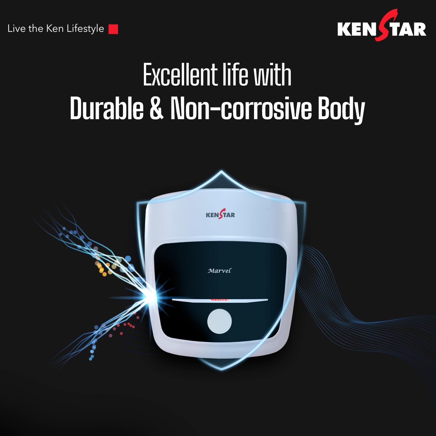 Kenstar Marvel 10-L, 5 Star Rated Storage Water Heater with Superior Glassline Coated Tank, Powerful 2000W Heating Element, Rust Proof Plastic Body and Advanced 3 Level Safety|(White and Blue)