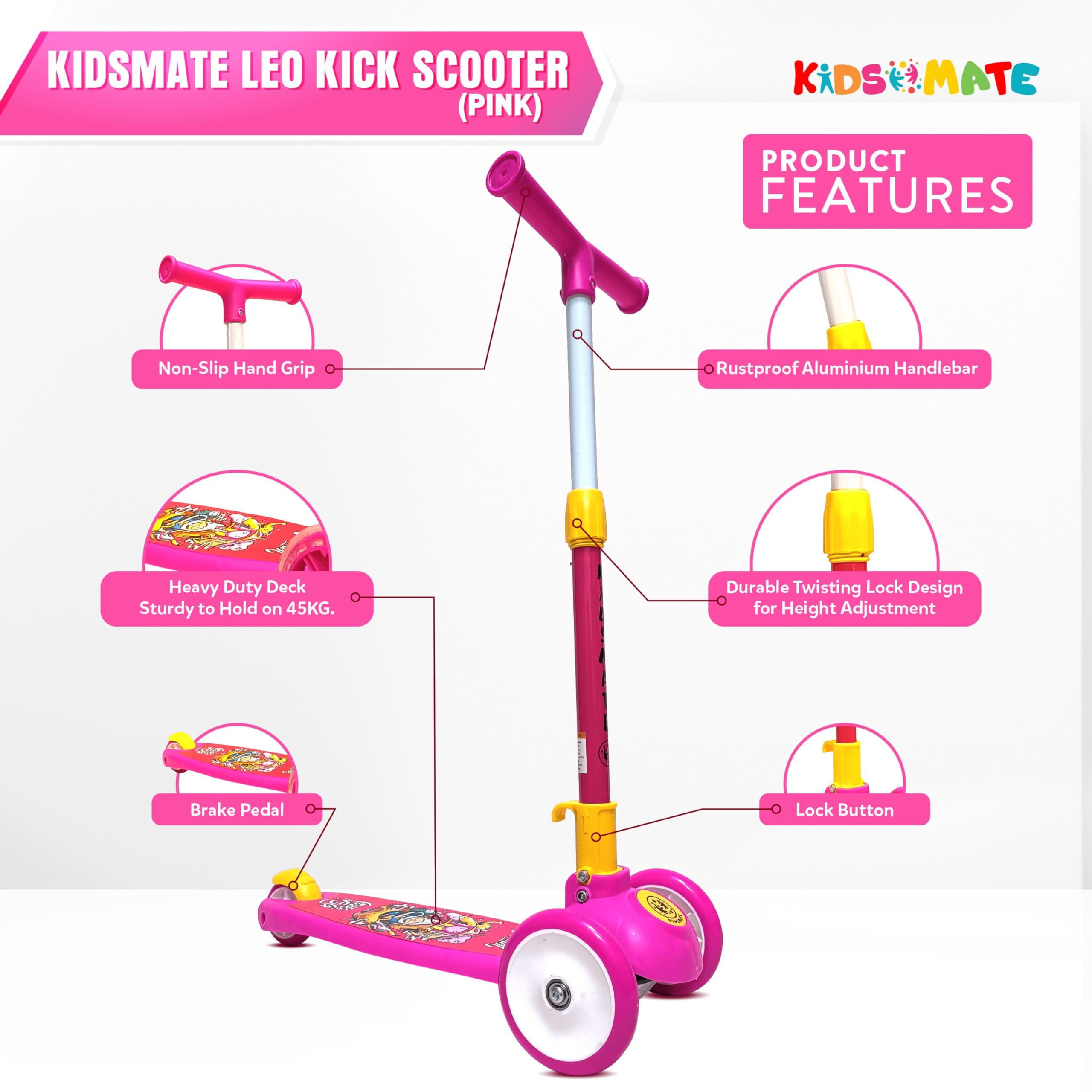 Brand: KidsmateColor: PinkFeatures: ADJUSTABLE FUN - The Leo Kick Scooter grows with your child, offering 4 adjustable heights. Ideal as... Read more