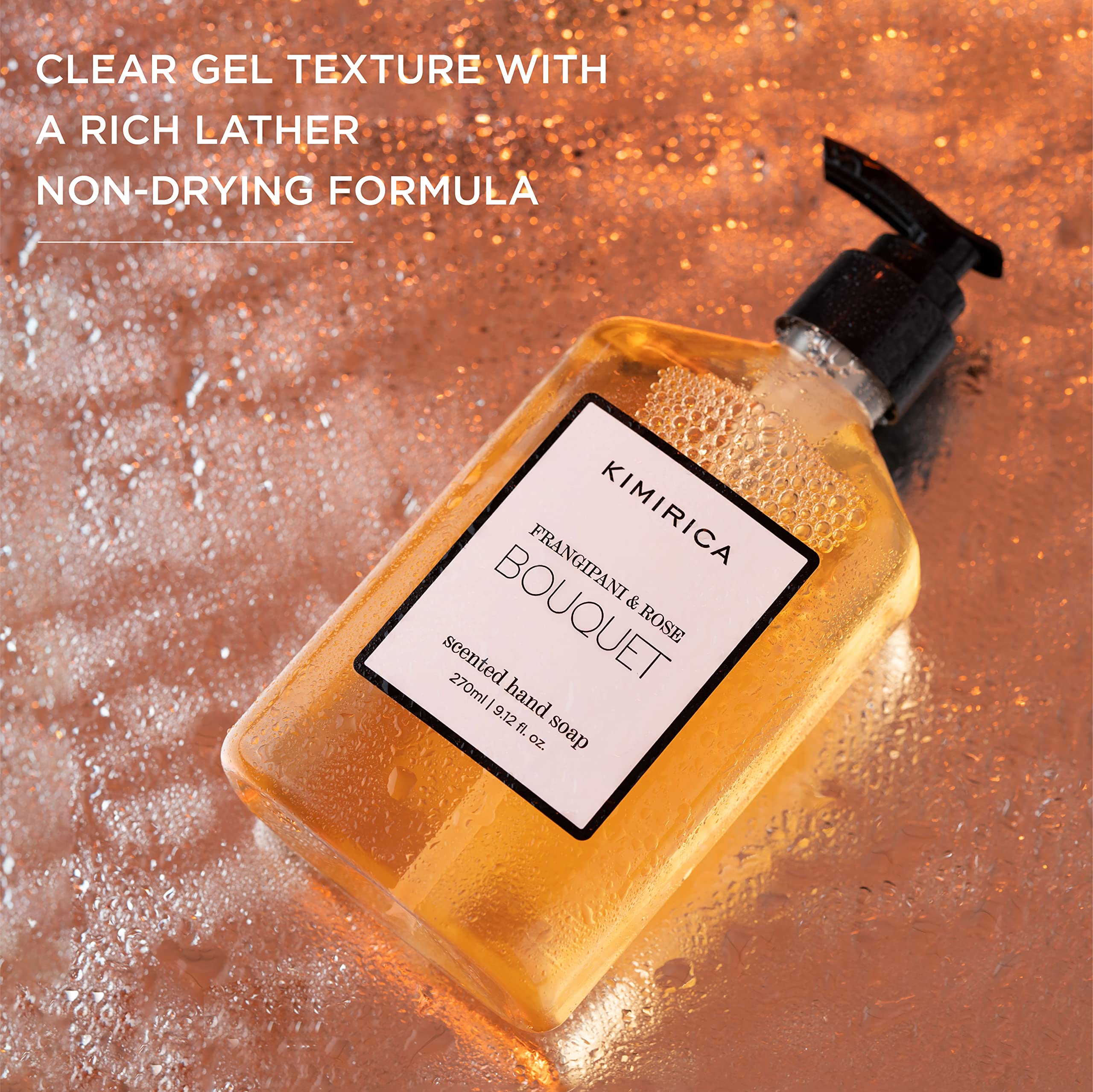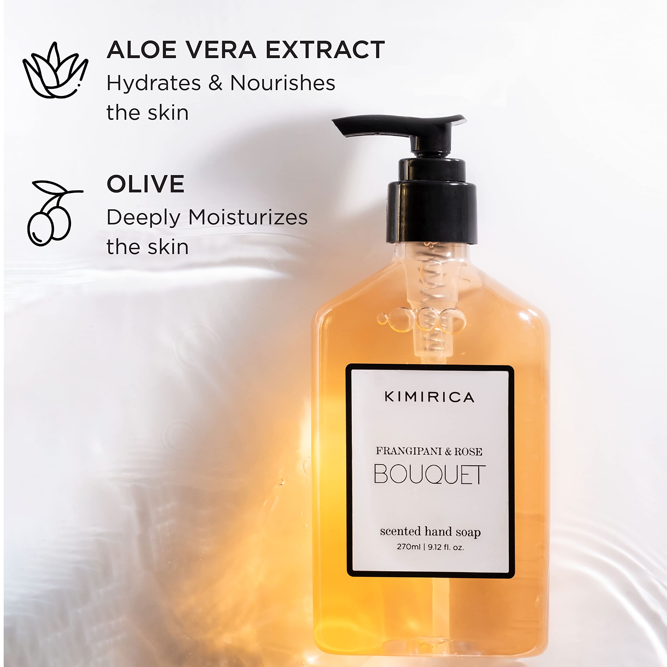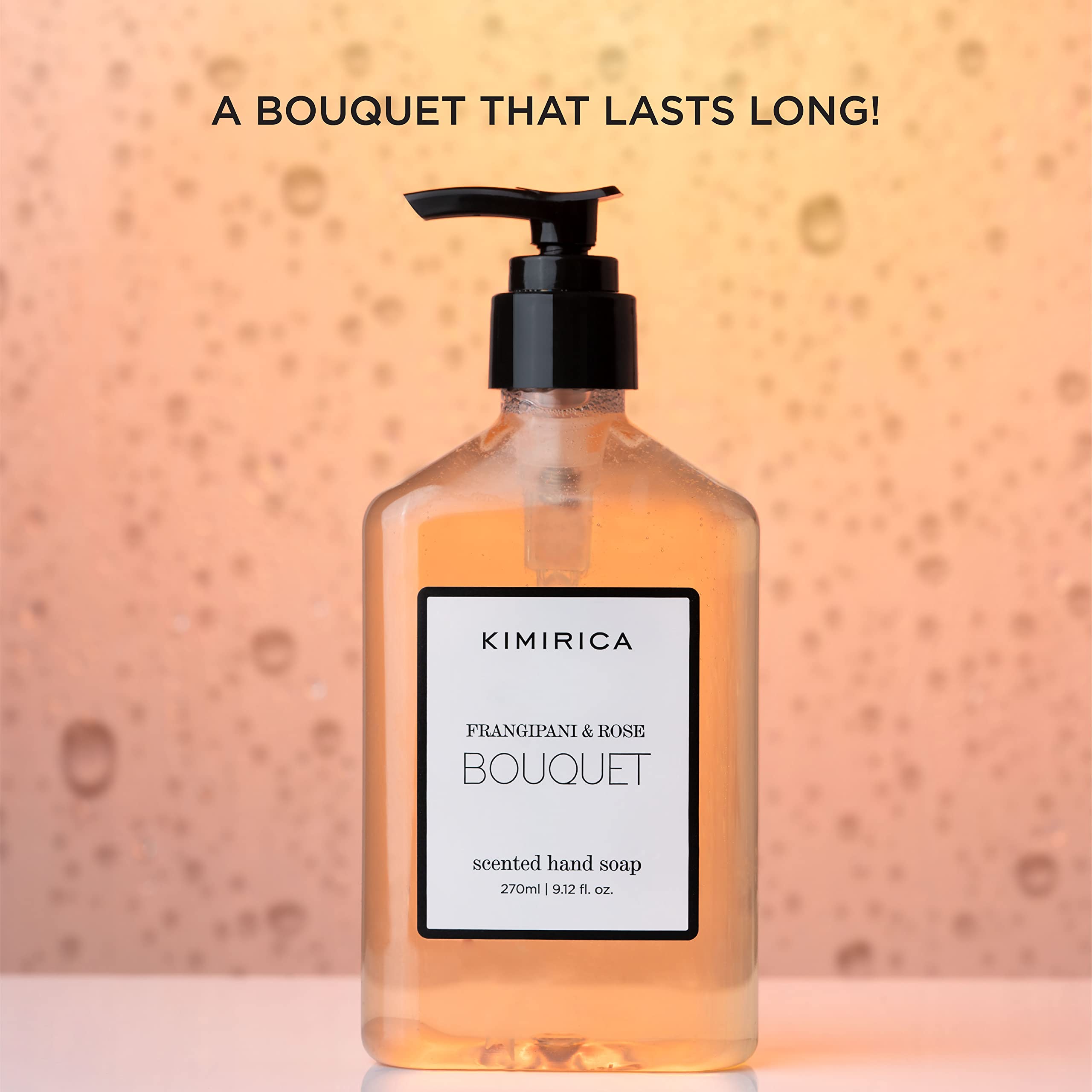 Kimirica Bouquet Luxury Hand Wash | Frangipani and Rose | Skincare Moisturizing | Antibacterial Formula | 100% Vegan & Paraben Free | 270 ml