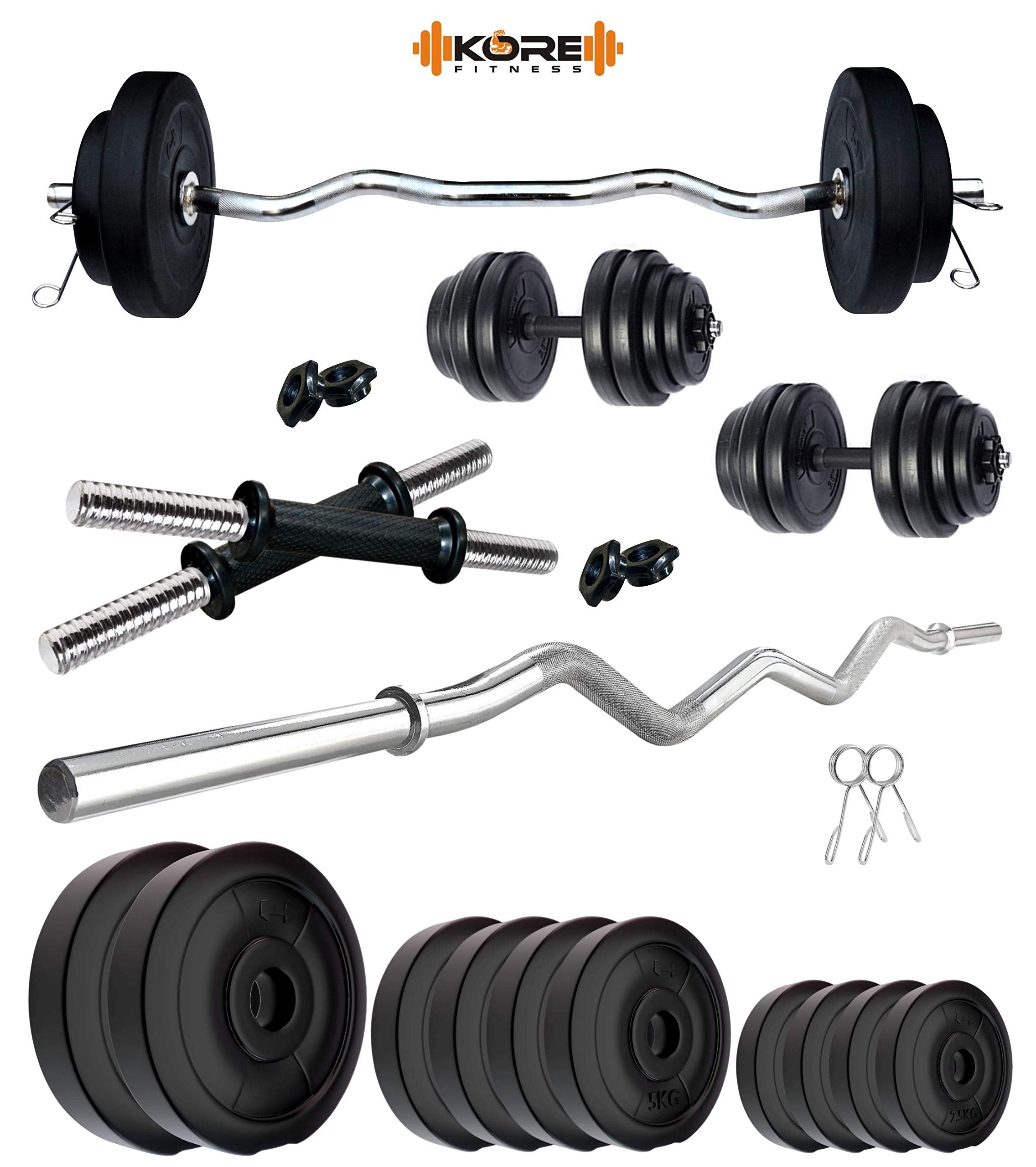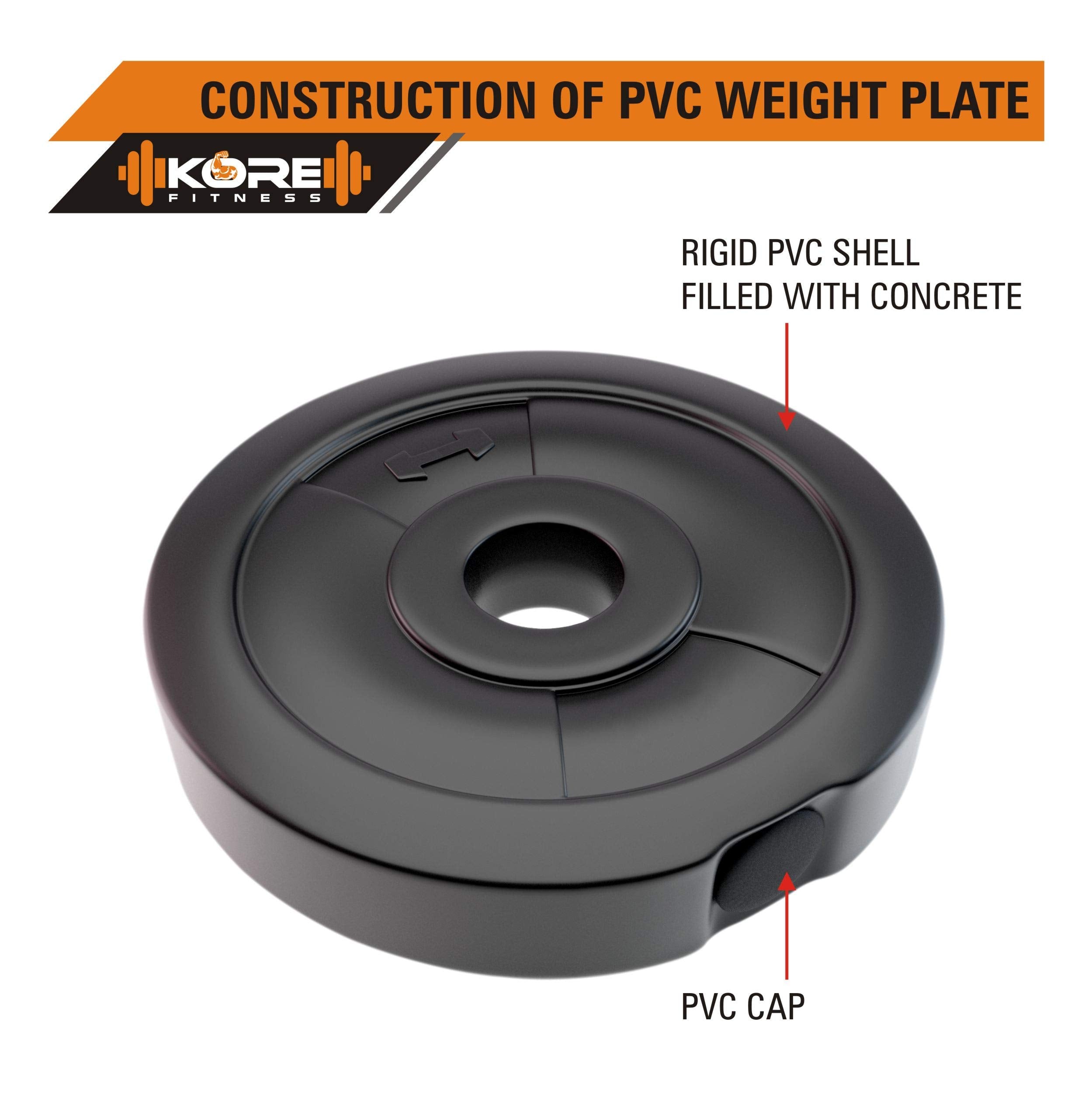 Kore PVC 50 Kg Home Gym Set with One 3 Ft Curl Rod and One Pair Dumbbell Rods, Multicolour