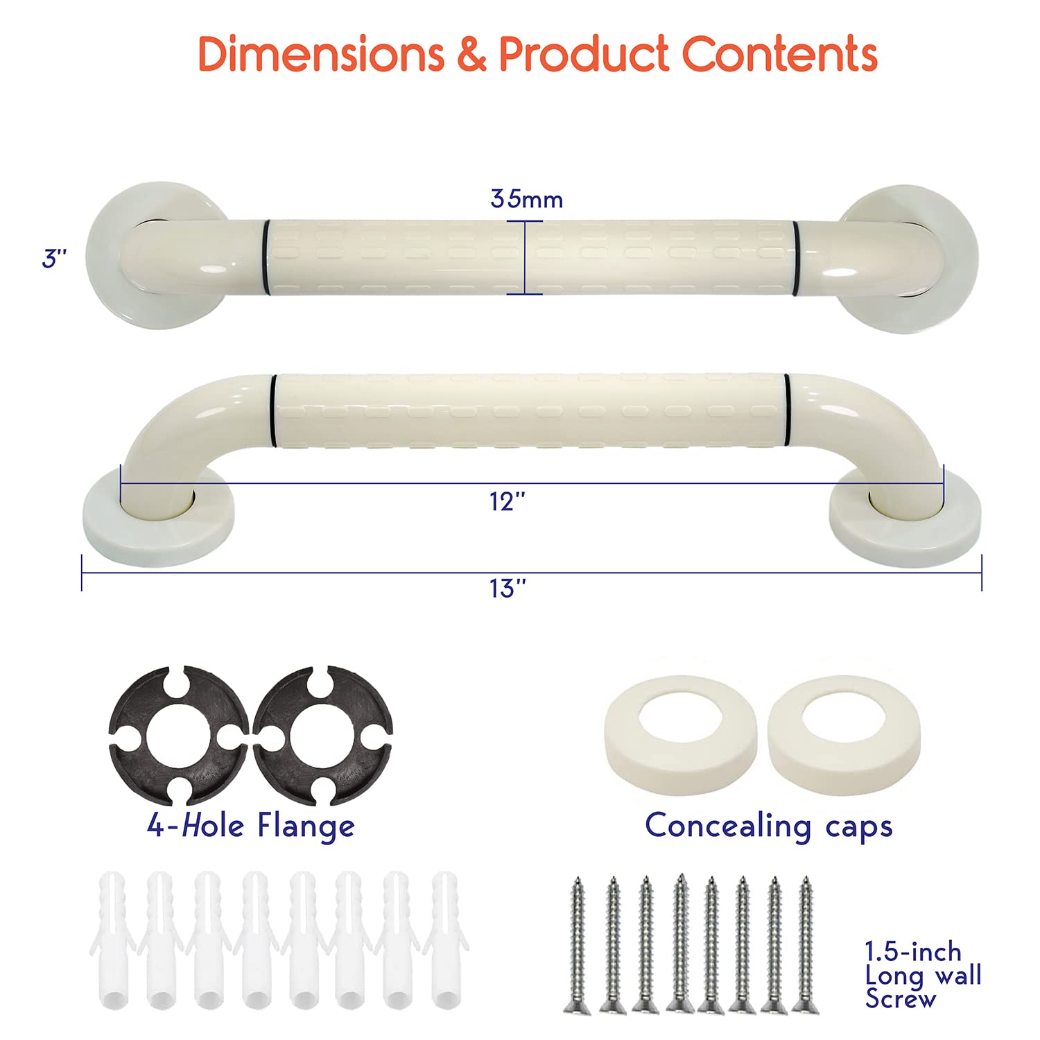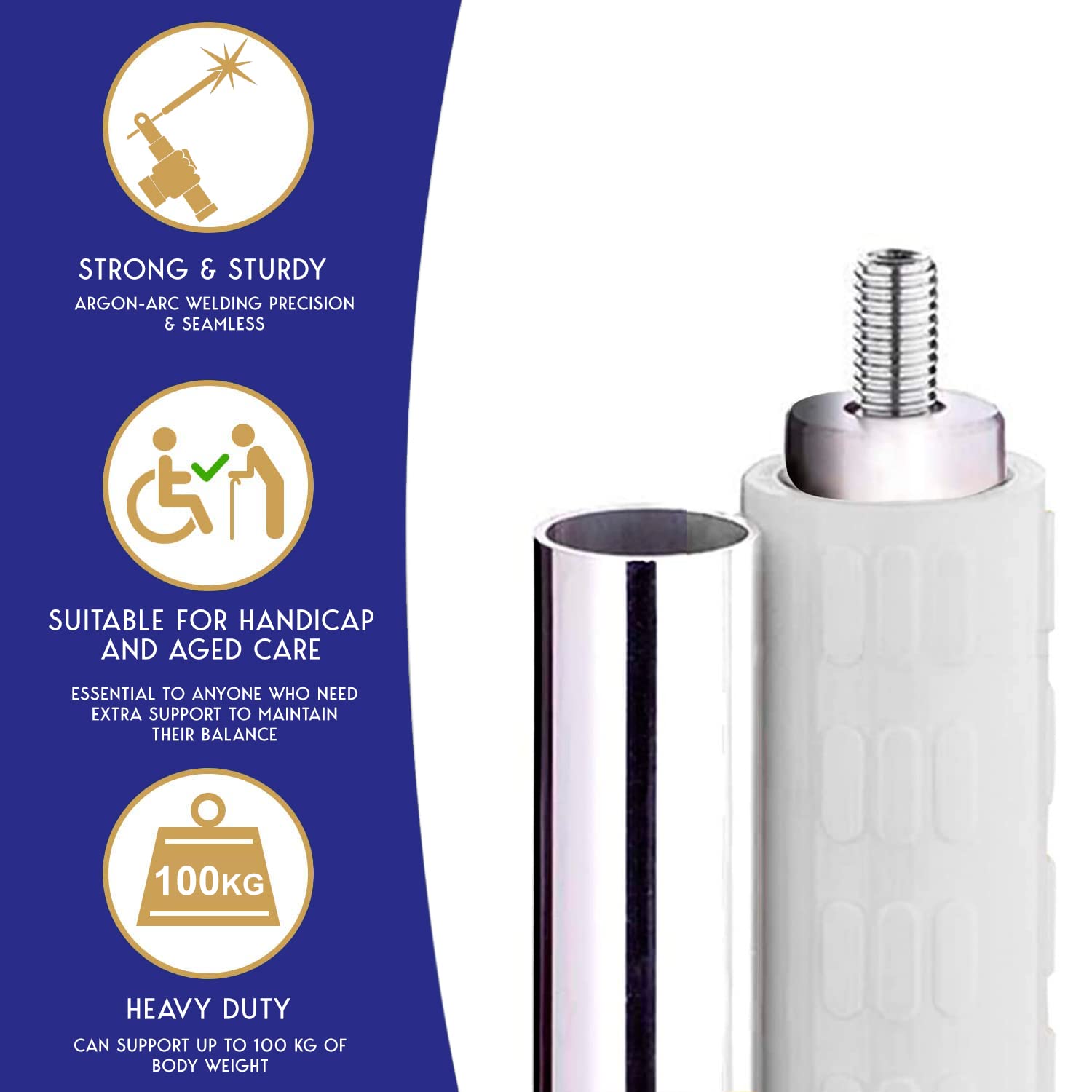 KosmoCare Stainless Steel 304 Grab Bar with Anti-Slip Nylon Grip - 12" | Heavy Duty Shower Handle for use in Toilet, Bathroom, Stairway Handrail for The Elderly, Pregnant Women & Handicap |