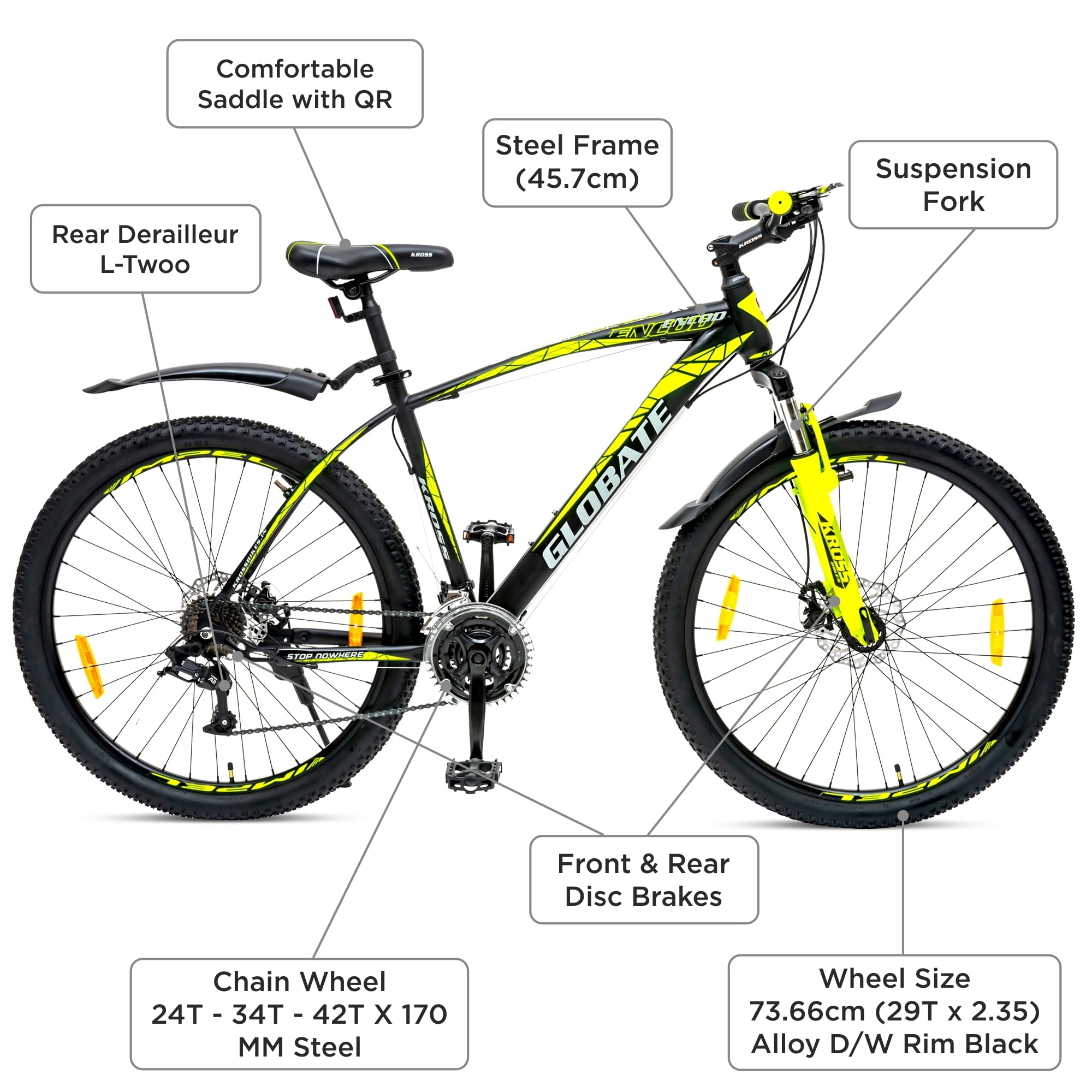 Brand: KROSSColor: black yellowFeatures: High-Performance Steel Frame: The 29-inch mountain cycle features a robust frame designed to withstand rugged terrains,... Read more