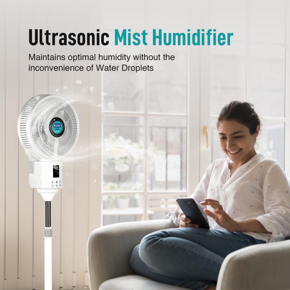 KUHL Exzel H1 Next Gen Desert Cooler BLDC Pedestal with Mist & Humidifier|8Blades |4Speed| Remote & Touch Panel with Display| Height Adjustement| Low Noise|8 Hr Water Tank|400mm |Free installation