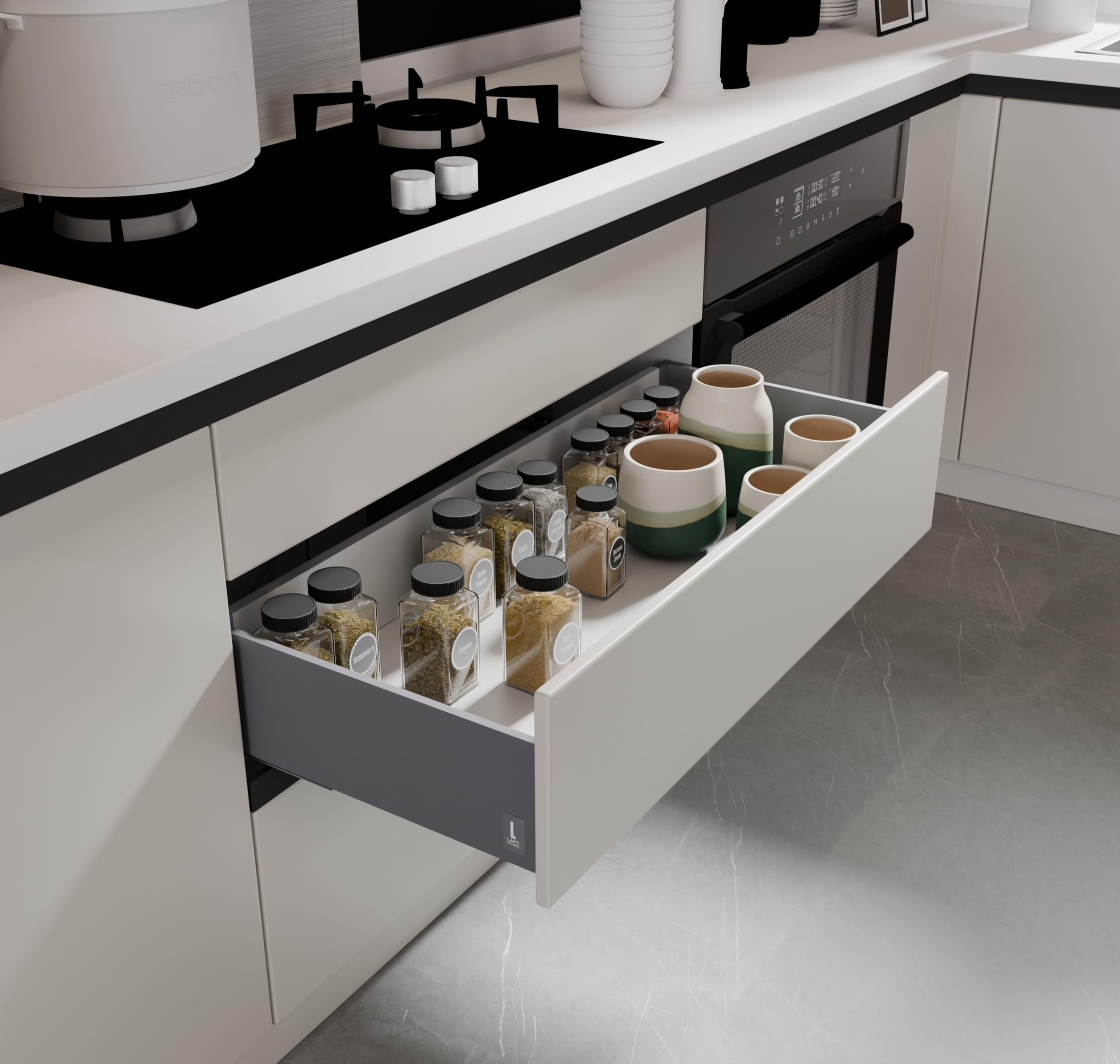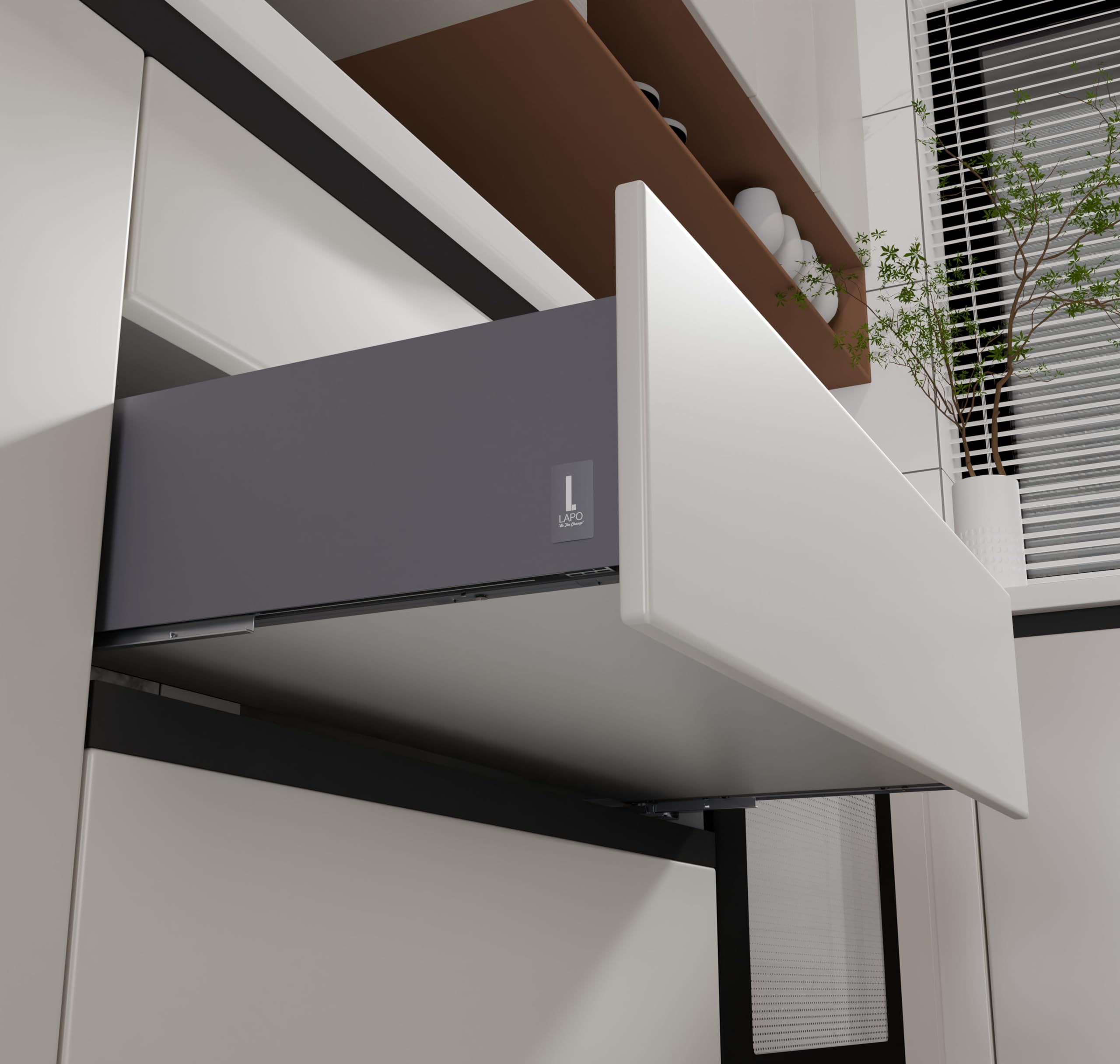LAPO Tandem Box Drawer for Kitchen, Soft Close Tandem Drawer Box for Modular Kitchen Tandem Basket-Load Capacity 45 Kg (550mm/22 - Height-6") (Grey)