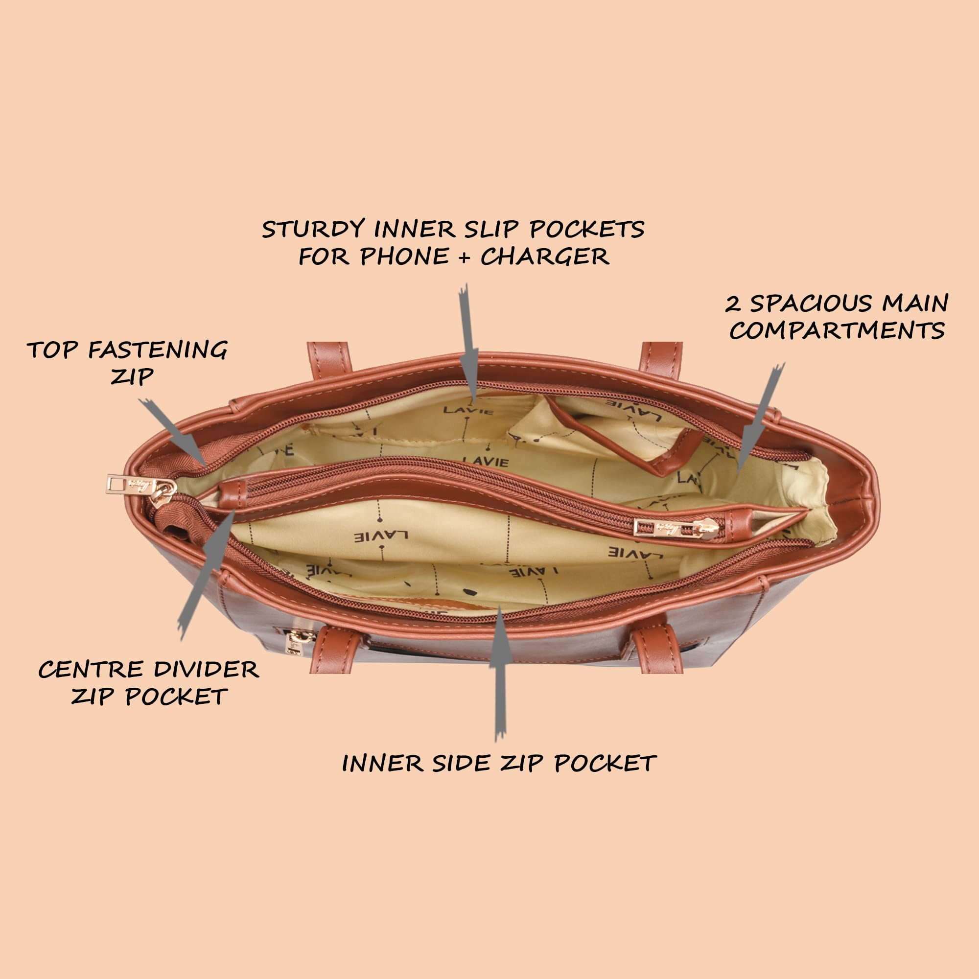Brand: LavieColor: TanFeatures: ✔Top zip closure for safety & security and comfortable Lavie tote bag with dual flat shoulder straps... Read more