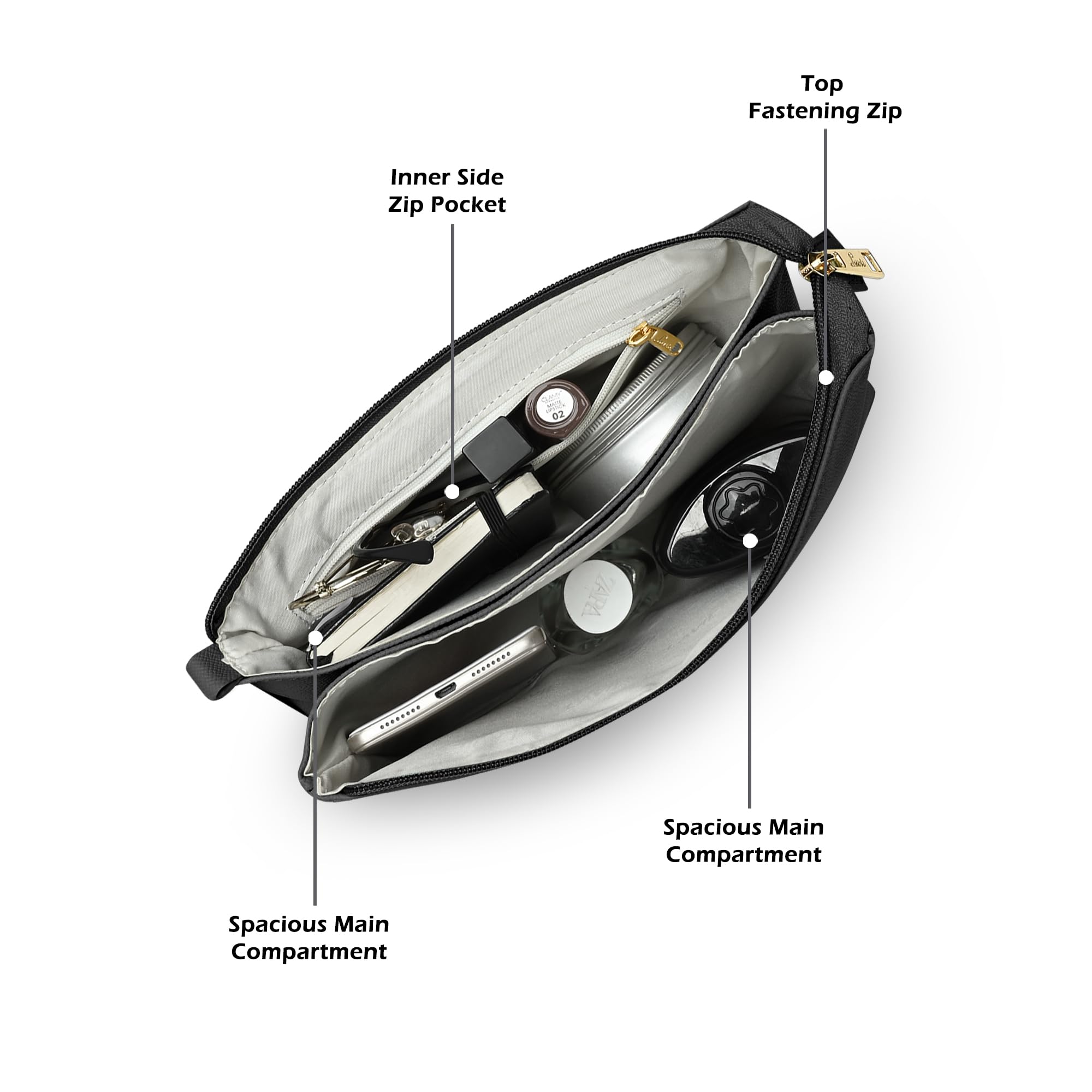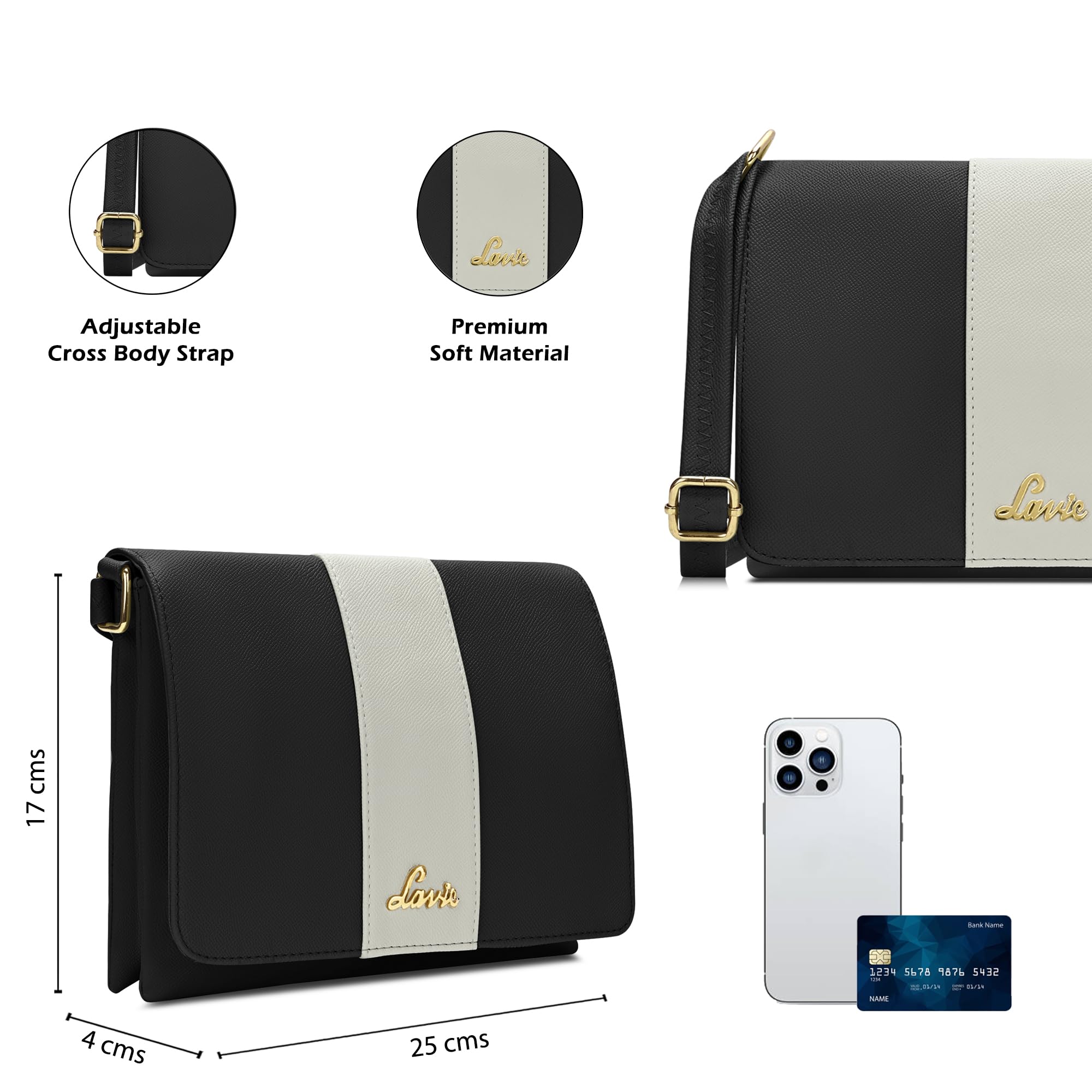 Brand: LavieColor: BlackFeatures: Perfect for a party or outing, this sling bag with a flap opening and a super beautiful... Read more