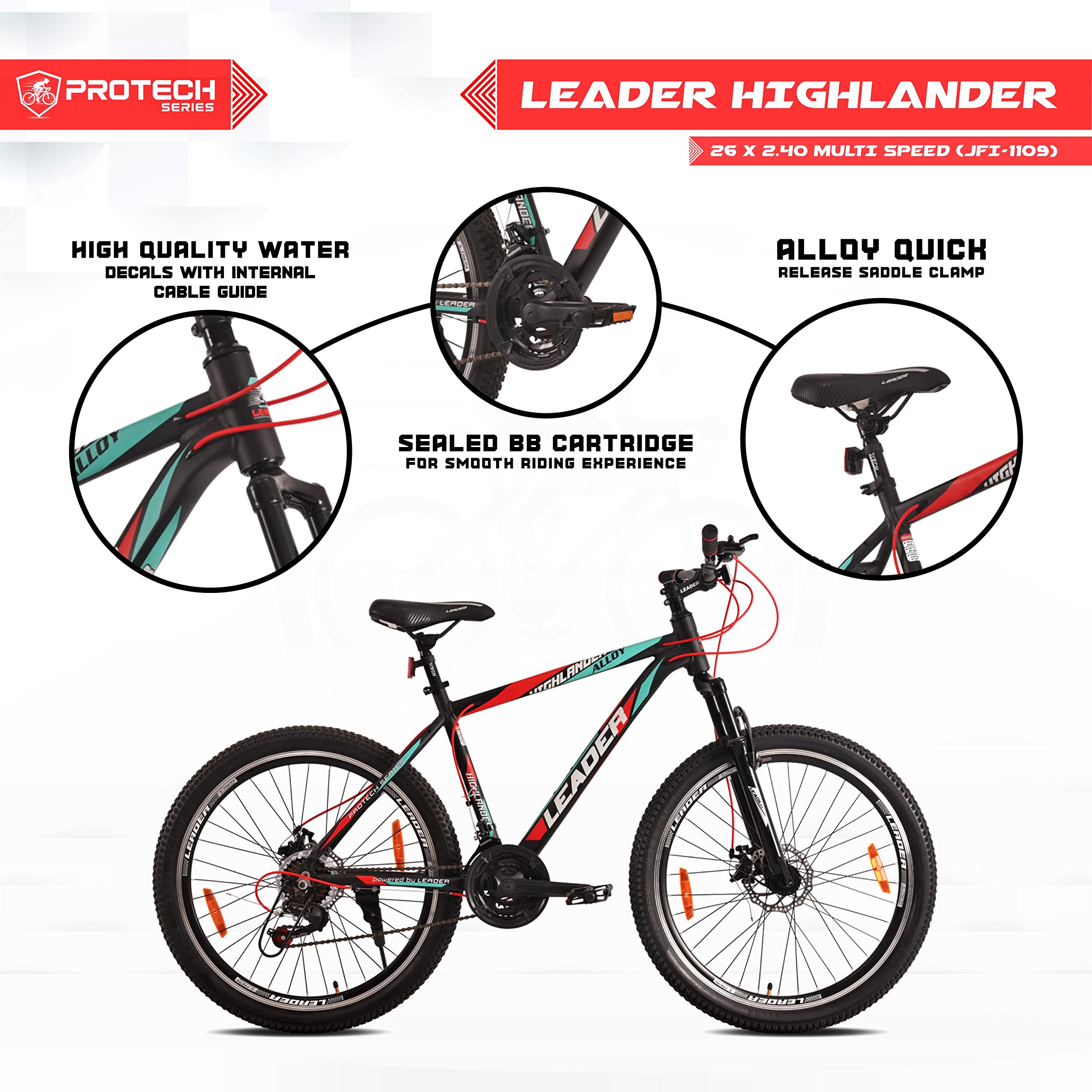 Leader Highlander 26T 21-Speed Alloy MTB Cycle| Free Pan India Installation | Dual Disc Brake and Front Suspension Ideal for 12+ Years