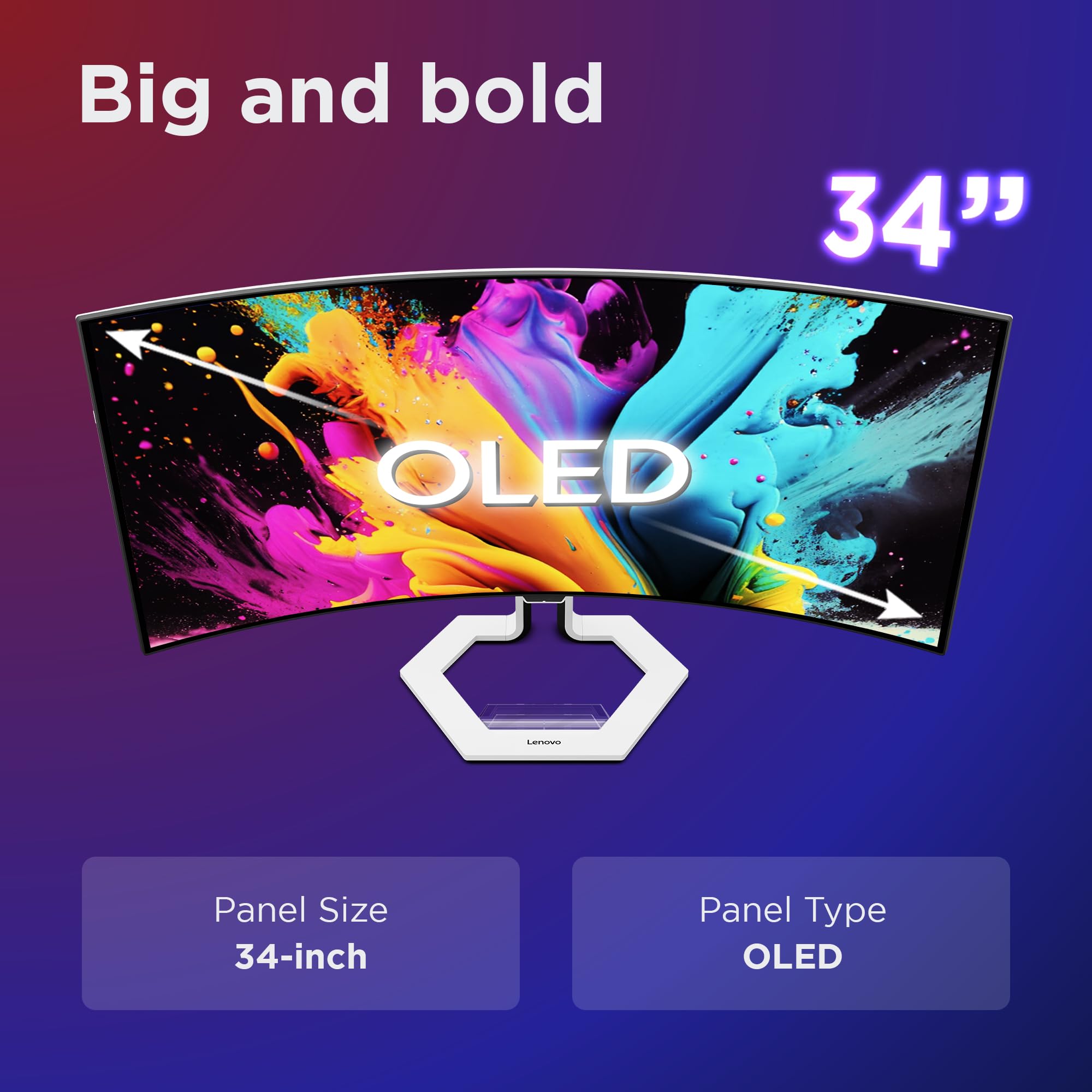 Lenovo Legion Pro 34WD-10| 34" 240Hz WQHD OLED Curved Gaming Monitor|0.03ms, USB-C Docking 140W PD,2xHDMI+DP, RJ45|Tilt,Swivel,Height Stand|AI Smart Sensors|2x5W Speakers|KVM Switch| 67C9UAC1IN