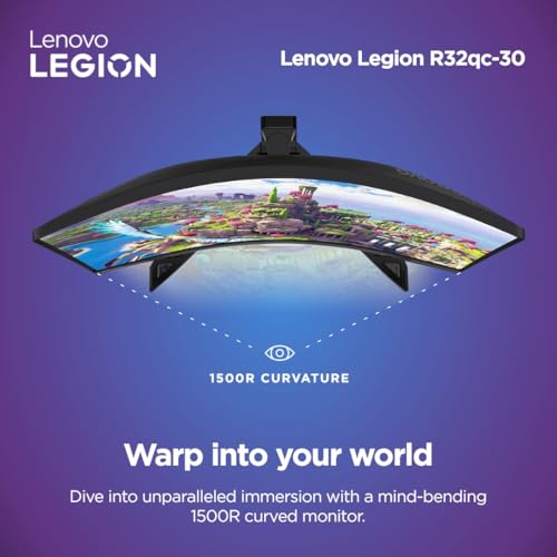 Lenovo Legion-R32qc-30 | 32" (81.2cm) QHD 180Hz Curved Gaming Monitor | 0.5ms, AMD FreeSync, 99% sRGB, 3Wx2Speaker, 2xHDMI 2.1 TMDS, 1xDP 1.4| Tilt, Swivel, Pivot, Height Adjust | Black | 67C8GAC1IN