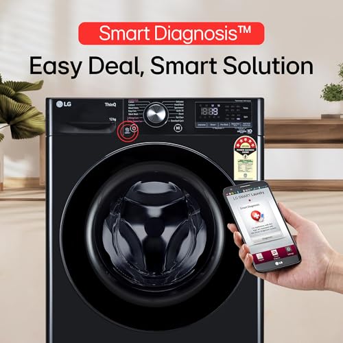 LG 12 Kg, 5 Star, AI Direct Drive Technology, Wi-Fi, Steam Fully Automatic Front Load Washing Machine (FHP1412Z5O, Intelligent & Convenient Fabric Care, Allergy Care, Remote Control, Onyx Black)