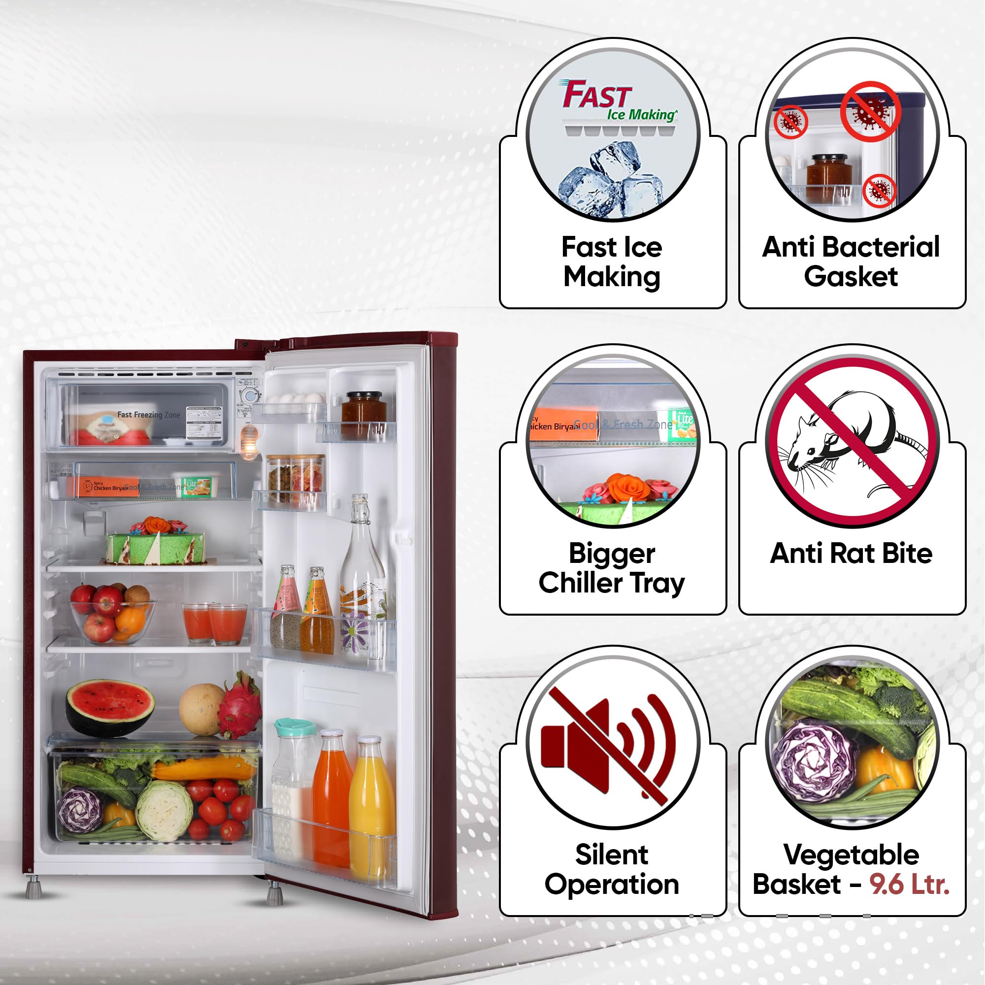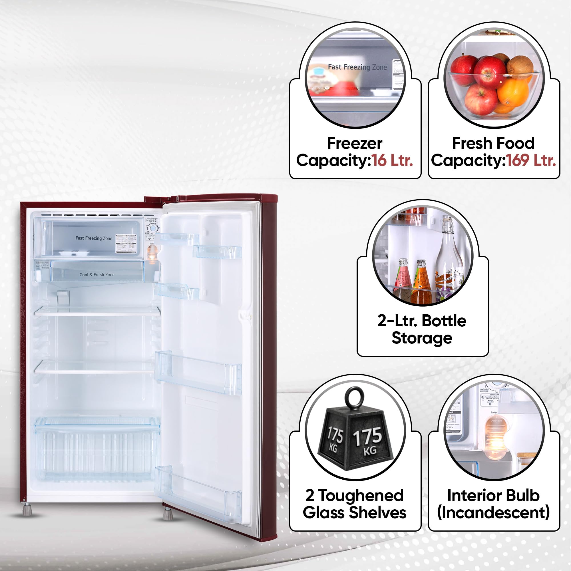LG 185 L 4 Star Direct-Cool Inverter Single Door Refrigerator (GL-B199OSEY, Scarlet Euphoria, Smart Connect)