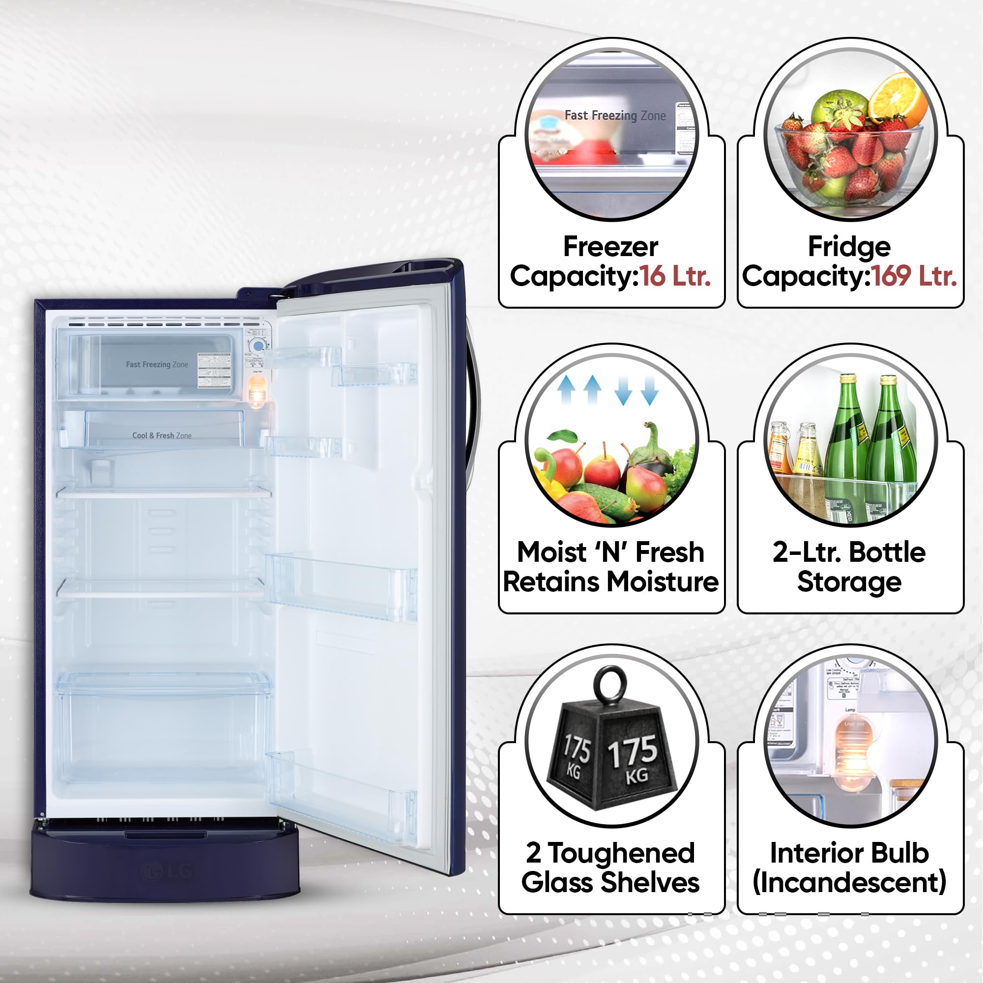 Brand: LGColor: Blue ILANFeatures: LG Direct Cool Single Door Refrigerator: a perfect blend of style, energy efficiency, and lasting freshness... Read more