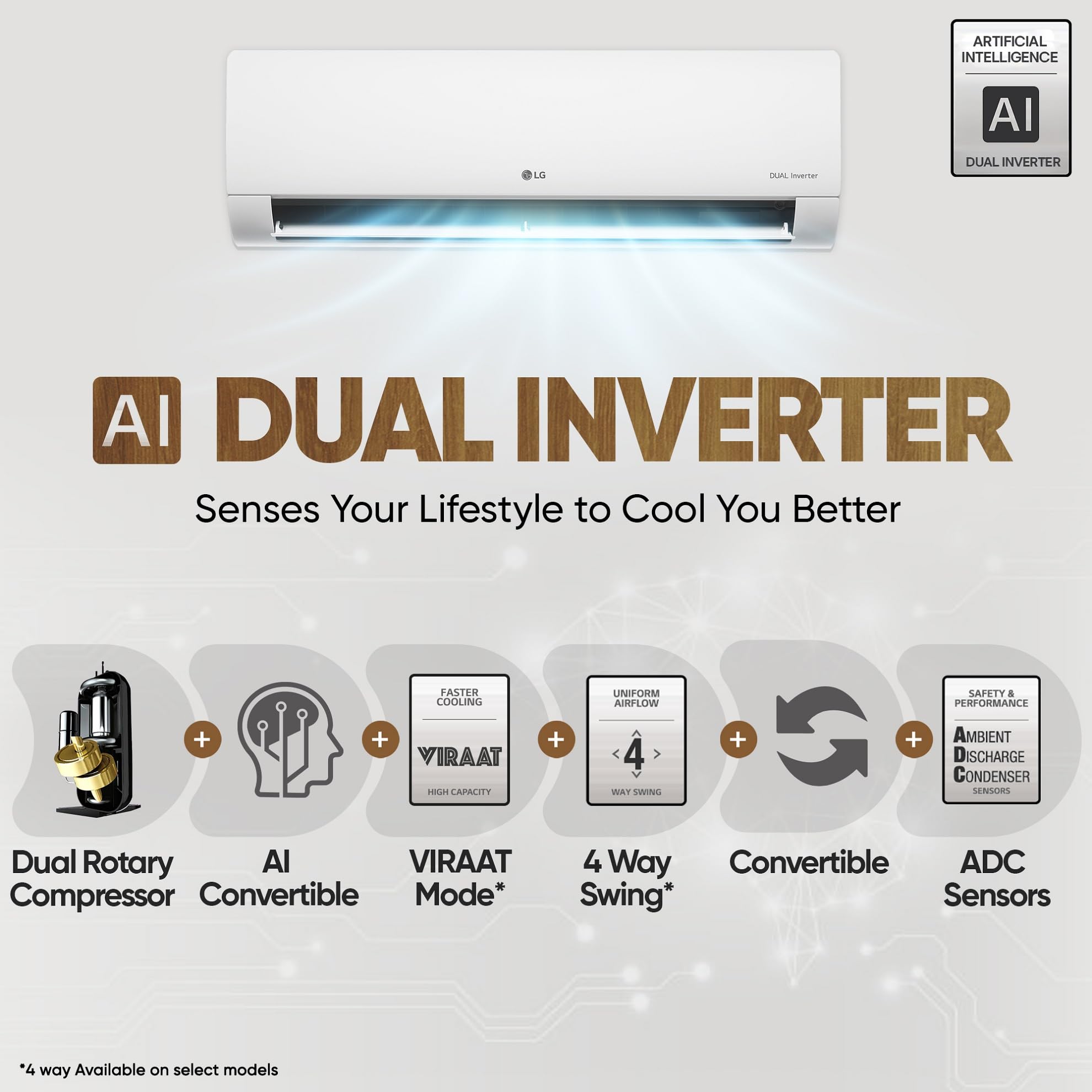 LG 2 Ton 3 Star DUAL Inverter Split AC (Copper, AI Convertible 6-in-1, Diet Mode+, Faster Cooling & Energy Saving, 4 Way Swing, HD Filter with Anti-Virus Protection, US-Q24ENXE, White)