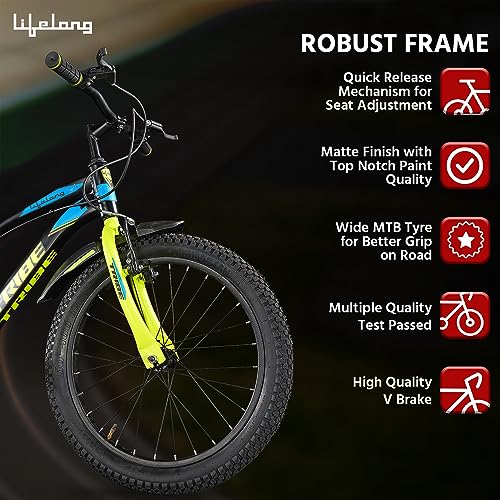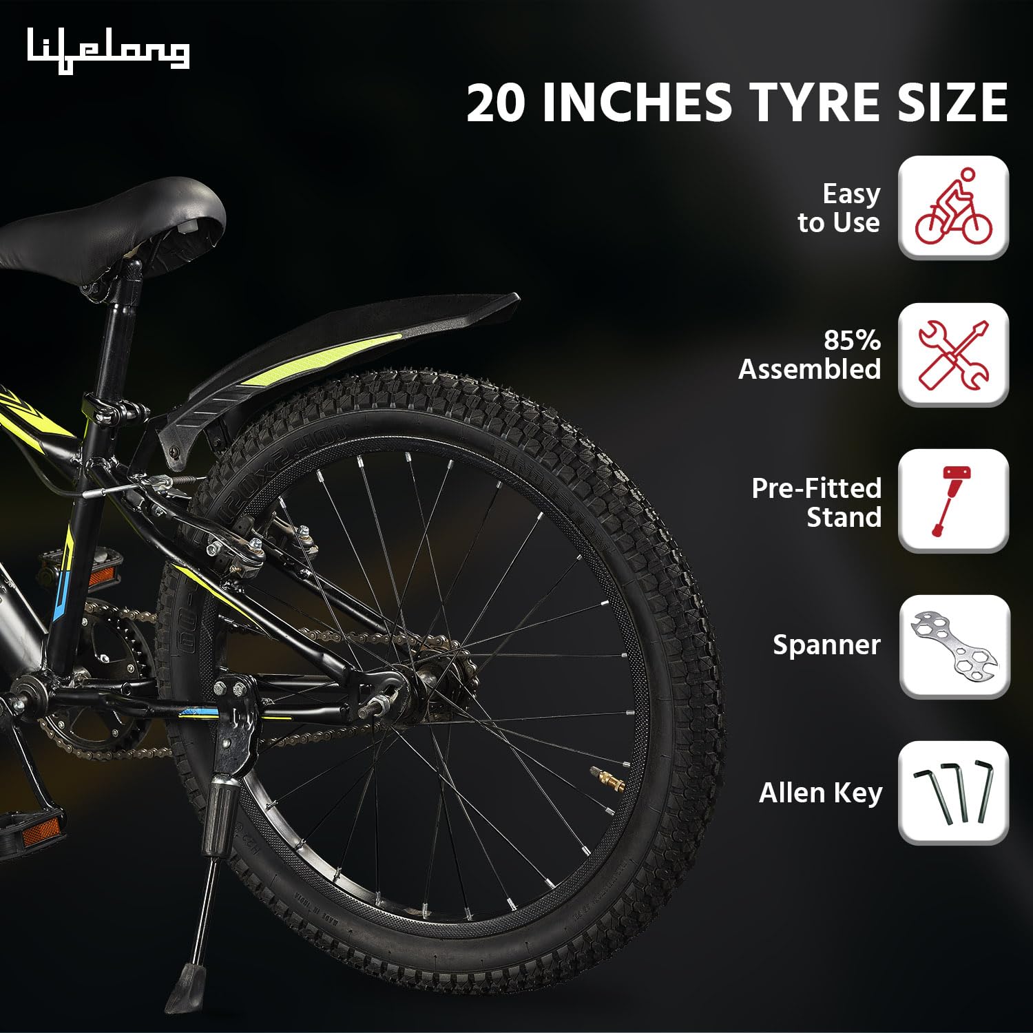 Lifelong 20T Cycle for Kids 5 to 8 Years - Bike for Boys and Girls - 85% Pre-Assembled, Frame Size: 12" - Suitable for Children 3 Feet 10 Inch+ Height - Unisex Cycle (Tribe, Yellow & Black),Rigid