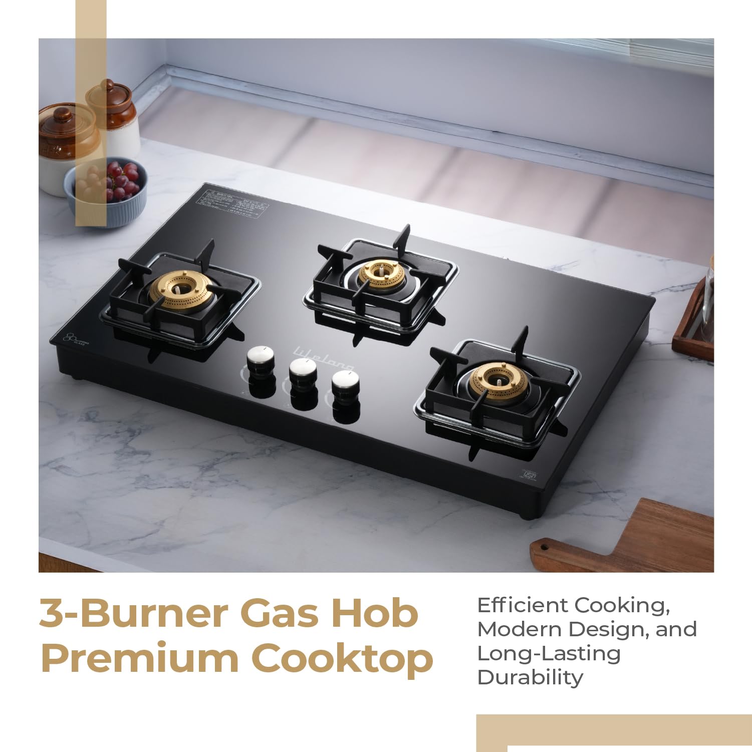 Lifelong 3 Gas Burner Tops - 3 Burners Hob Top Gas Stove with Automatic Ignition - Toughened Glass Top Gas Stoves for Home & Kitchen - Automatic Gas Stove for Modular Kitchen (LLHT007)