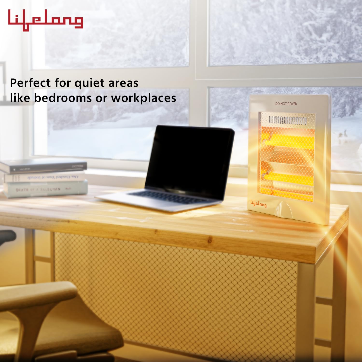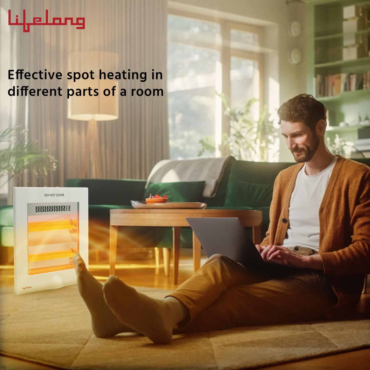 Lifelong Regalia 800 Watts Quartz Room Heater for Home with 2 Power settings, ISI Certified, 2 Rod Heater for Room |Cord Length 1.5 Meter| 1 Year Manufacturer's Warranty (LLQH922, White)