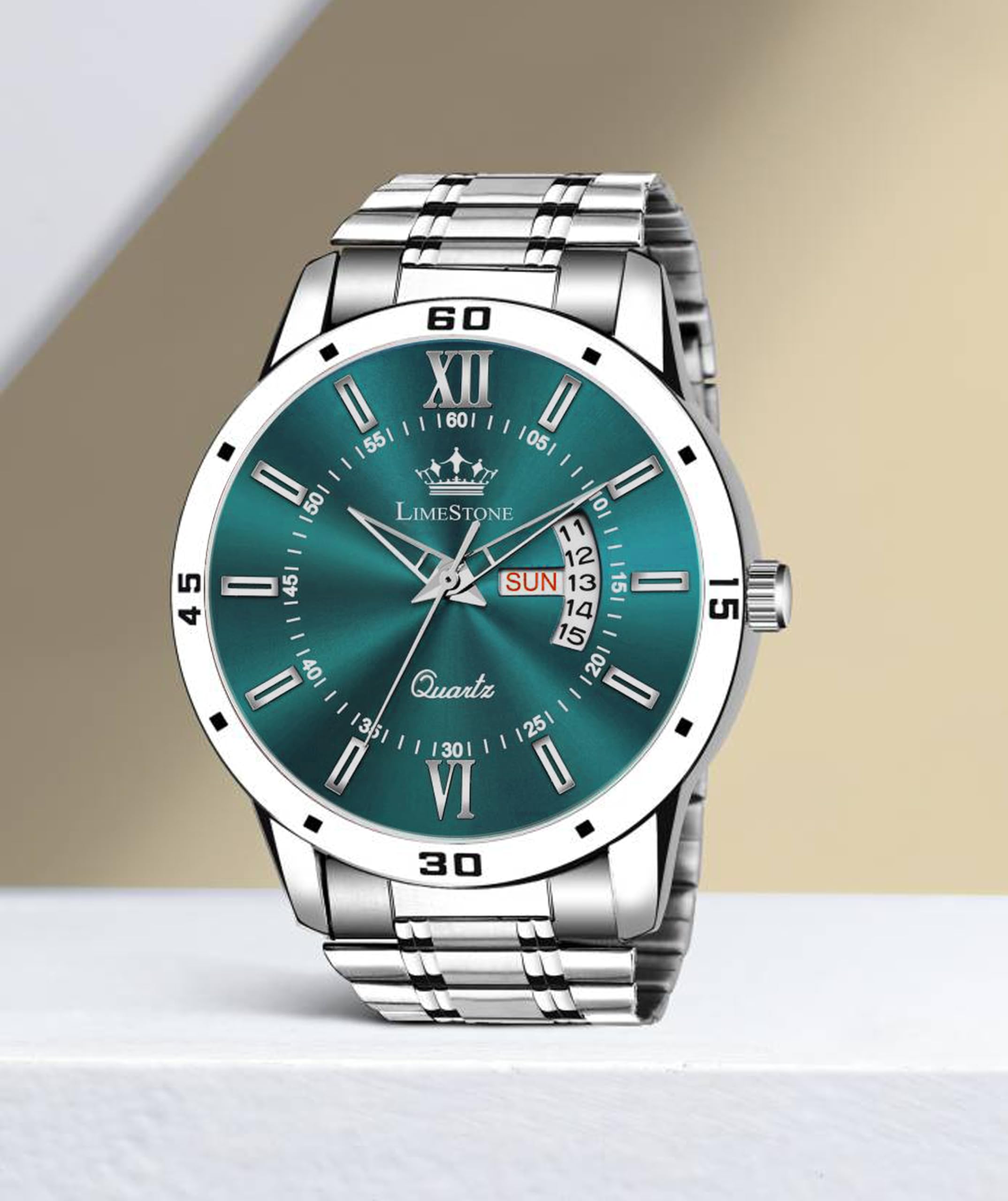 Limestone Day and Date Functioning Steel Strap New Quartz Analog Watch for Men Classic Design Men's Wrist Watches