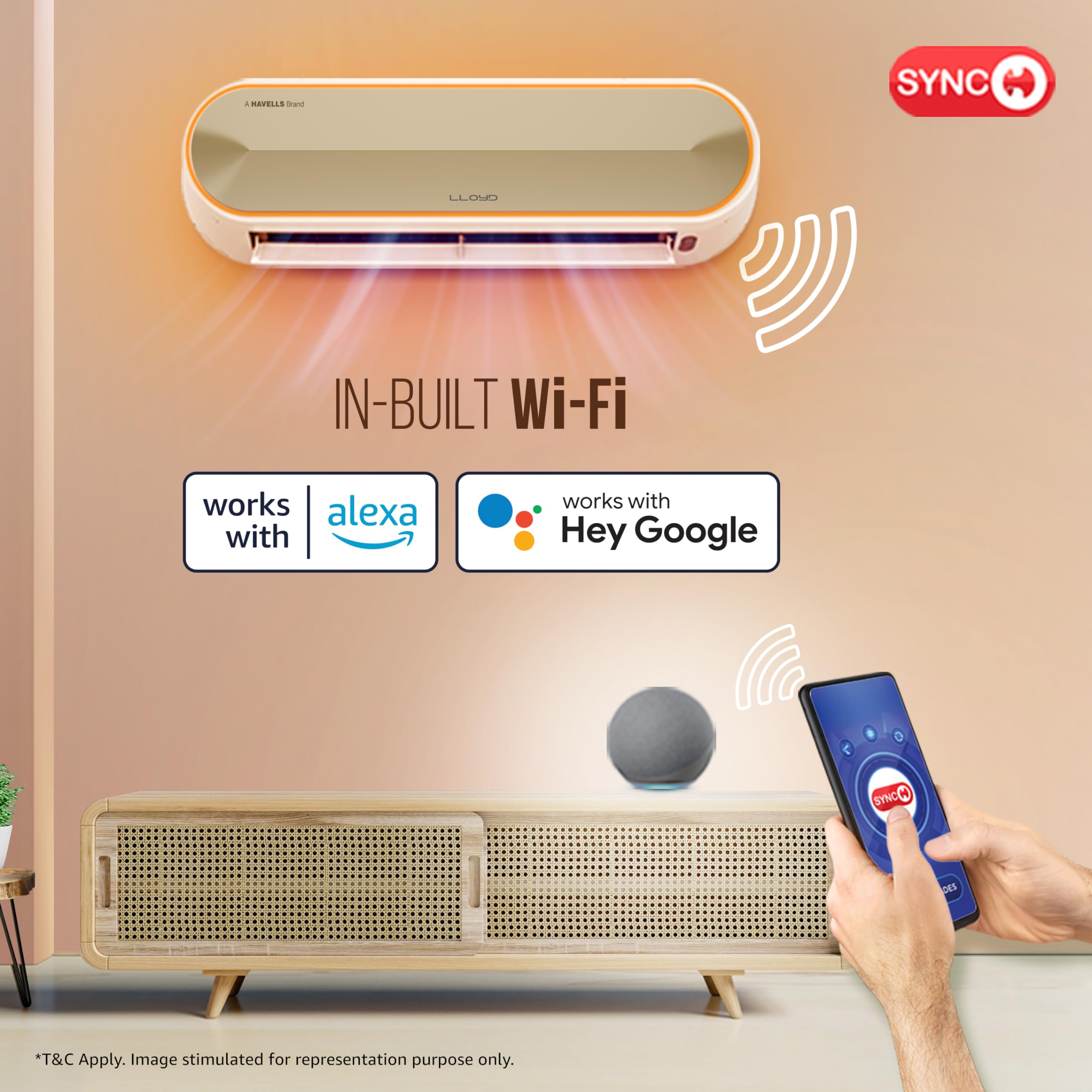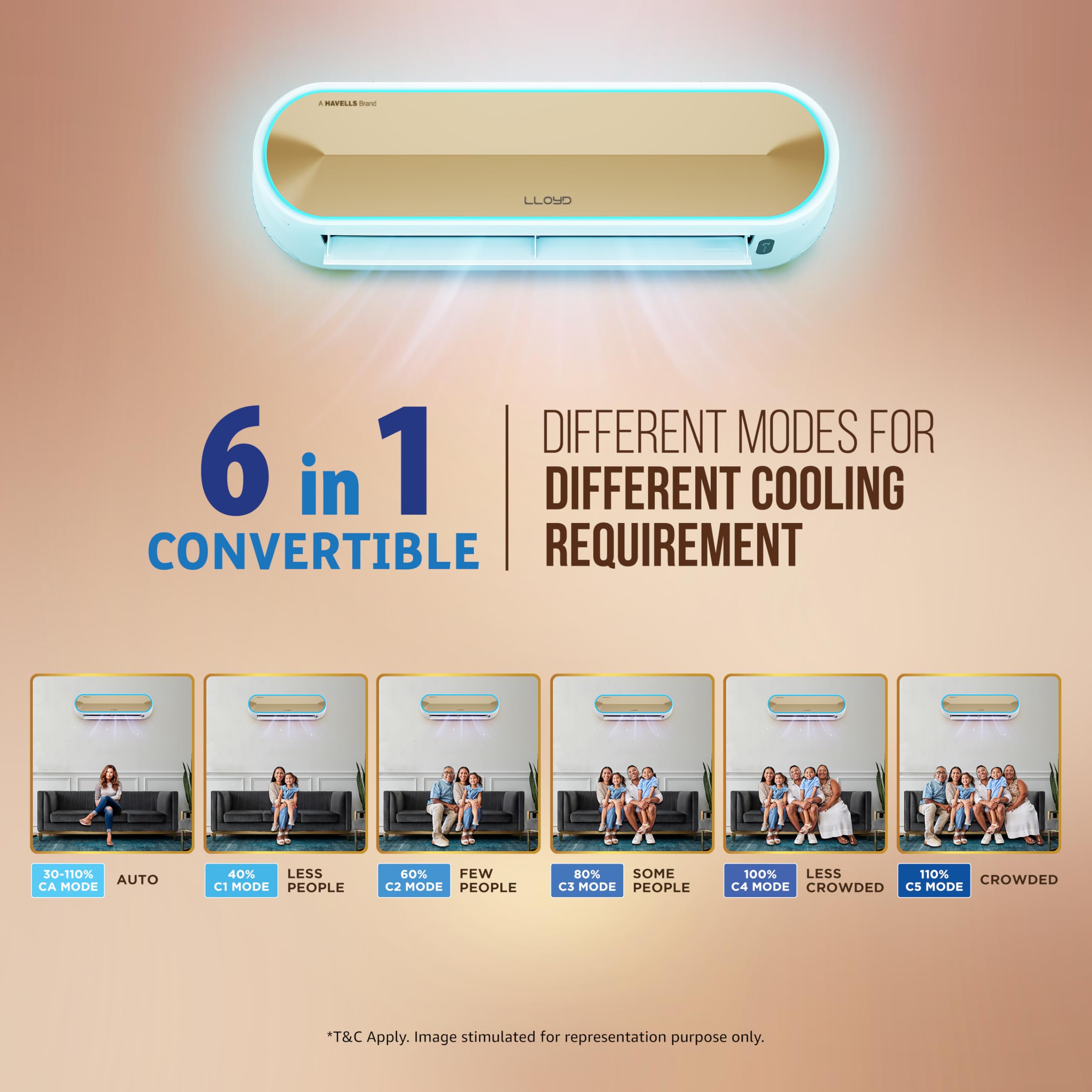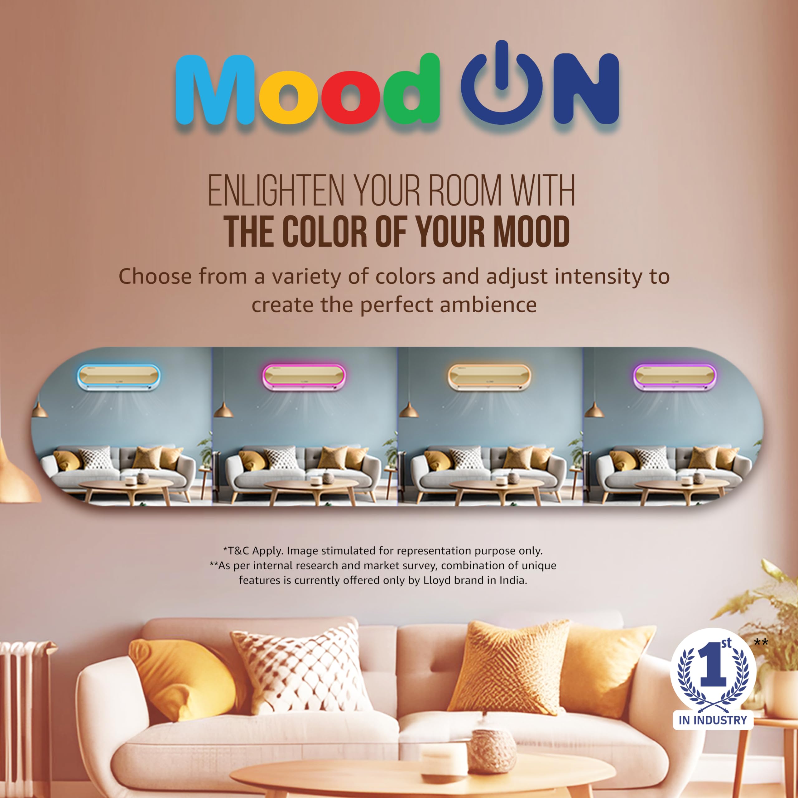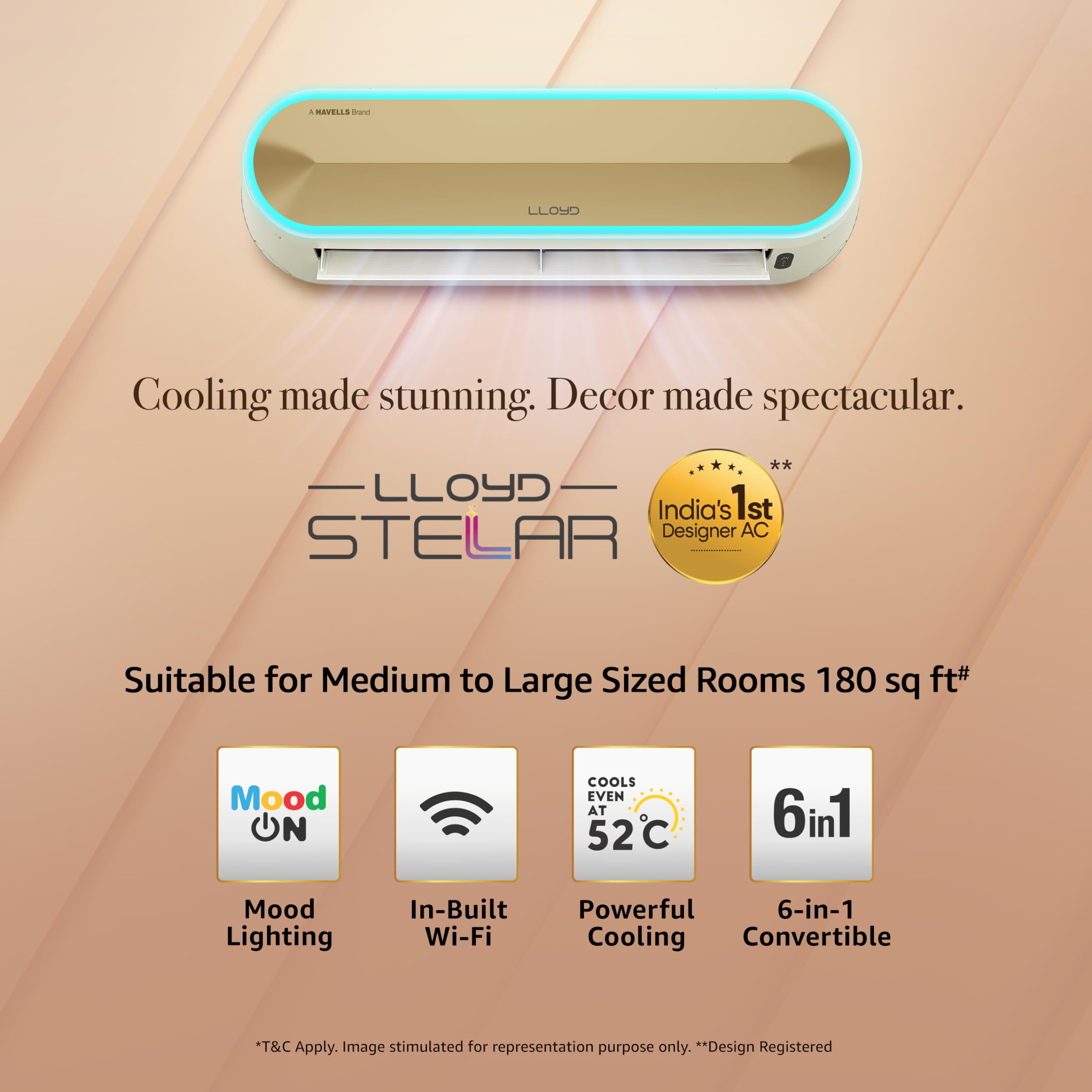 Lloyd Stellar 1.5 Ton 5 Star Wi-Fi Inverter Split AC (6 in 1 Convertible, Mood Lighting, Door Open Alert, Copper, Smart 4-Way Swing, 2024 Model, White/Silver Deco, GLS18V5FWSSL, FREE INSTALLATION*)