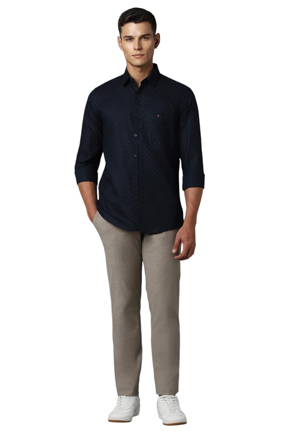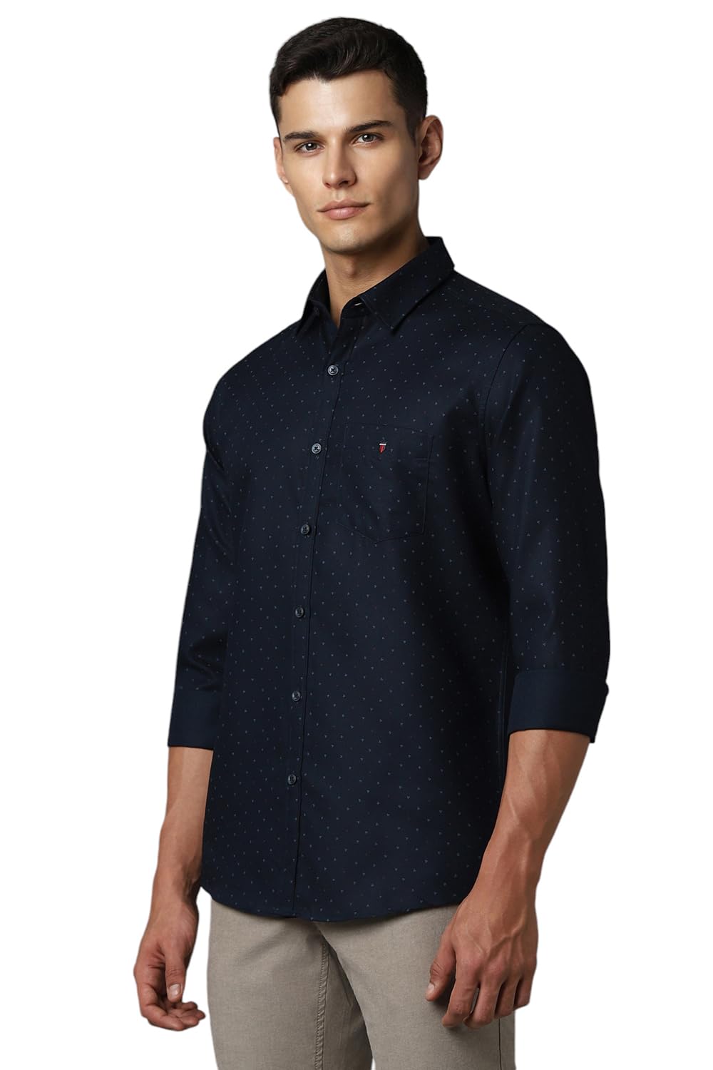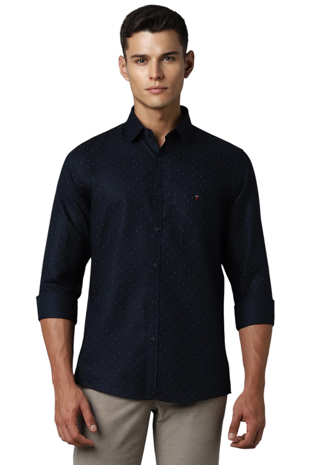 Louis Philippe Men's Letter Print Slim Fit Shirt (LYSFCSLPO11987_Navy
