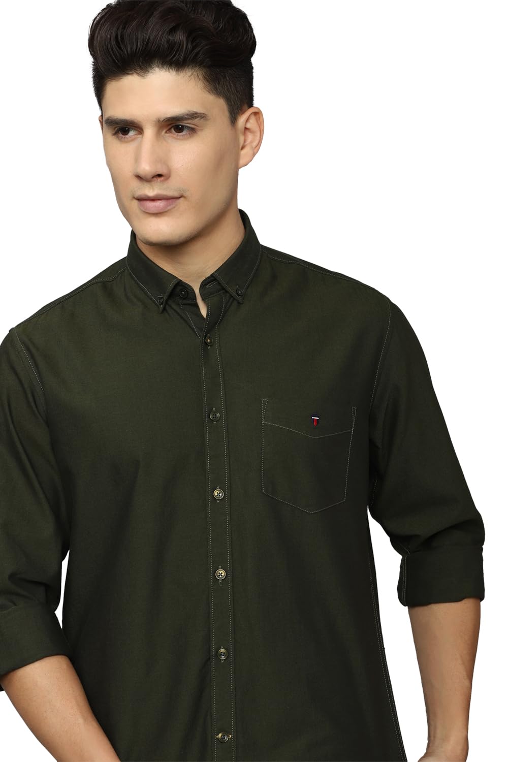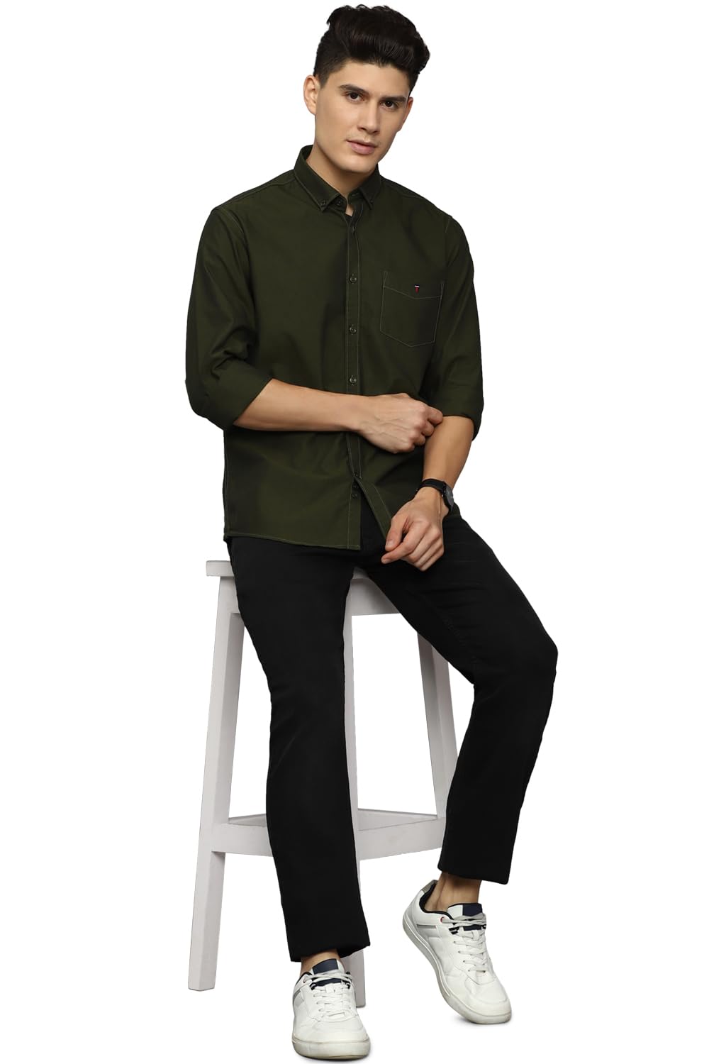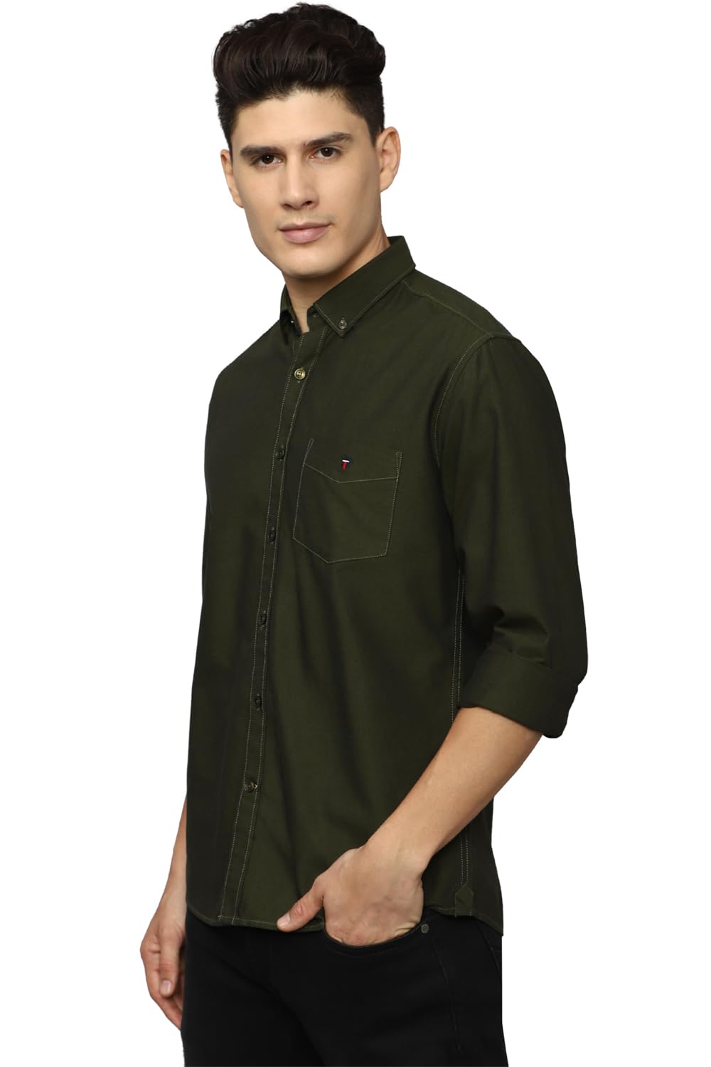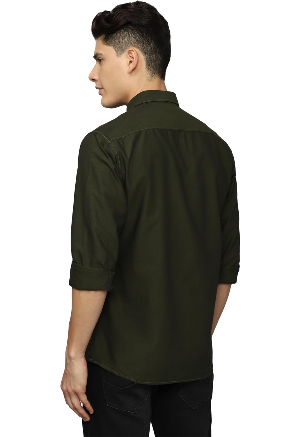 Louis Philippe Men's Solid Slim Fit Shirt (LYSFCSLB081696_Olive