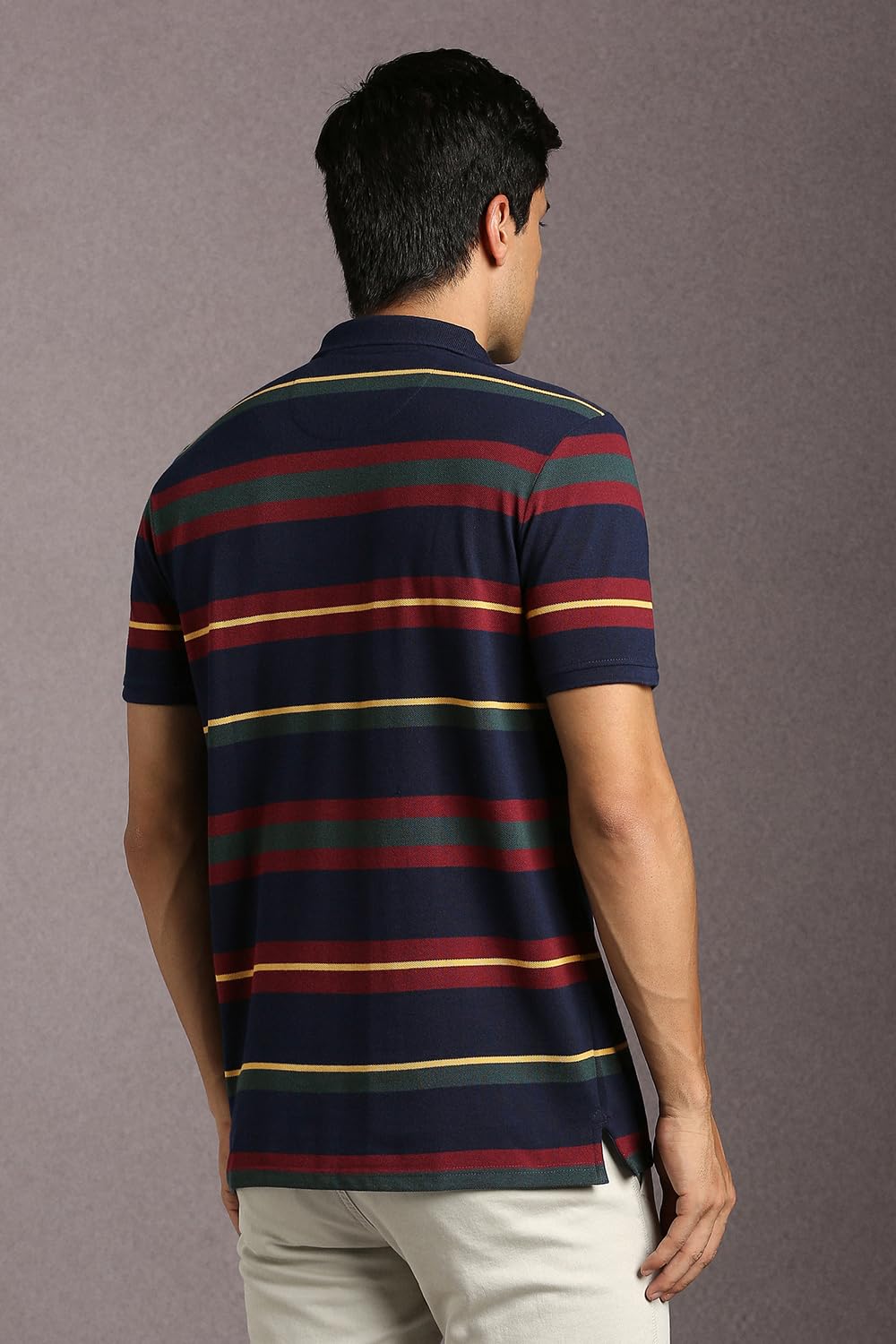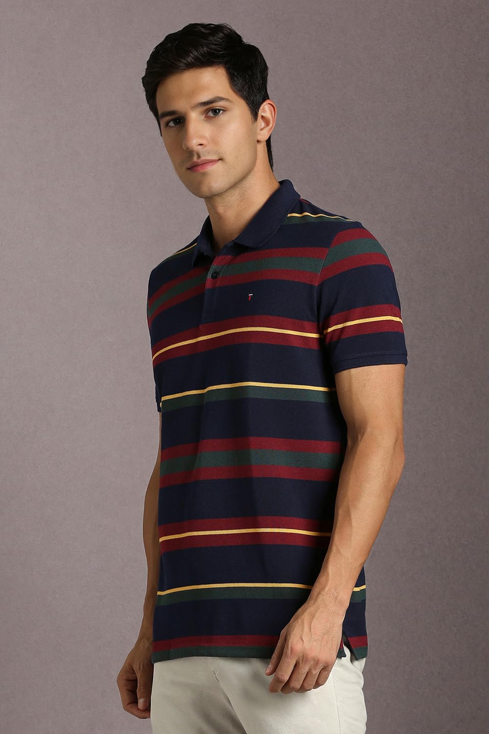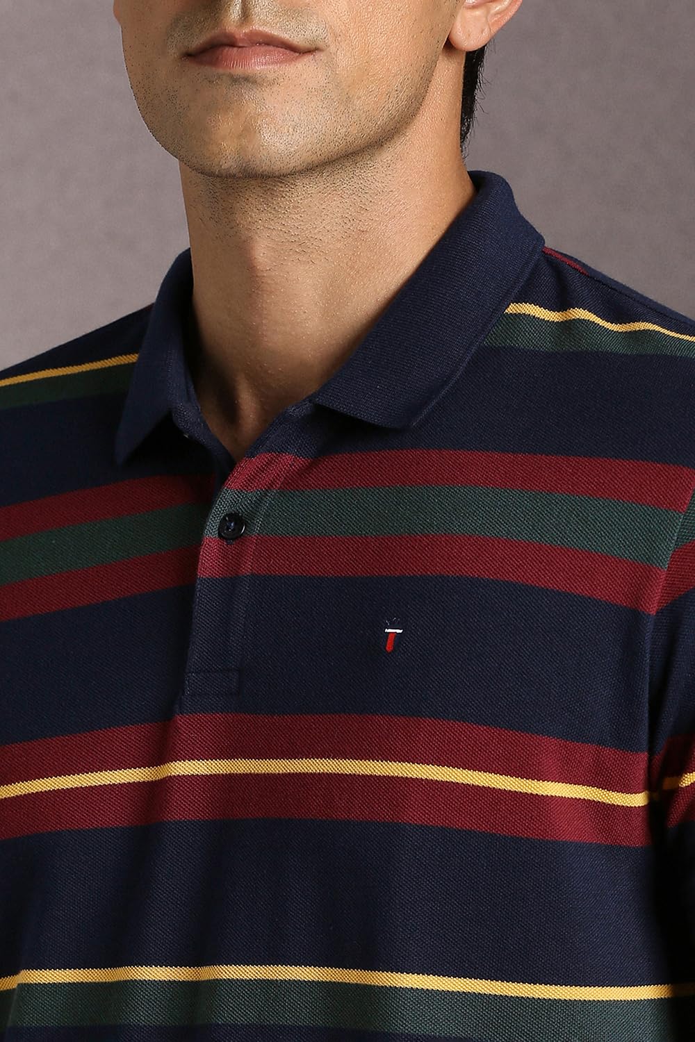 Louis Philippe Men's Striped Slim Fit T-Shirt (LYKPCSLBN12553_Navy