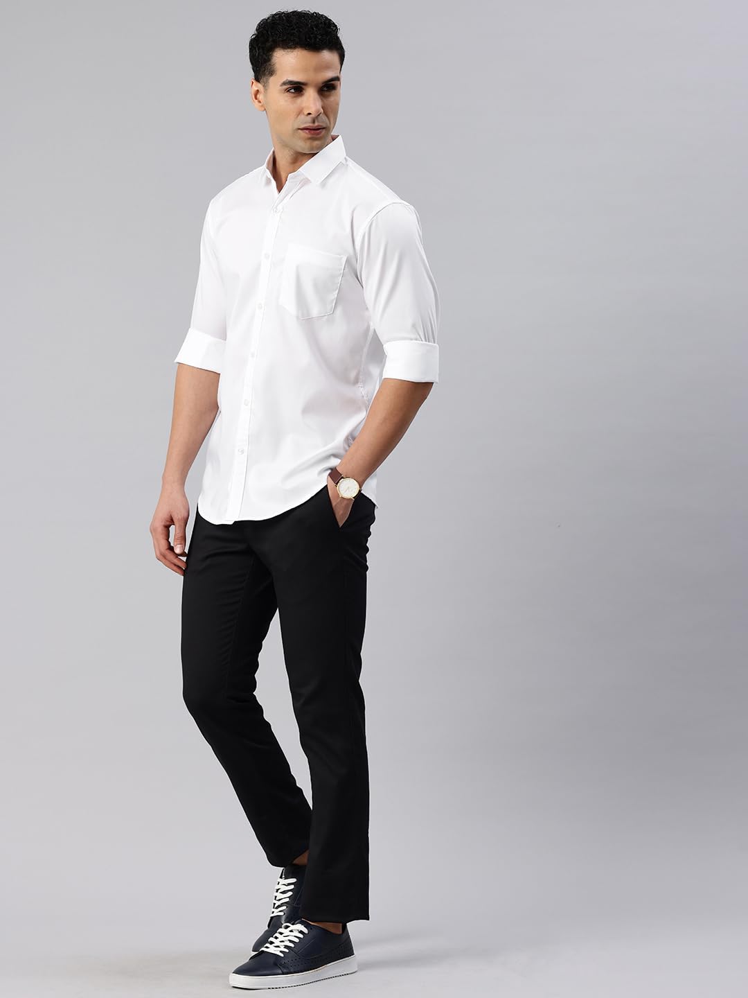 Majestic Man Pure Cotton Solid Slim Fit Casual Shirt for Men (Milky White, Medium)