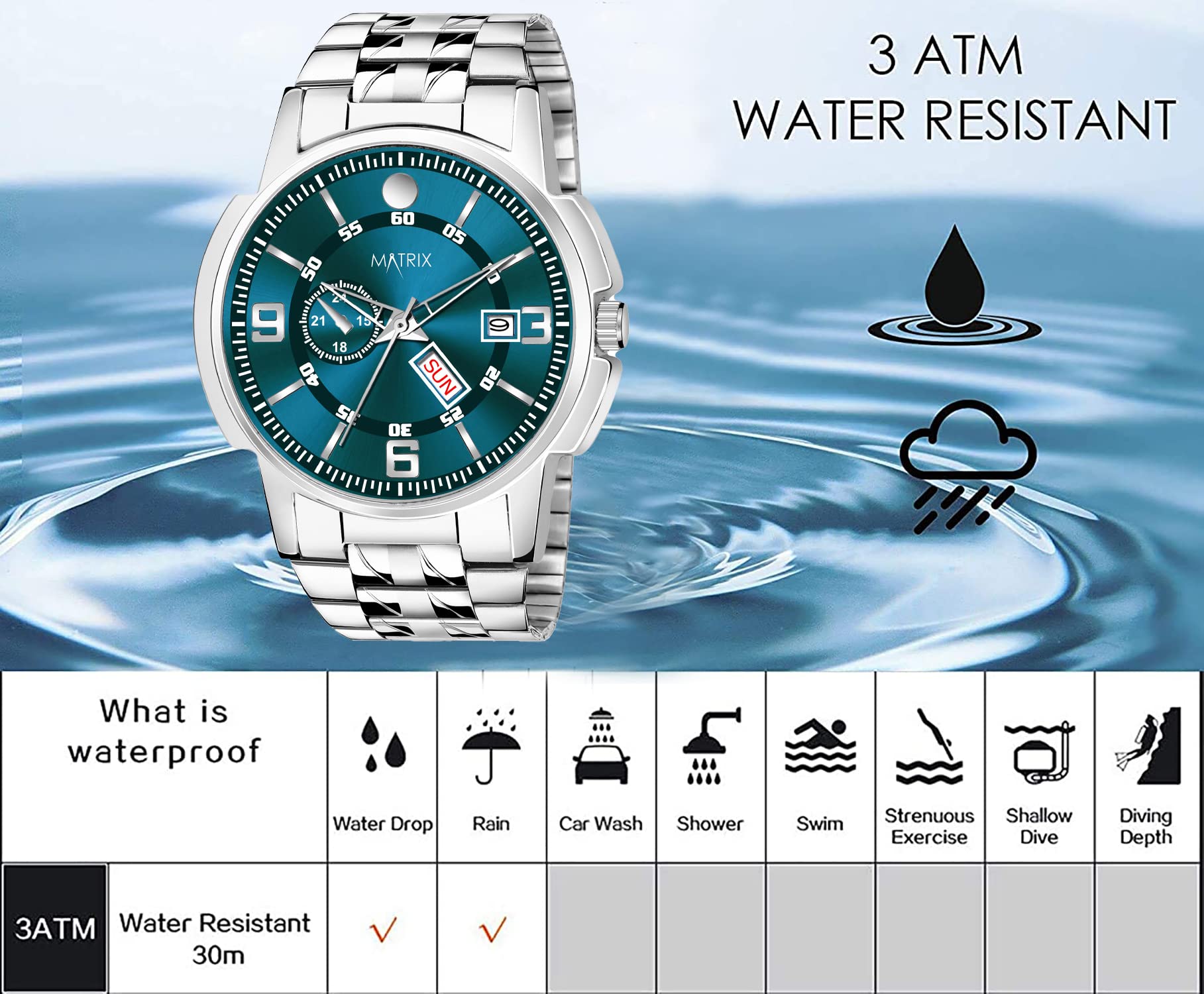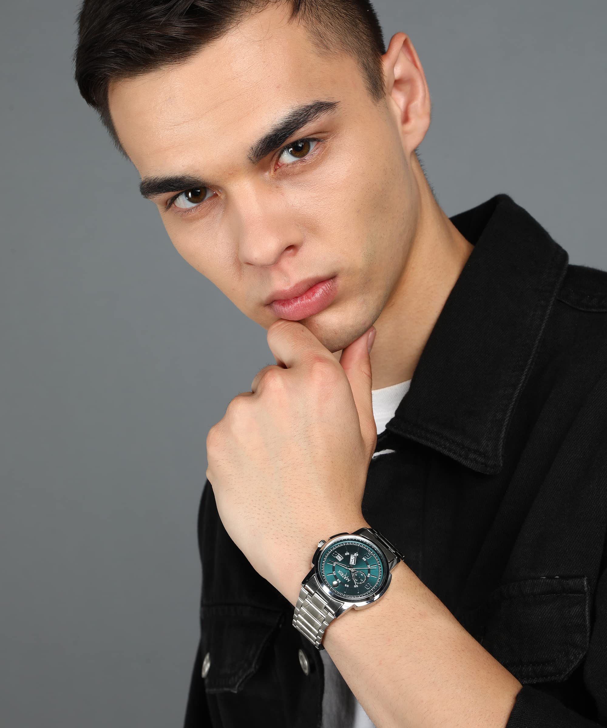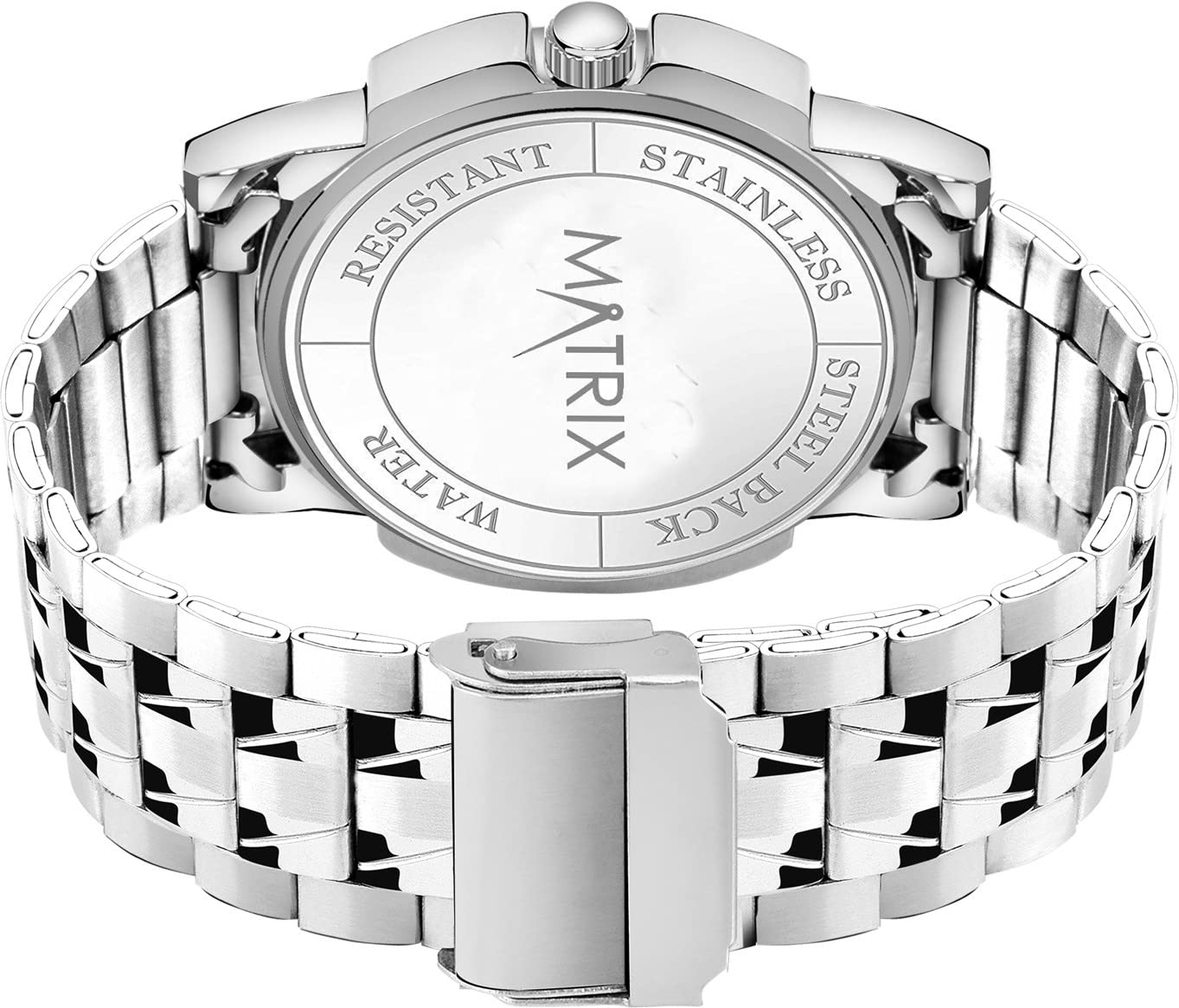 Matrix Black, Blue, White Dial, Day & Date Functioning, Stainless Steel Strap Analog Watch for Men & Women (Green)