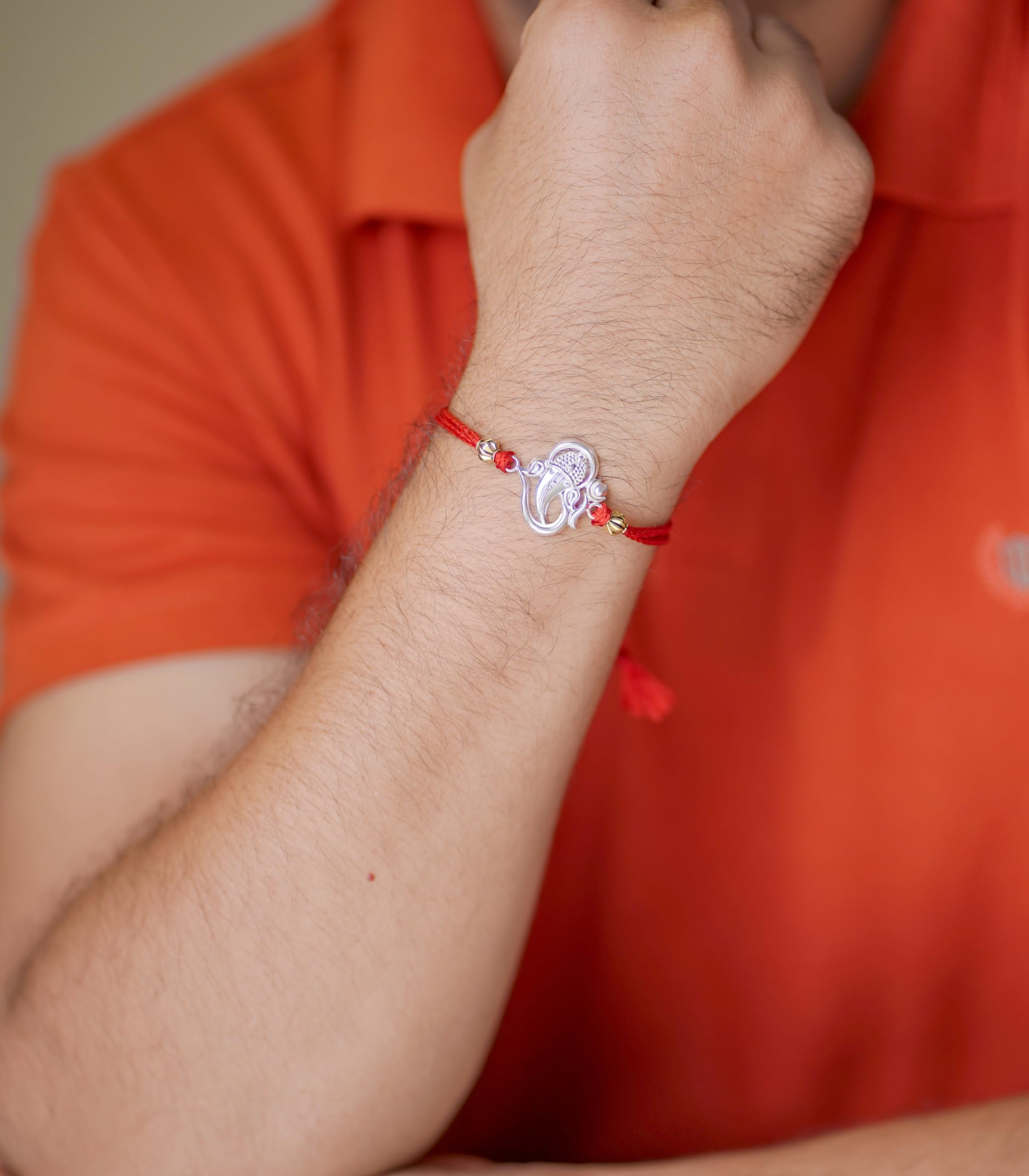 Milan Jewellers 99.5% Fine Silver OM Design rakhi for brother with Kumkum Chawal (Pack of 1)