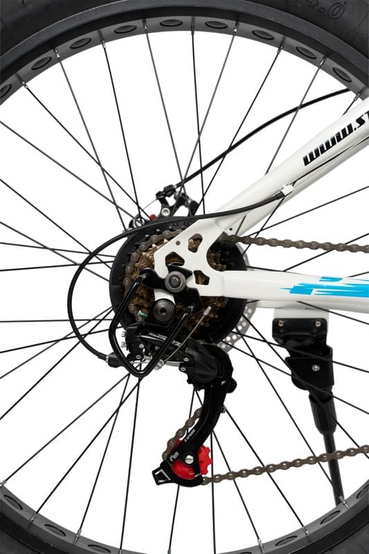 Mioox Fat Tyre Mountain Bike With 21 Speed Gears,26 * 4T Inch Wheels,Disk Brakes Cycle For Adults/Unisex (With Original Shimano Gears), Front, 18 Inches, White
