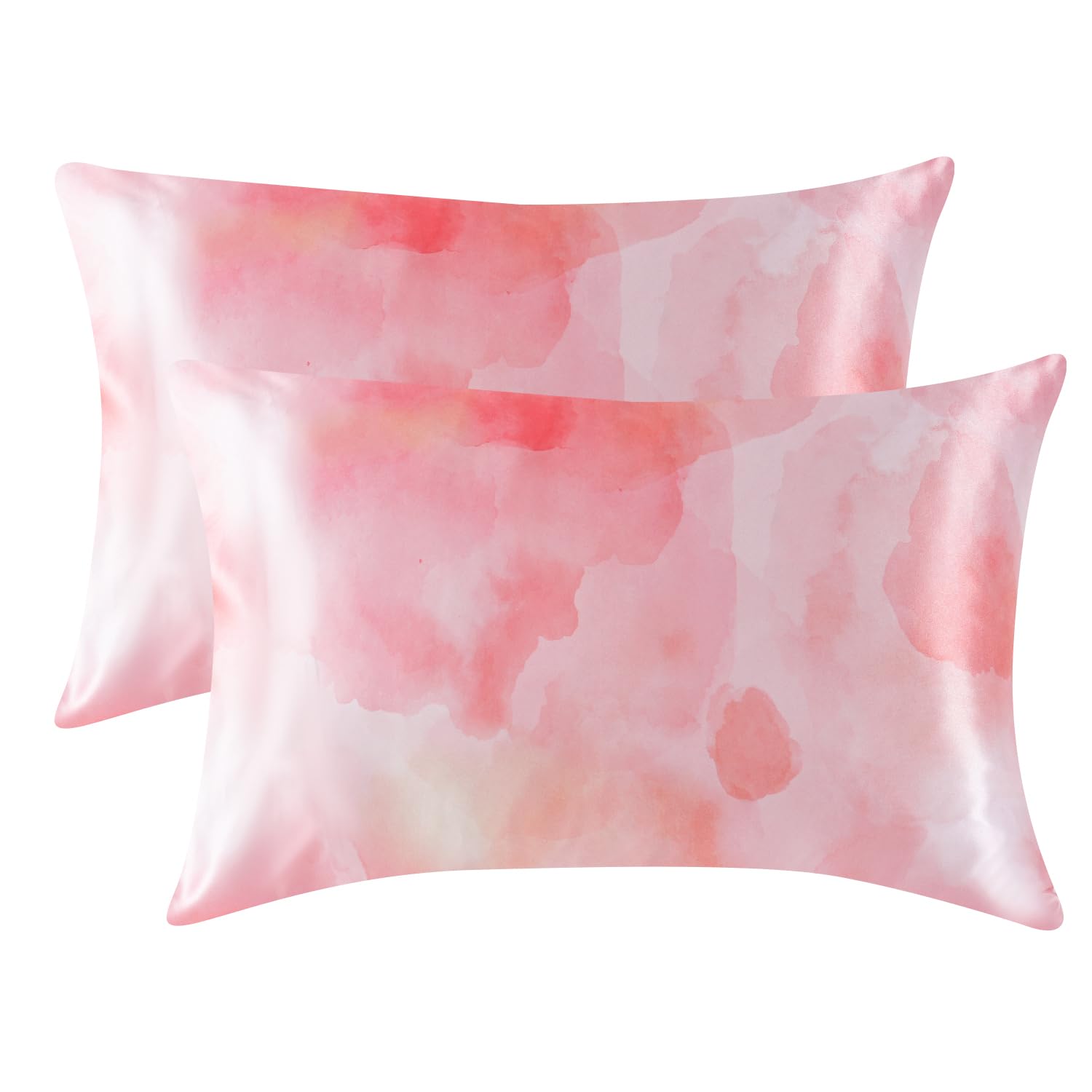 MR&HM Satin Pillowcase for Hair and Skin, Silk Satin Pillowcase 2 Pack, King Size Pillow Cases Set of 2, Silky Pillow Cover with Envelope Closure (20x40, Dream Pink)