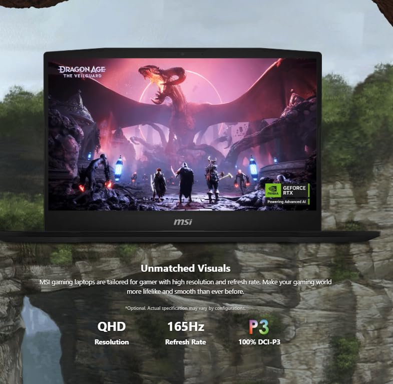 The 40 cm QHD (2560x1440) display is built for speed and visual clarity. With a 165 Hz refresh rate and IPS-Level technology, you’ll experience crisp, tear-free gameplay and accurate color reproduction thanks to 100% DCI-P3 coverage. Whether you’re chasing headshots in fast-paced shooters or enjoying cinematic storytelling, the Katana 15 keeps visuals sharp and motion smooth.